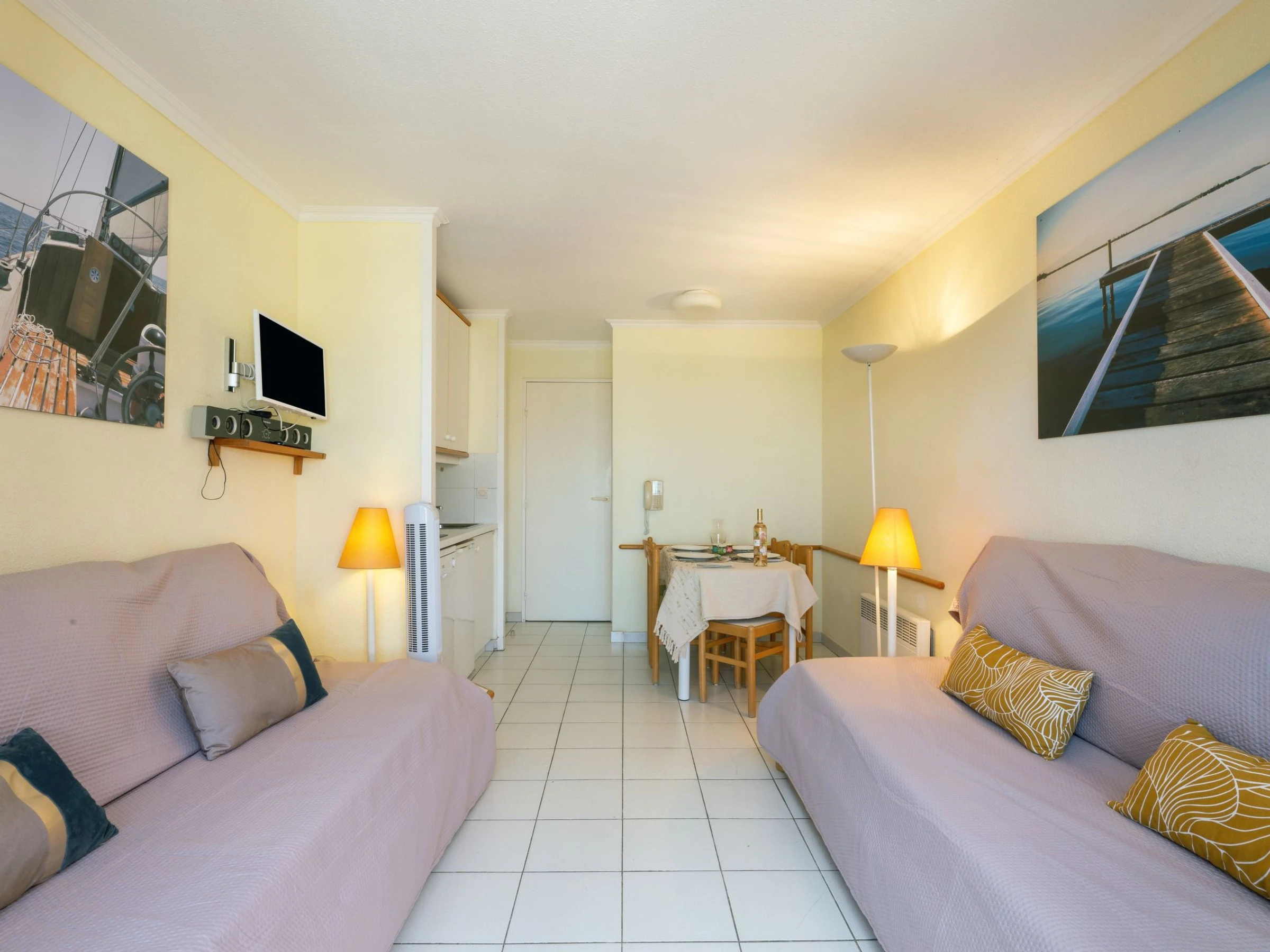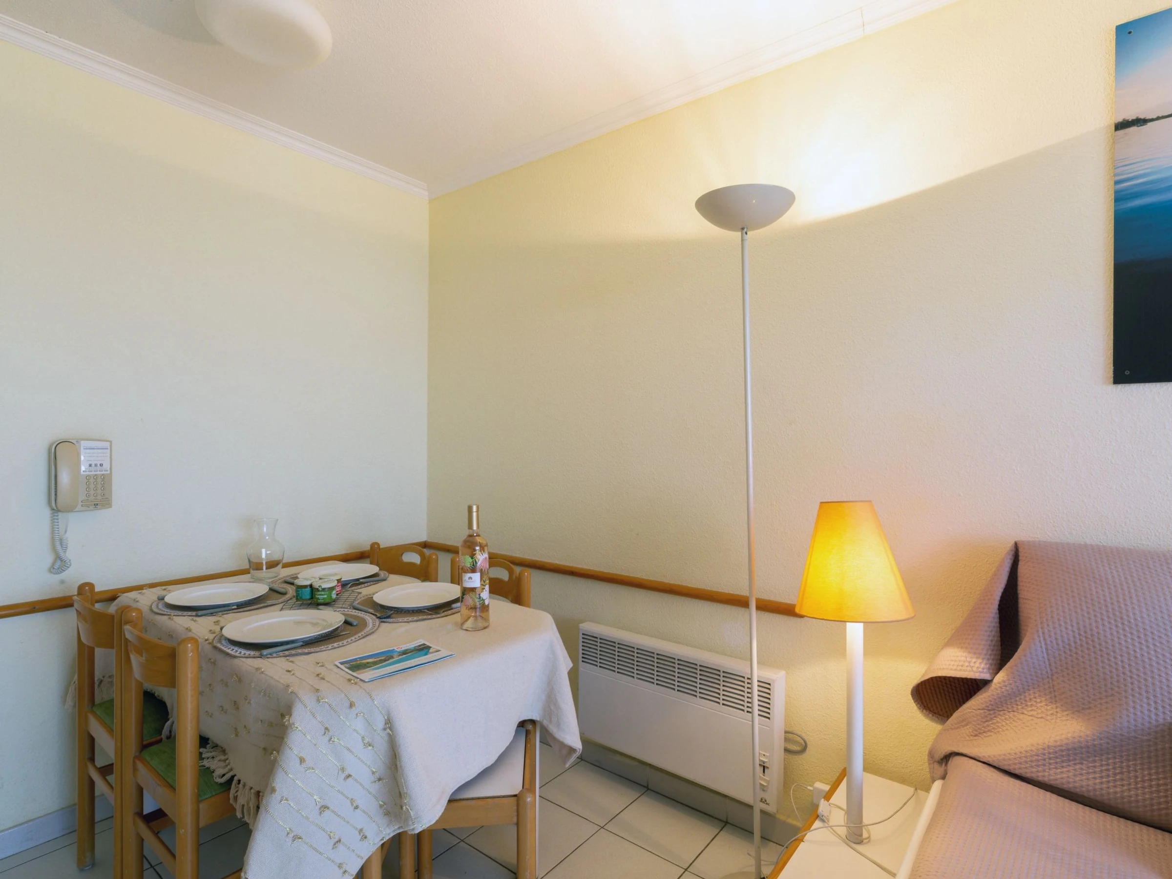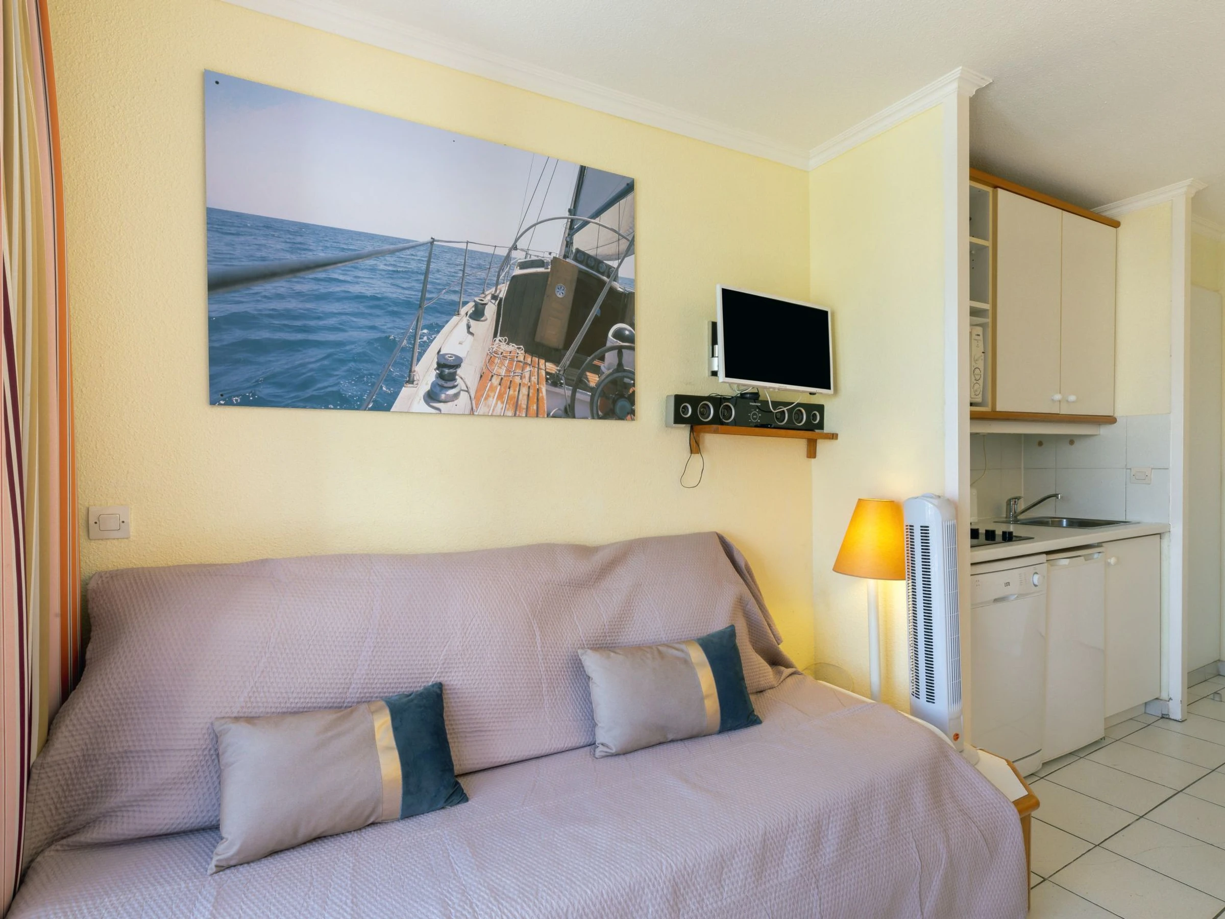 "L'Esquinade (J5 407)", apt 2 pièces 28 m2 au 4ème étage. Séjour/chambre à coucher avec 1 lit gigogne (2 x 80 cm, longueur 190 cm), TV (écran plat). Sortie sur la terrasse. 1 chambre avec 1 grand-lit (140 cm, longueur 190 cm). Coin cuisine (4 plaques de cuisson, lave-vaisselle, grille-pain, bouilloire électrique, micro-ondes, cafetière électrique). Salle de bains, WC séparé. Chauffage électrique. Terrasse 10 m2. Vue sur la mer. A disposition: Internet (Connexion WIFI, en sus). Place de parking No 2165 (couvert). Veuillez noter: logement non-fumeur. Maximum 1 animal/ chien de petite taille autorisé. Détecteur de fumée. Annonce d'un particulier (art 155, IV du CGI).