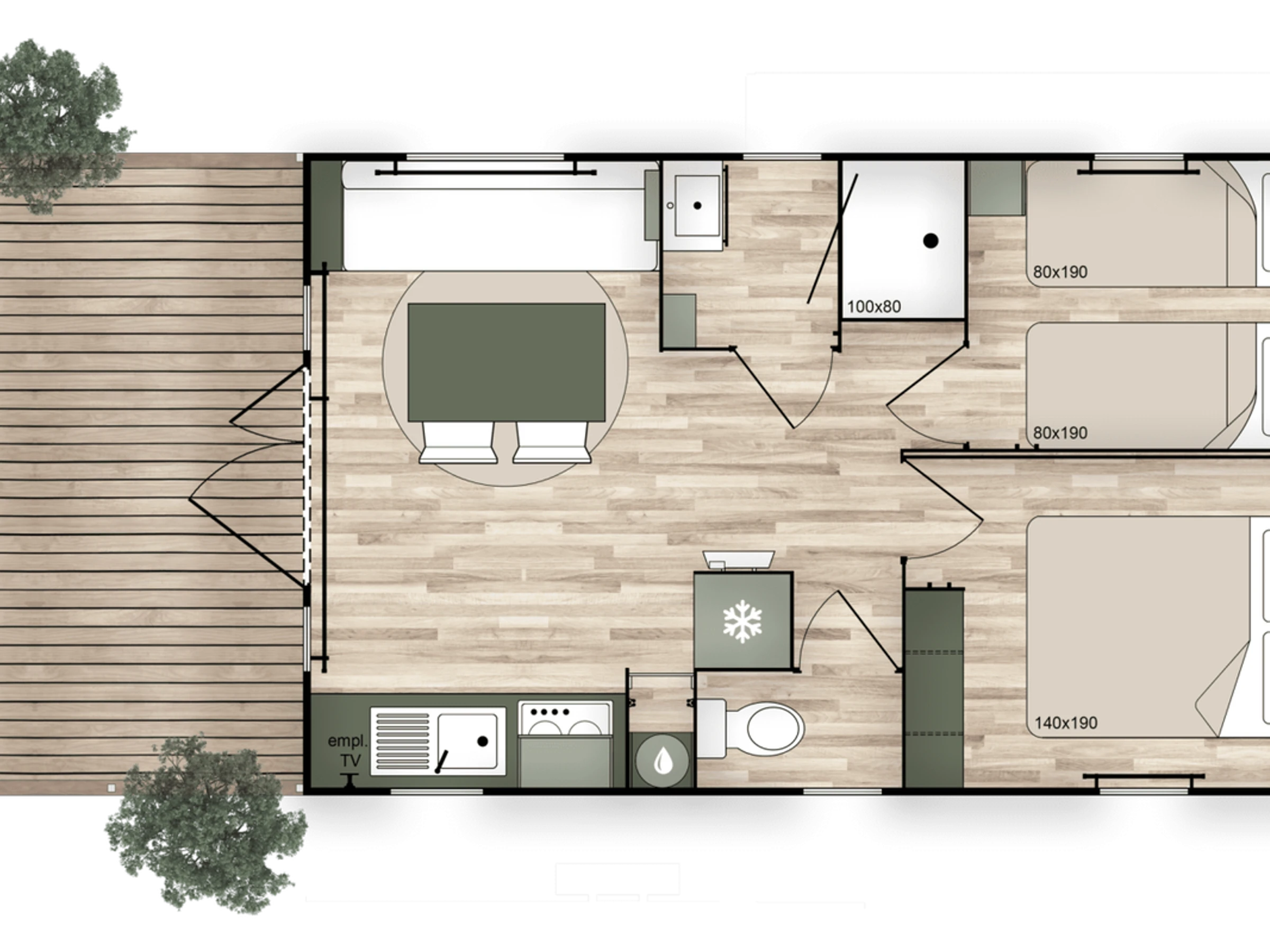 Mobile-home de 27m² pour 4 personnes :