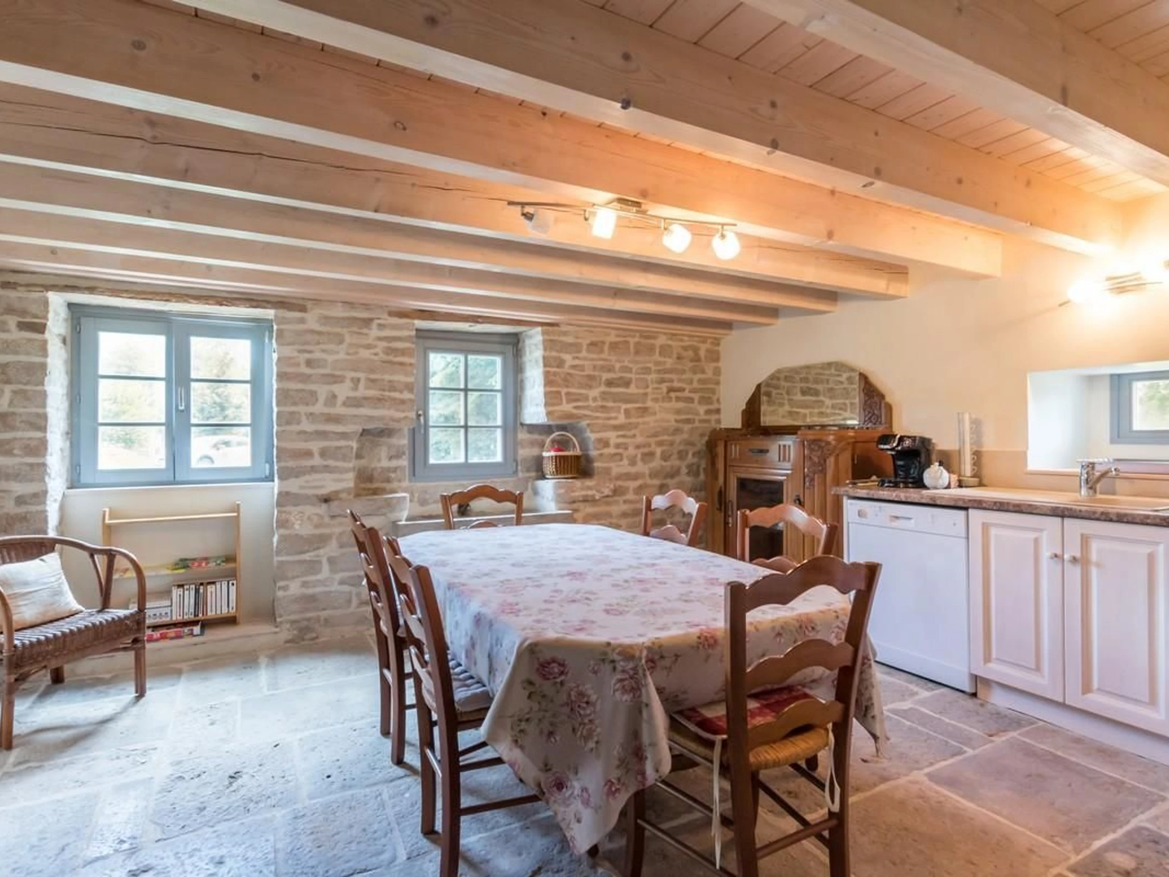 Gîte labellisé "Accueil vélos". Au calme, dans la verdure, à l'entrée du village, ancienne fermette comtoise en pierres. Dans un parc non clos, le charme de la maison de campagne avec une terrasse couverte et un chalet pour vélos, poussette... Entièrement restaurée elle apportera la sérénité par son intérieur chaleureux, coloré et raffiné. Le gîte "la Charmille" est une jolie maison indépendante, sans vis à vis, proposant au rez-de-chaussée : hall d'entrée wc indépendant, cuisine équipée, salon TV écran plat, une chambre 2 personnes (1 lit 140/190) et sa salle d'eau (douche italienne, wc). À l'étage, 1 chambre avec 1 lit 140/190 , 1 chambre 2 lits 1 personne (90/200 jumelés), 1 salle d'eau (douche italienne, wc).