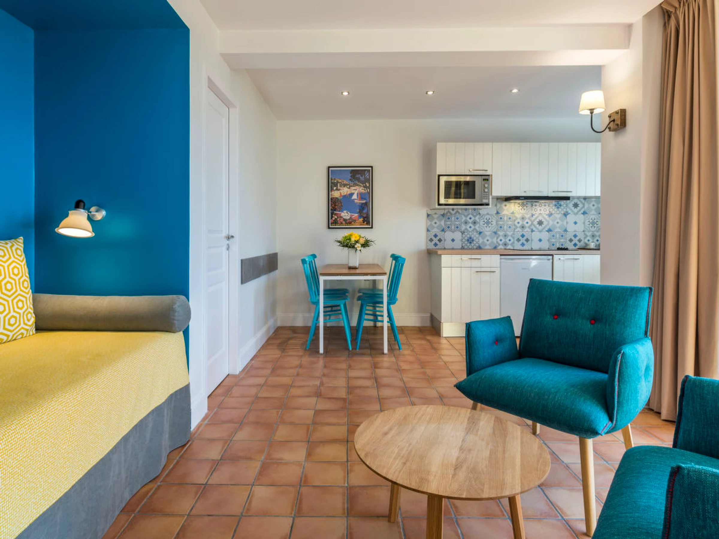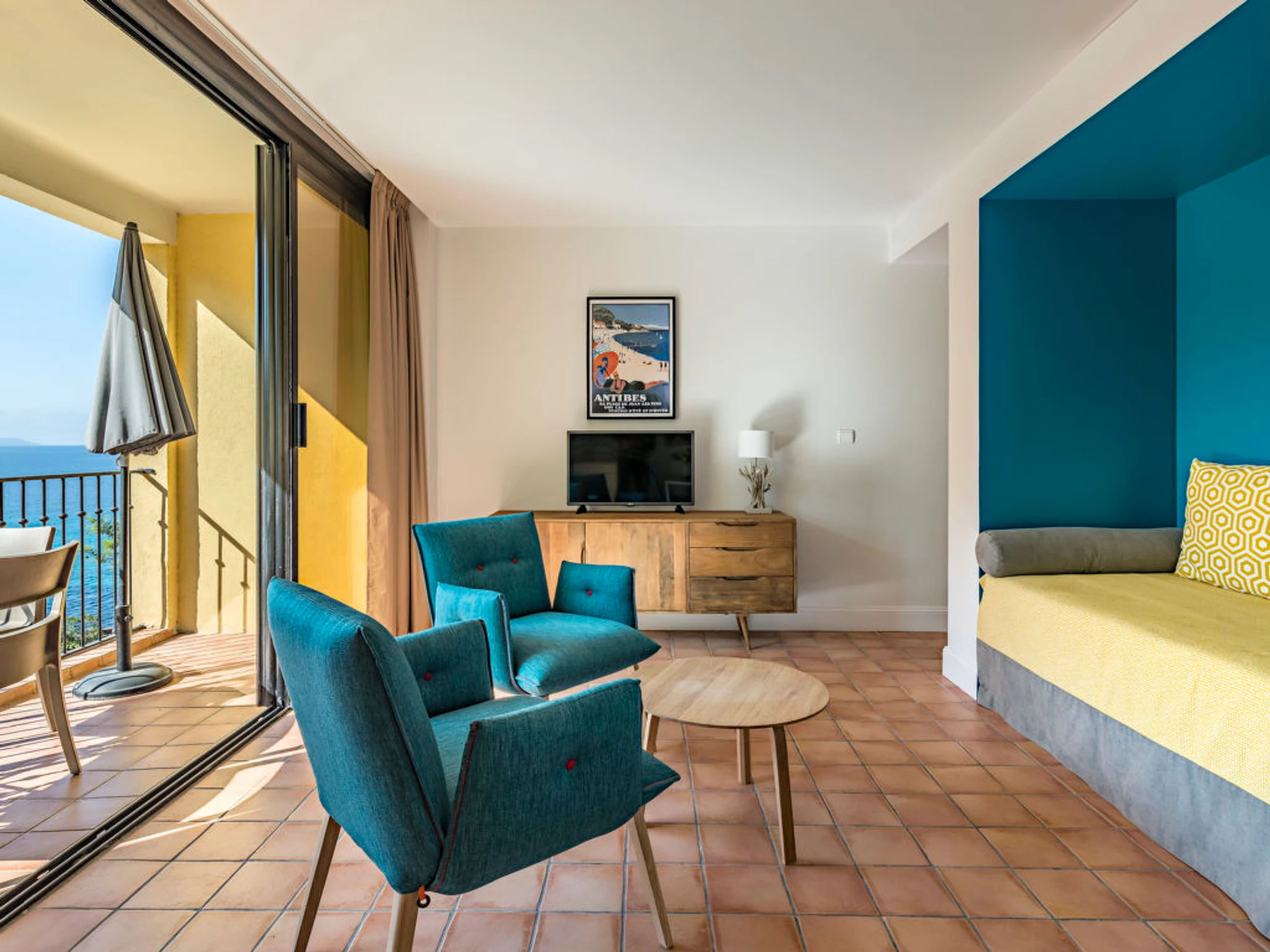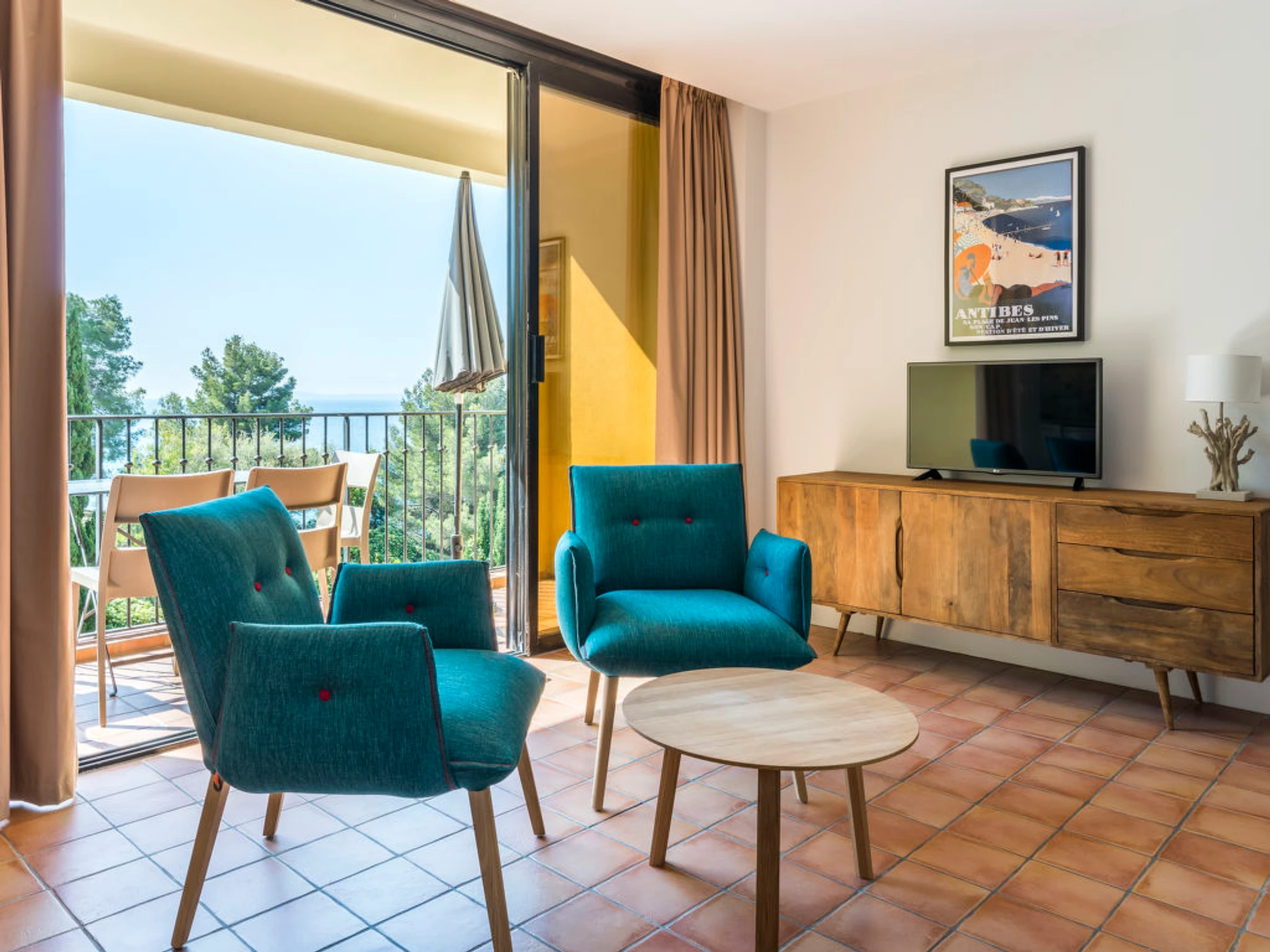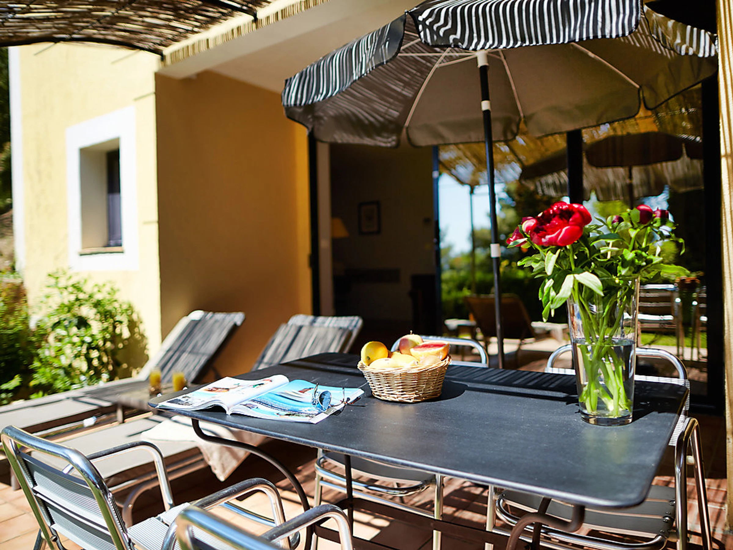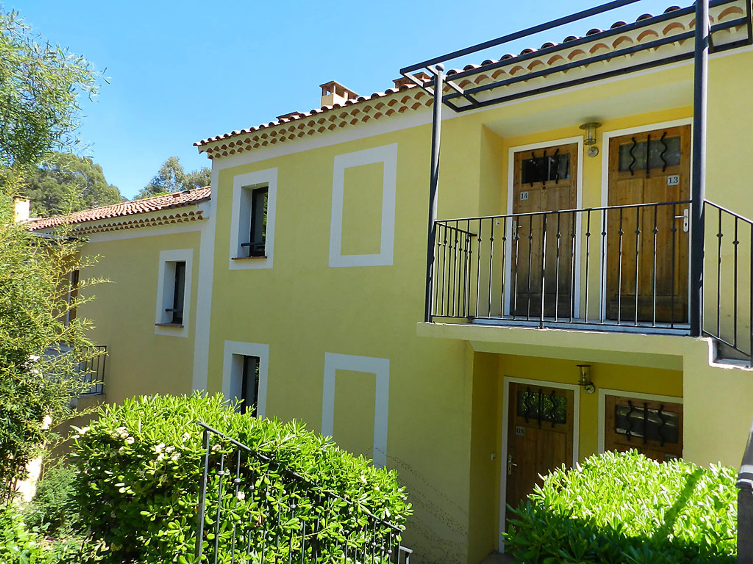 Face à la Mer Méditerranée et aux Iles de Port-Cros et du Levant belle résidence "La Résidence du Bailli", de 2 étages. 19 appartements dans la résidence. En bordure de la localité, situation surélevée dans un quartier résidentiel, à 50 m de la mer, à 50 m de la plage, accès direct à la plage, dans la verdure. En commun: jardin entretenu (clôturé). Infrastructures de la résidence: réception, lave-linge, sèche-linge (en commun, en sus), étendoir à linge. Petit-déjeuner sur demande (en sus). Parking public possible dans la rue. Magasin d'alimentation 300 m, supermarché 12 km, restaurant, plage de sable 50 m. Attractions à proximité: Jardin des Méditerrannées, Cavalaire 9 km, Le Lavandou 10 km, Saint-Tropez 25 km. Veuillez noter: "L´appartement se trouve dans une zone de circulation limitée". La photo ne montre qu’un exemple de location de vacances. D’autres appartements sont également proposés à la location dans cette maison de vacances. Le petit-déjeuner sur demande en sus est servi aux Terrasses du Bailli. En saison (de avril à octobre) sur réservation en sus accès aux restaurants, bars et Spa du Bailli de Suffren.