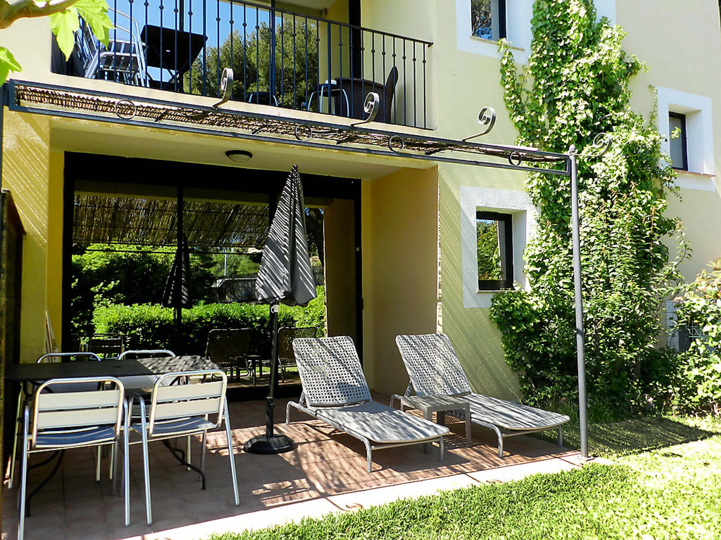 Apt 2 pièces 40 m2. Aménagement agréable et plaisant: séjour avec 1 lit gigogne (2 pers. 2 x 80 cm, longueur 190 cm), TV (écran plat). 1 chambre avec 1 grand-lit (160 cm, longueur 200 cm). Cuisine ouverte (4 plaques de cuisson, lave-vaisselle, cafetière électrique, combiné micro-ondes) avec table pour les repas. Bains ou douche/WC. Chauffage électrique, air-conditionné. Balcon ou terrasse. Meubles de terrasse. Vue sur le jardin. A disposition: Internet (Connexion WIFI, gratuit). Veuillez noter: logement pour non fumeurs. Maximum 1 animal/ chien autorisé. Inclus: Linge (1er jeu de draps et serviettes), Nettoyage final, Internet sans fil (WIFI) Disponible sur le site avec supplément: Animal 46.0EUR par semaine Services supplémentaires obligatoires sur le site: Taxe de séjour 0.84EUR par personne et par jour
