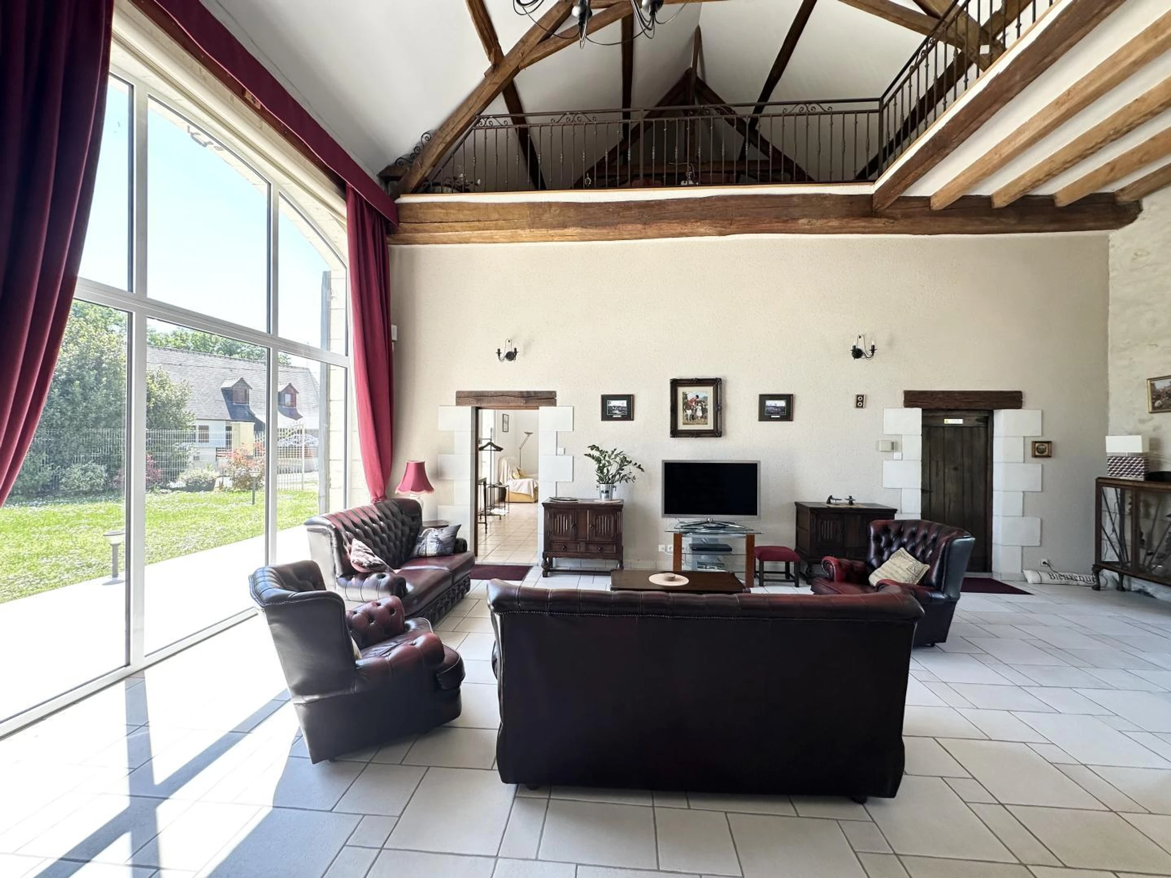 Gîte tout inclus (sauf taxe de séjour). [hidden] : séjour salon (TV, lecteur bluray), cuisine équipée (plaque 2 feux gaz + 2 feux inductions), 1 ch (1 lit 160x200, rafraichisseur d'air), salle d'eau et wc séparé, buanderie (lave-linge, sèche-linge). Étage (les 3 chambres et le couloir sont climatisés) : Mezzanine (salle home-cinéma/salle de jeux, lecteur bluray), 1 ch (2 lits 90 jumelables en lit 180), 1 ch (3 lits 90x200 dont 2 jumelables), 1 ch (1 lit 160x200), salle d'eau et wc séparé. Lit parapluie. Connexion WIFI. Chauffage inclus aux tarifs. Jardin 3000 m clos privatif. Véritable terrain de boules avec éclairage pour les parties nocturnes. Jeux d'extérieurs et d'intérieur (baby-foot, fléchettes...). Spa (ouvert toute l'année), piscine privative non chauffée. Portail automatique. Jardin clos. Hébergement non-fumeur. L'espace mezzanine ne constitue pas une espace de couchage. OUVERTURE PISCINE : 15/05 AU 30/09. Vous allez être conquis par cette incroyable bâtisse qui offre tout à la fois superbes volumes, équipements nombreux, jeux de plein-air, magnifique home-cinéma, spa et piscine pour les journées chaudes et ensoleillées. Quelle que soit la saison, vous profiterez pleinement de votre séjour dans le Val de Loire qui vous laissera de fabuleux souvenirs. Lesley et François ont le souci du détail et ont voulu que vous vous sentiez ici comme chez vous. L'accueil qu'ils vous réservent est à la hauteur de la qualité du lieu. Ils seront heureux de vous conseiller les meilleurs coins de la région. Votre gîte est indépendant au cœur d'un petit hameau à 3 km du centre du village et proche de Ste-Maure-de-Touraine, célèbre pour son fromage. Les accès autoroutiers sont à env. 15 mn ce qui facilitera vos visites vers les plus beaux châteaux de la Loire, le Zoo de Beauval, le Futuroscope. D'Amboise à Chinon en passant par Chenonceau, Loches, Chaumont-sur-Loire, Villandry, vos yeux seront émerveillés.