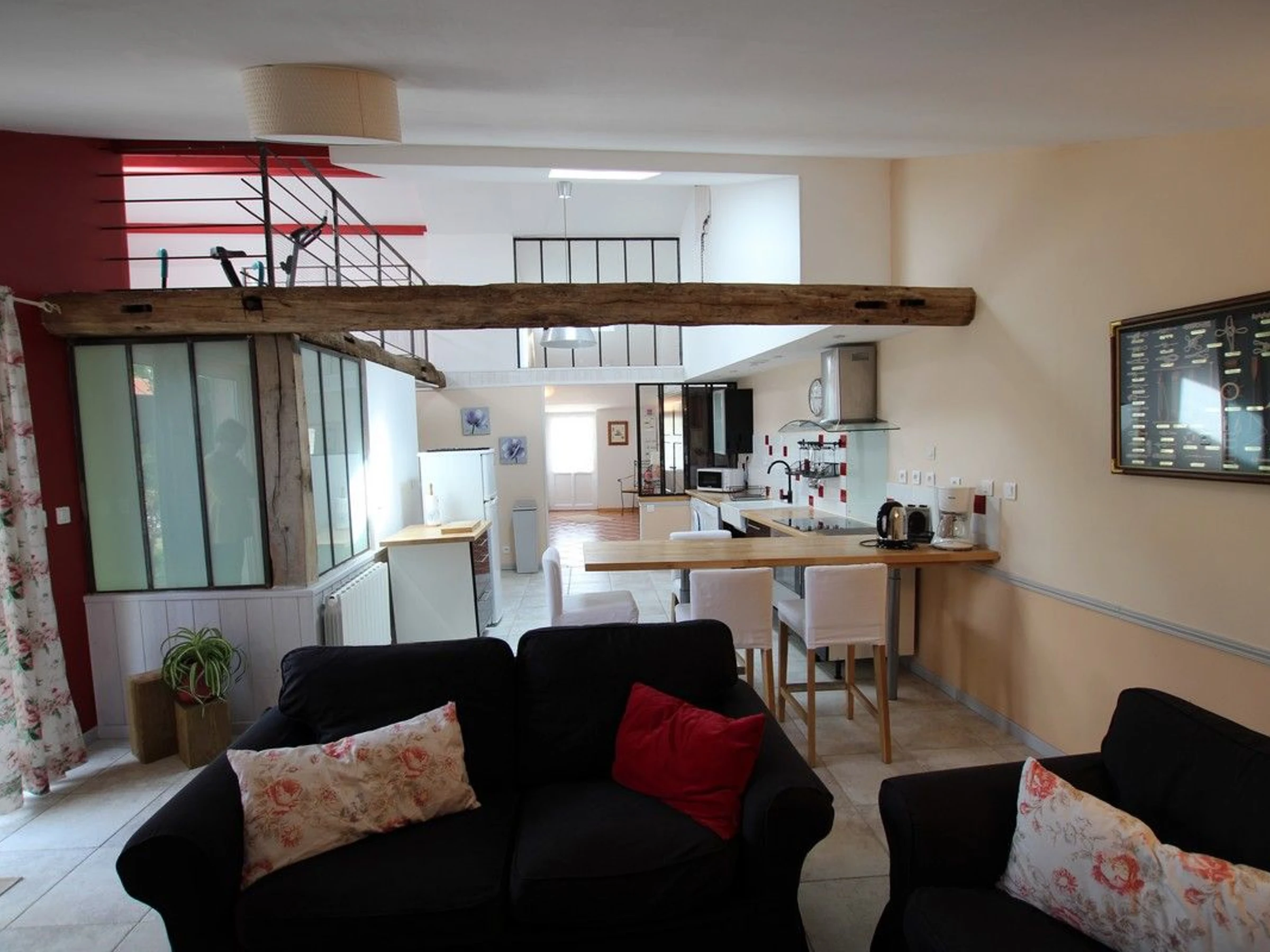 Gîte aménagé en 2012 dans une ancienne grange, mitoyen à un autre gîte, situé dans un hameau à 1 km du bourg de La Chapelle Achard. RDC: séjour/salon/cuisine, salle d'eau et wc accessible personnes handicapées, 2 chambres (1 lit 160)(2 lits 90). Etage : coin-détente sur mezzanine, accès par échelle de meunier. Wifi. Sèche-linge commun dans local extérieur. Terrain aménagé clos de 70 m², terrasse (salon de jardin, transats, brasero). Piscine chauffée (5x10m) du propriétaire à disposition de juin à septembre. Vélos. Parking clos + portique en commun. 2 roulottes + 2 autres gîtes sur place. Options : Ménage de fin de séjour : 60€/séjour ; Location draps 1 pers. : 10€/séjour ; Location draps 2 pers. : 15€/séjour ; Location linge de toilette : 8€/pers/séjour.