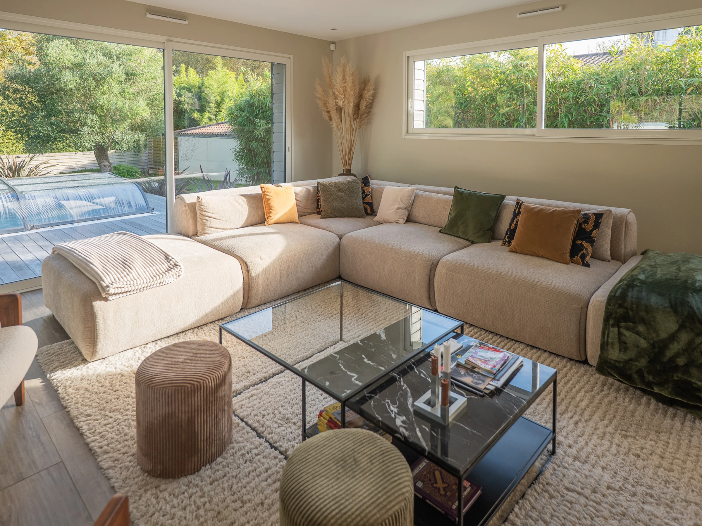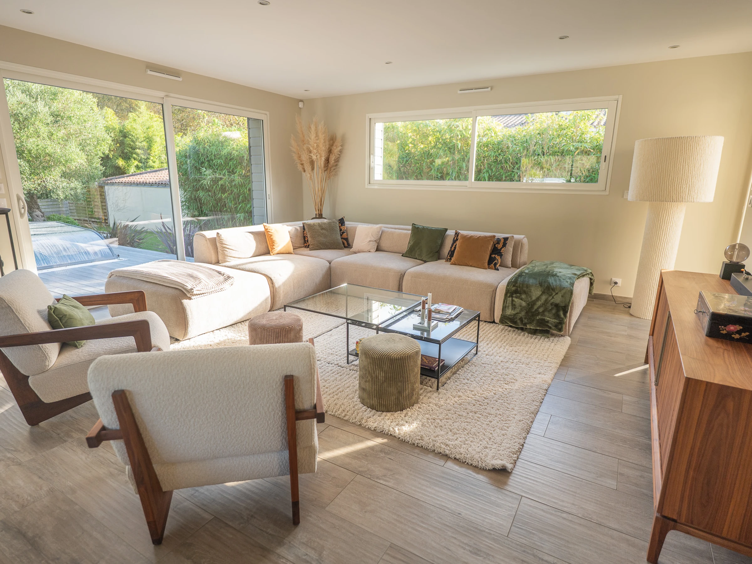 la maison comprend un jardin clos avec parking privatif, robot tondeuse et piscine au sel chauffée du 01 avril au 30 septembre, grande terrasse avec son mobilier , store banne et barbecue .