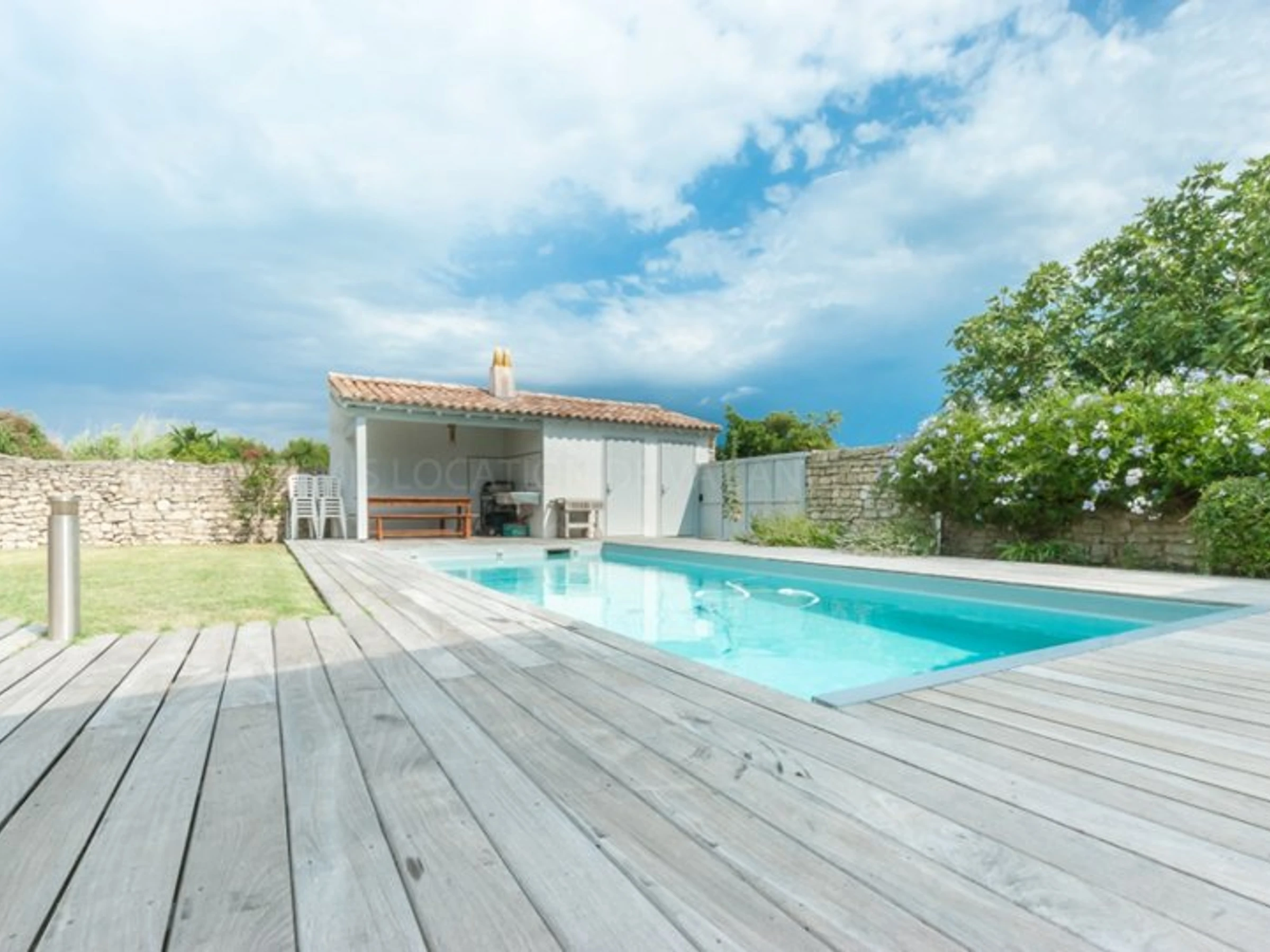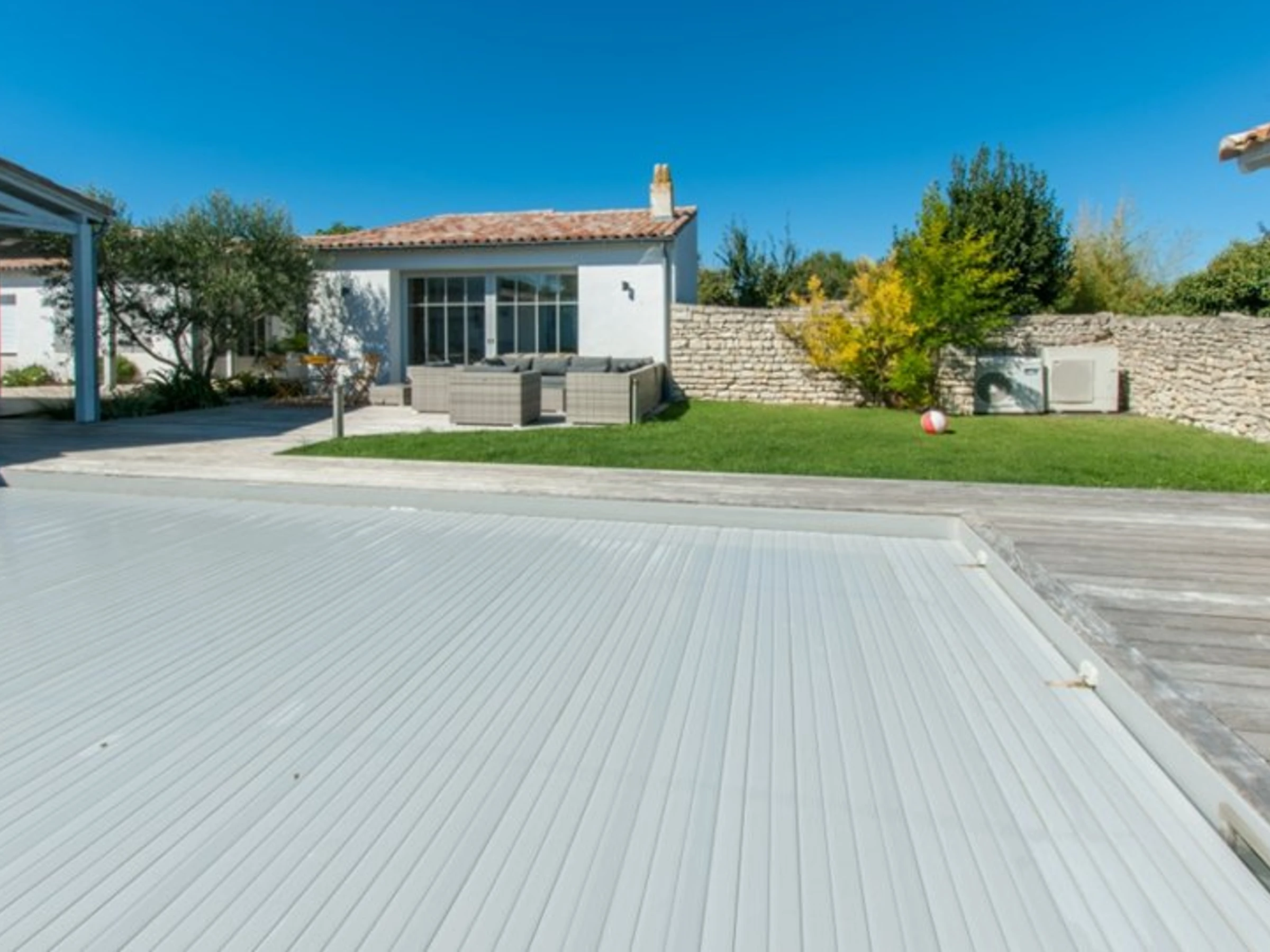 La piscine est sécurisée par un volet roulant électrique.