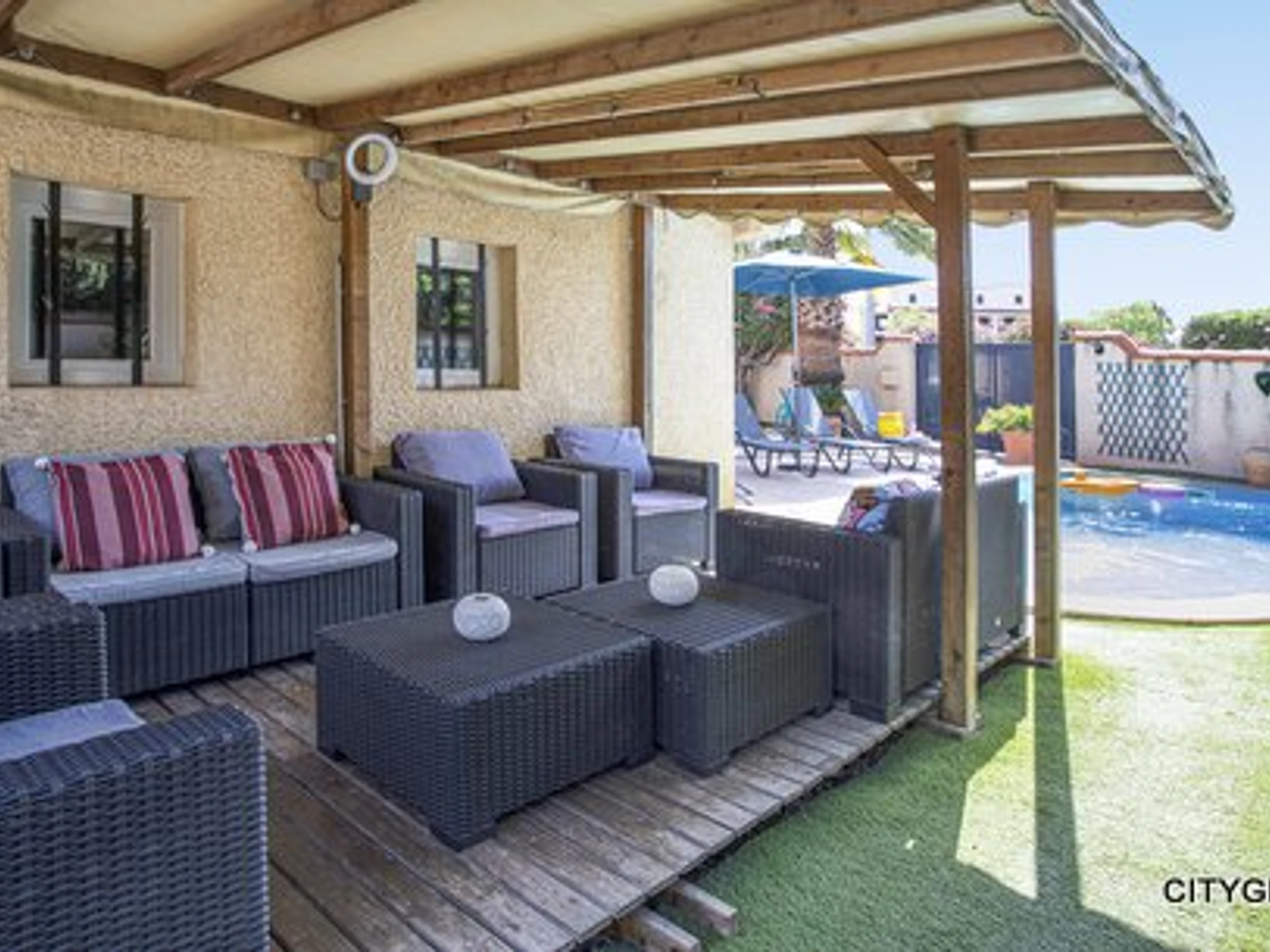 8CERIS10 -Ste Marie La Mer Superbe villa T5 climatisée avec piscine privée, idéale pour 8 personnes, entièrement rénovée et pensée pour votre confort. Wifi inclus.