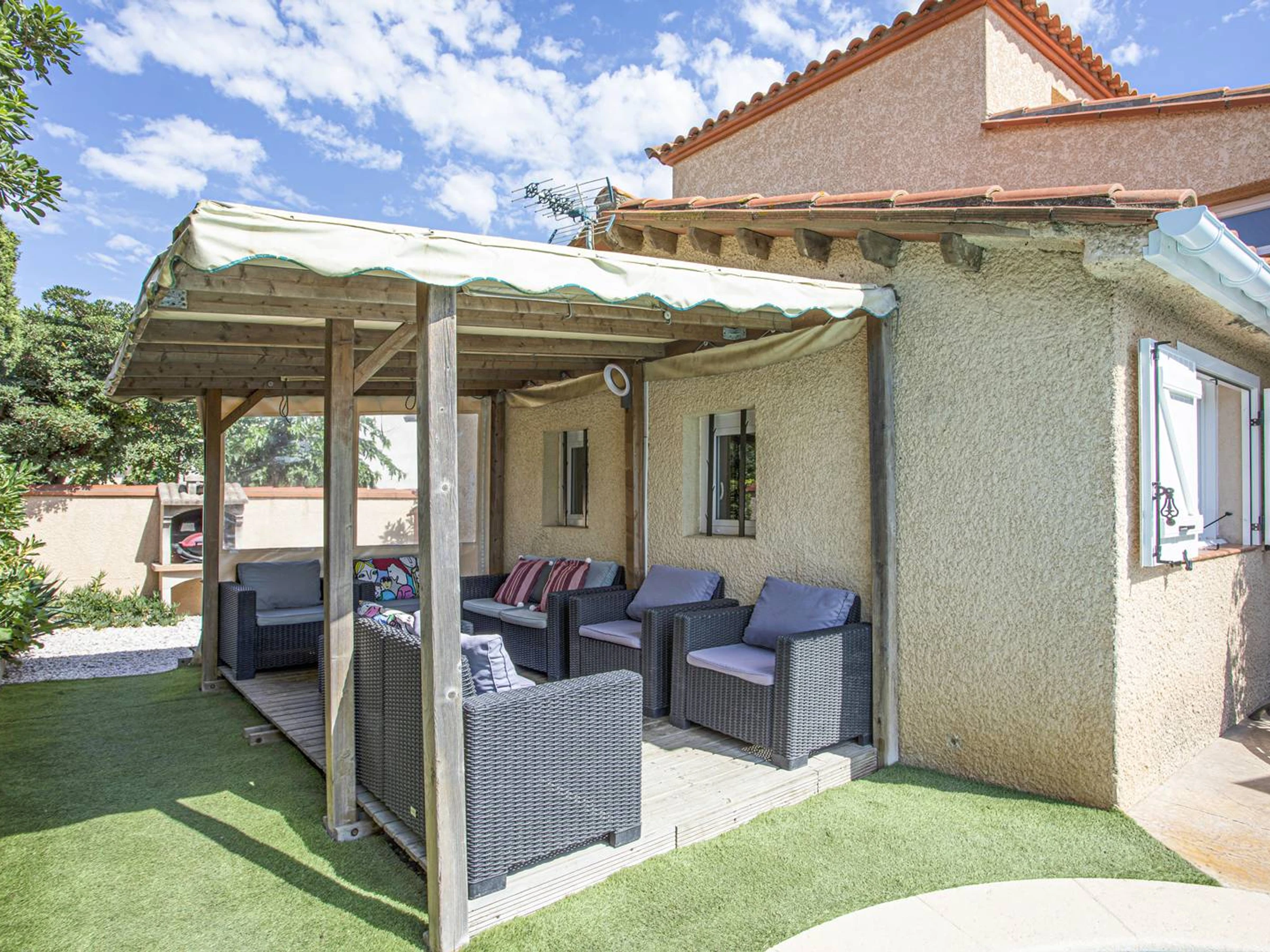 Offrant une surface habitable de 110 m², cette villa dégage une atmosphère chaleureuse et accueillante, avec un patio ombragé qui constitue un véritable havre de paix pour vos repas ou moments de relaxation.