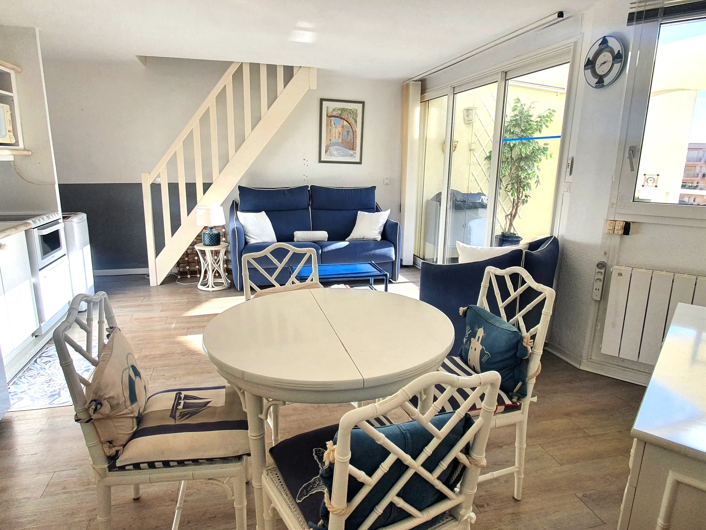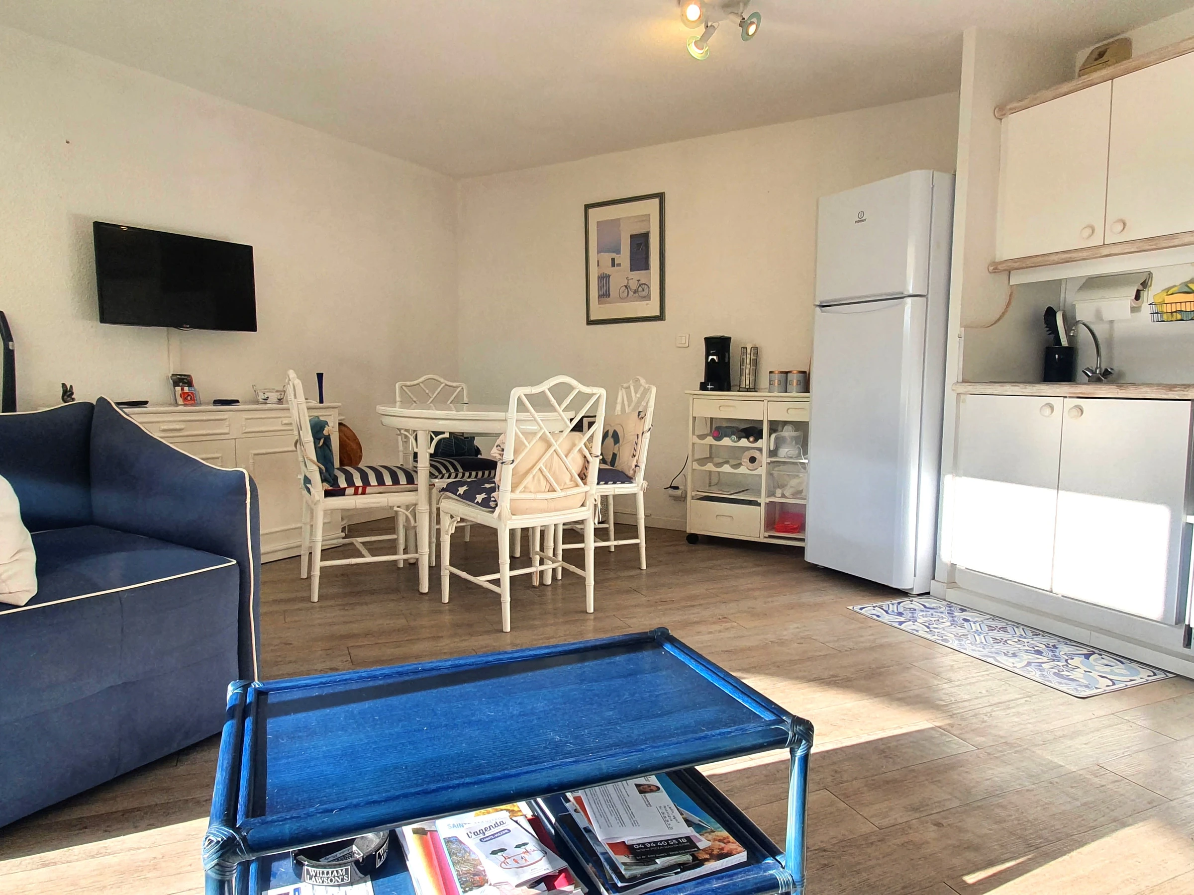 - Salle de séjour avec canapé-lit en 160 donnant sur la terrasse – Téléviseur.