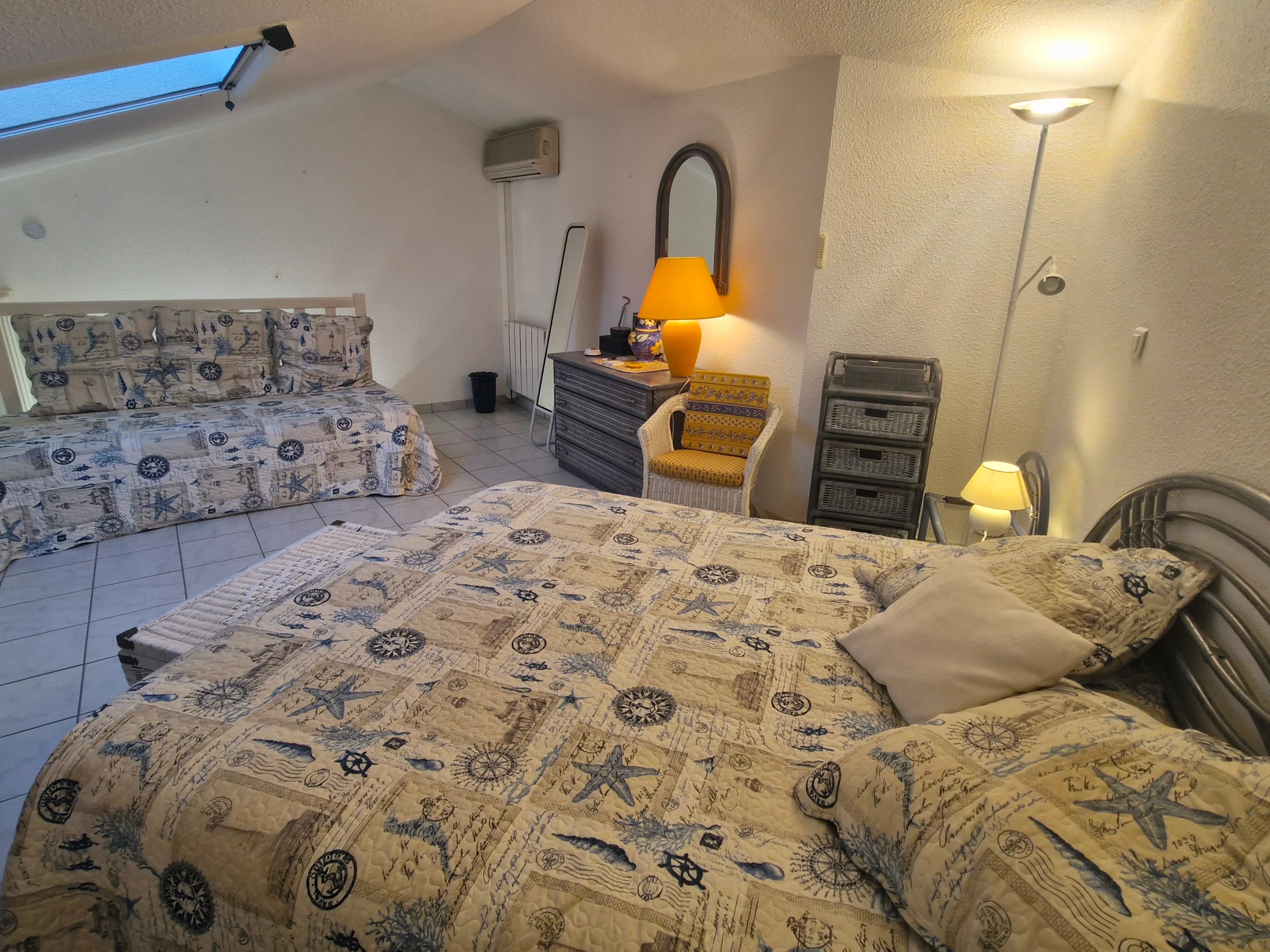 - Chambre climatisée en mezzanine avec 1 lit en 160 et 1 lit en 90 et placards - Téléviseur.