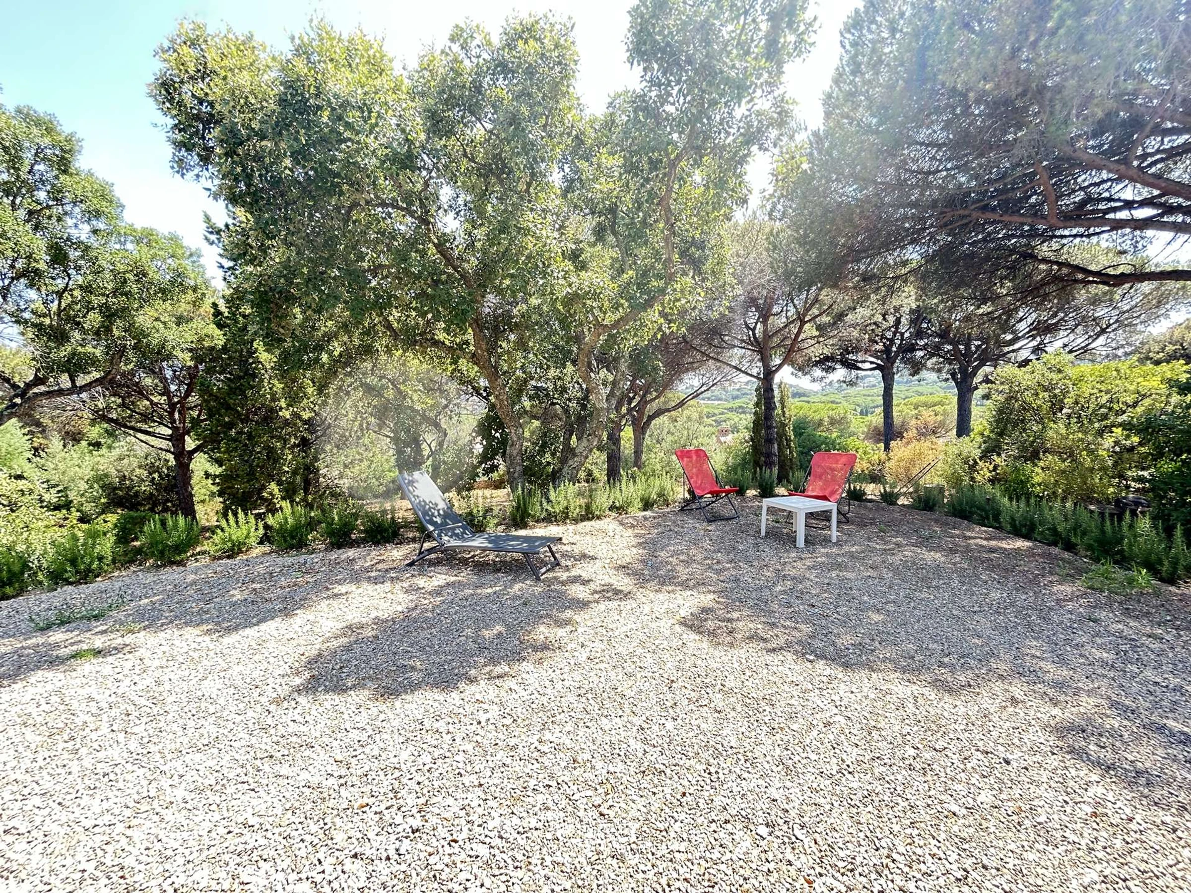 Le jardin est doté d’une esplanade avec vue sur mer, ombragée et équipée de transats et d’un hamac, idéal pour se prélasser avec une vue sur la pointe des Sardineaux.