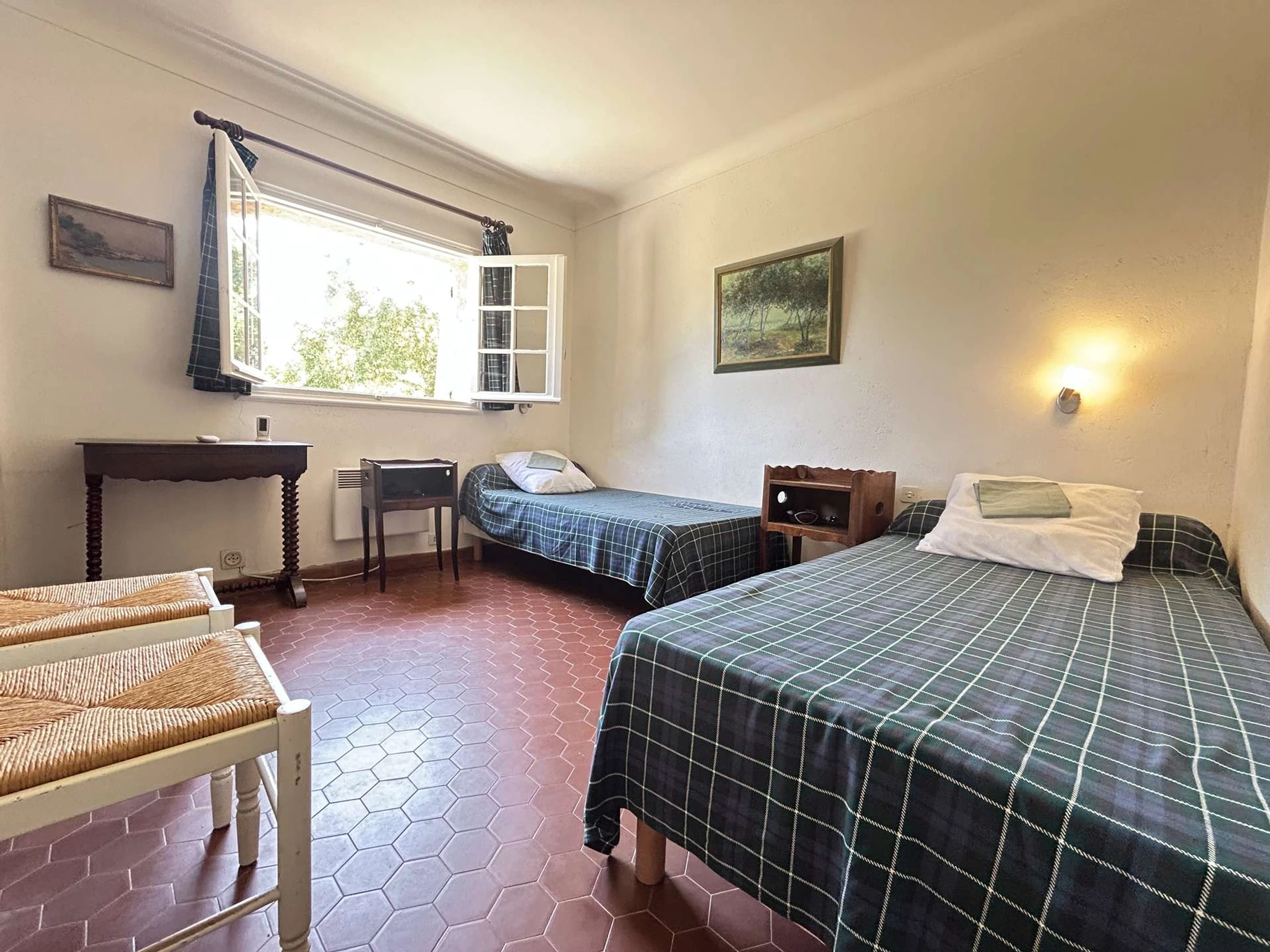 Villa de plein-pied, au charme méditerranéen avec beaucoup de caractère et d'authenticité. Nichée dans un écrin de verdure, elle se trouve à 10 mn à pied de la plage de La Nartelle grace à un accès direct à un chemin pédestre que l’on emprunte par l’ouverture d’un portillon métallique situé au bas du jardin.
