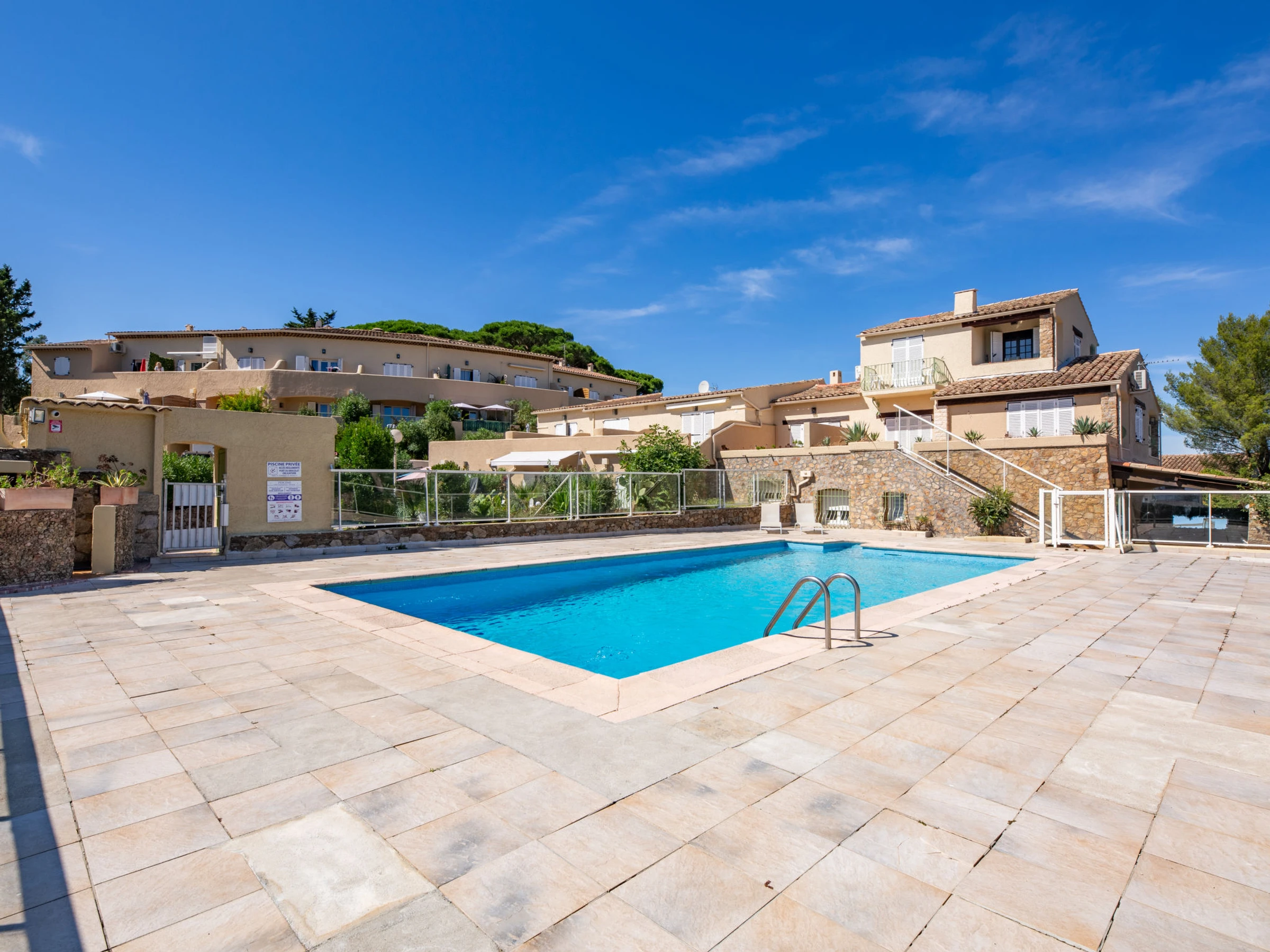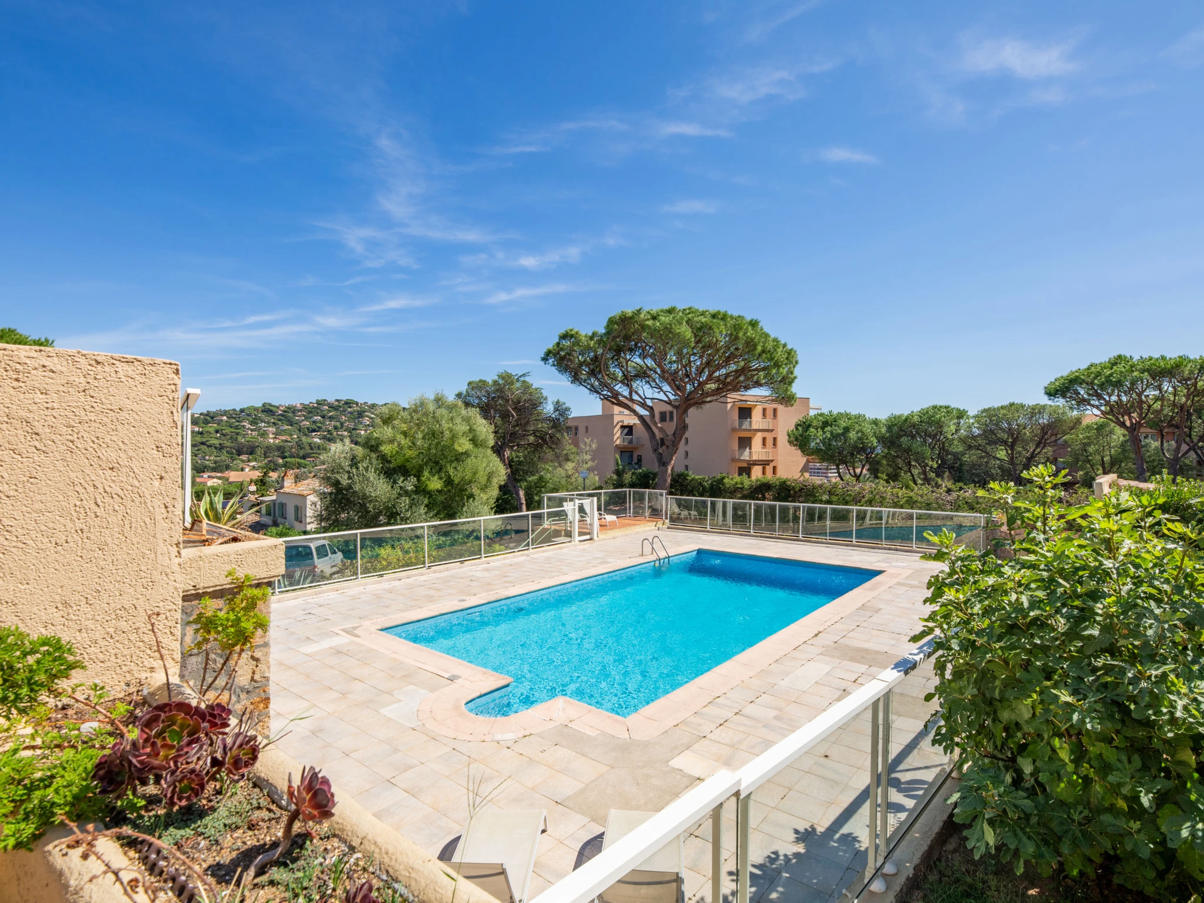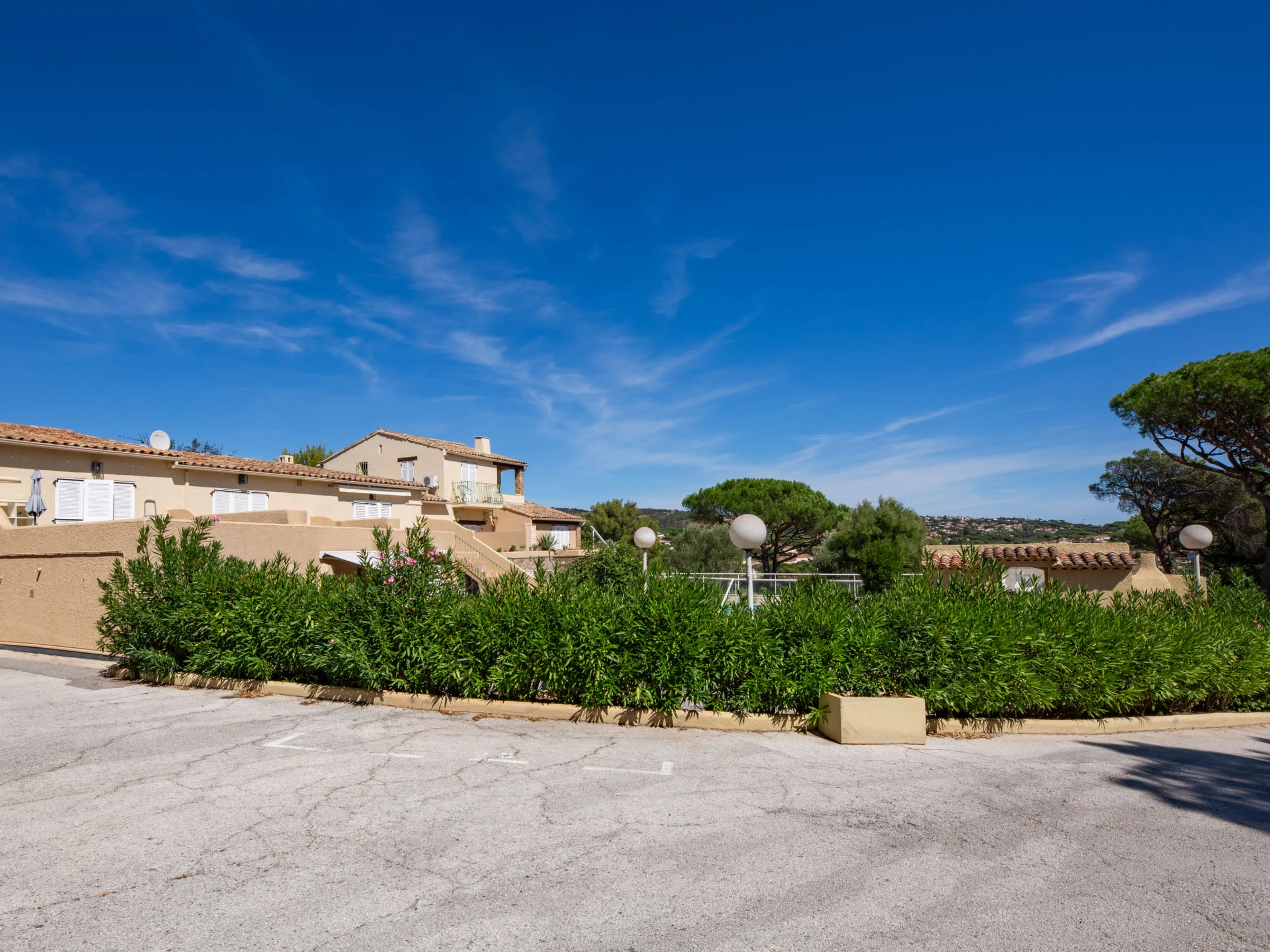 Petite résidence "Résidence Mer et Vacances". En bordure de la localité, à 1.7 km du centre de Ste Maxime, situation tranquille, à 1.4 km de la mer, à 1.4 km de la plage. En commun: piscine rectangulaire cloturée (7 x 14 m, disponibilité saisonnière: [hidden] - [hidden] avec marches intérieures. Magasin d'alimentation 1 km, restaurant 1.5 km, arrêt de bus "Virgiles" 100 m, gare ferroviaire "TGV Saint-Raphael" 35 km, plage de sable "du centre ville" 1.4 km, centre thermal "Thalasso Spa Les Issambres" 8 km. Port plaisance 2 km, terrain de golf (18 trous) 6 km, tennis 2.5 km, piste cyclable 1.5 km. Attractions à proximité: Aqualand waterpark 2 km, Navette / shuttle boat St-Tropez 15min 2 km, Saint-Tropez/Ramatuelle 17 km, Port-Grimaud 9 km. Région de randonnées: Massif des Maures 5 km, Massif de l'Esterel 25 km. Veuillez noter: voiture recommandée, sans ascenseur. La remise des clés a lieu à l’agence de Sainte-Maxime, 2 km.