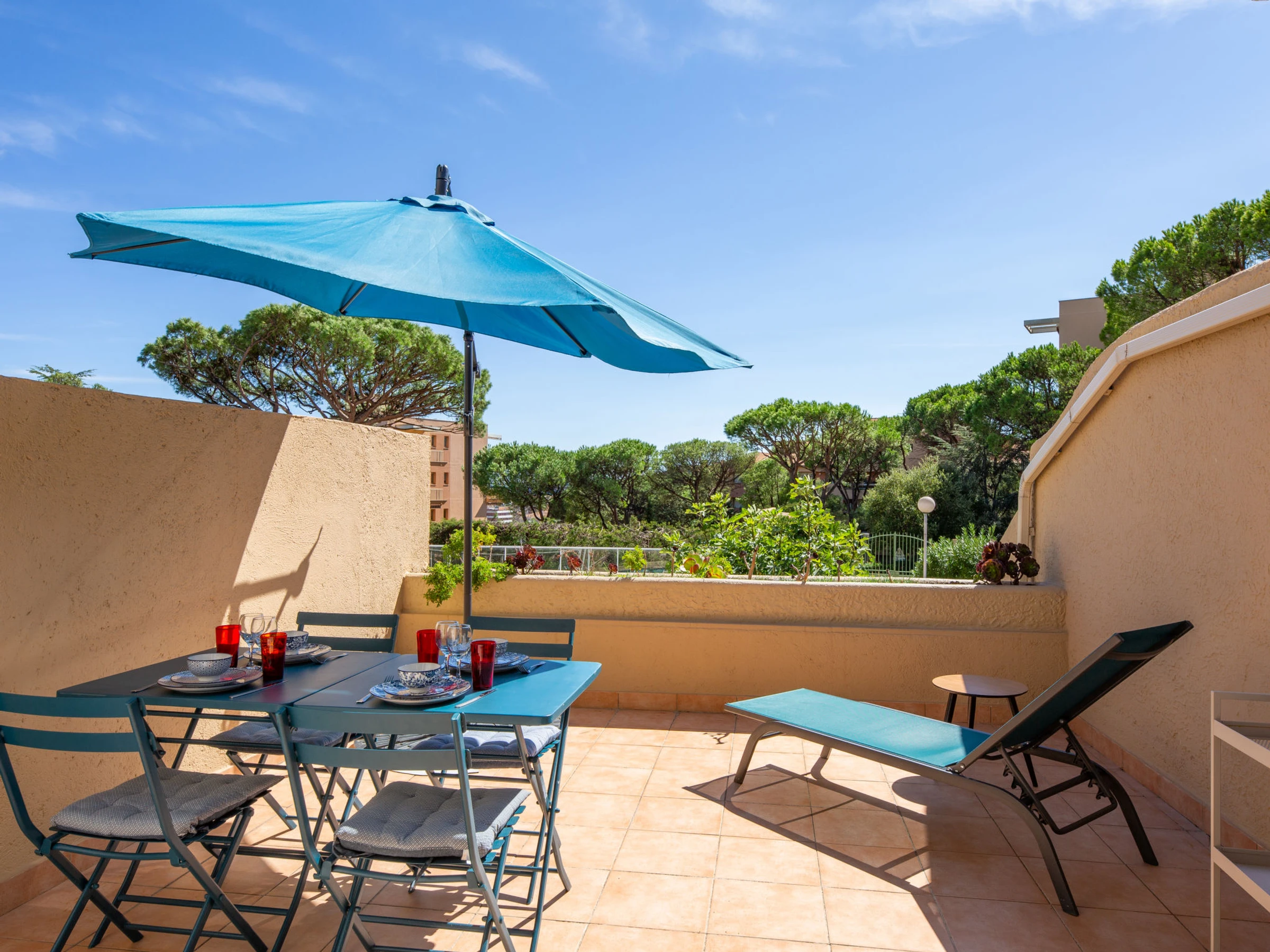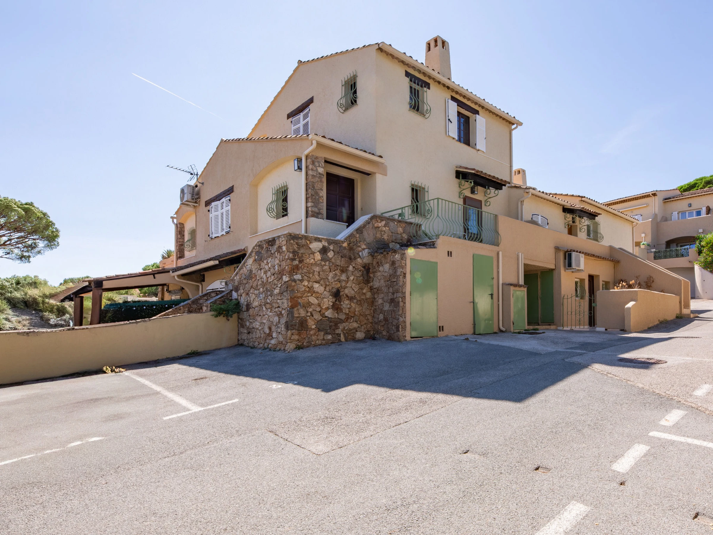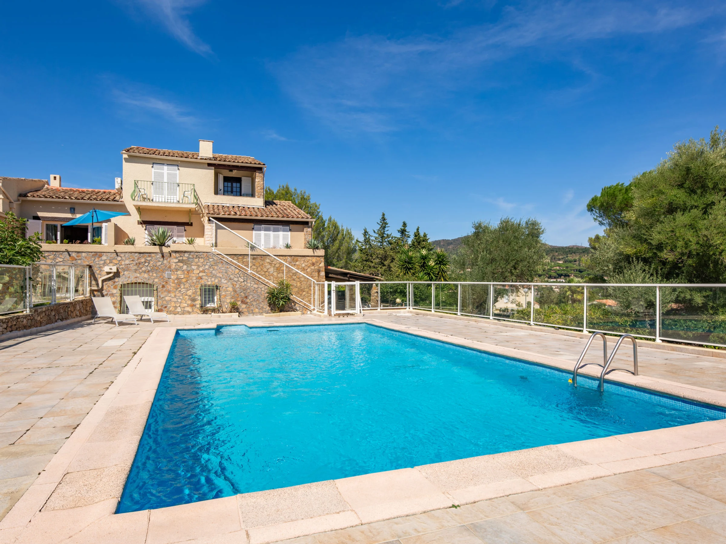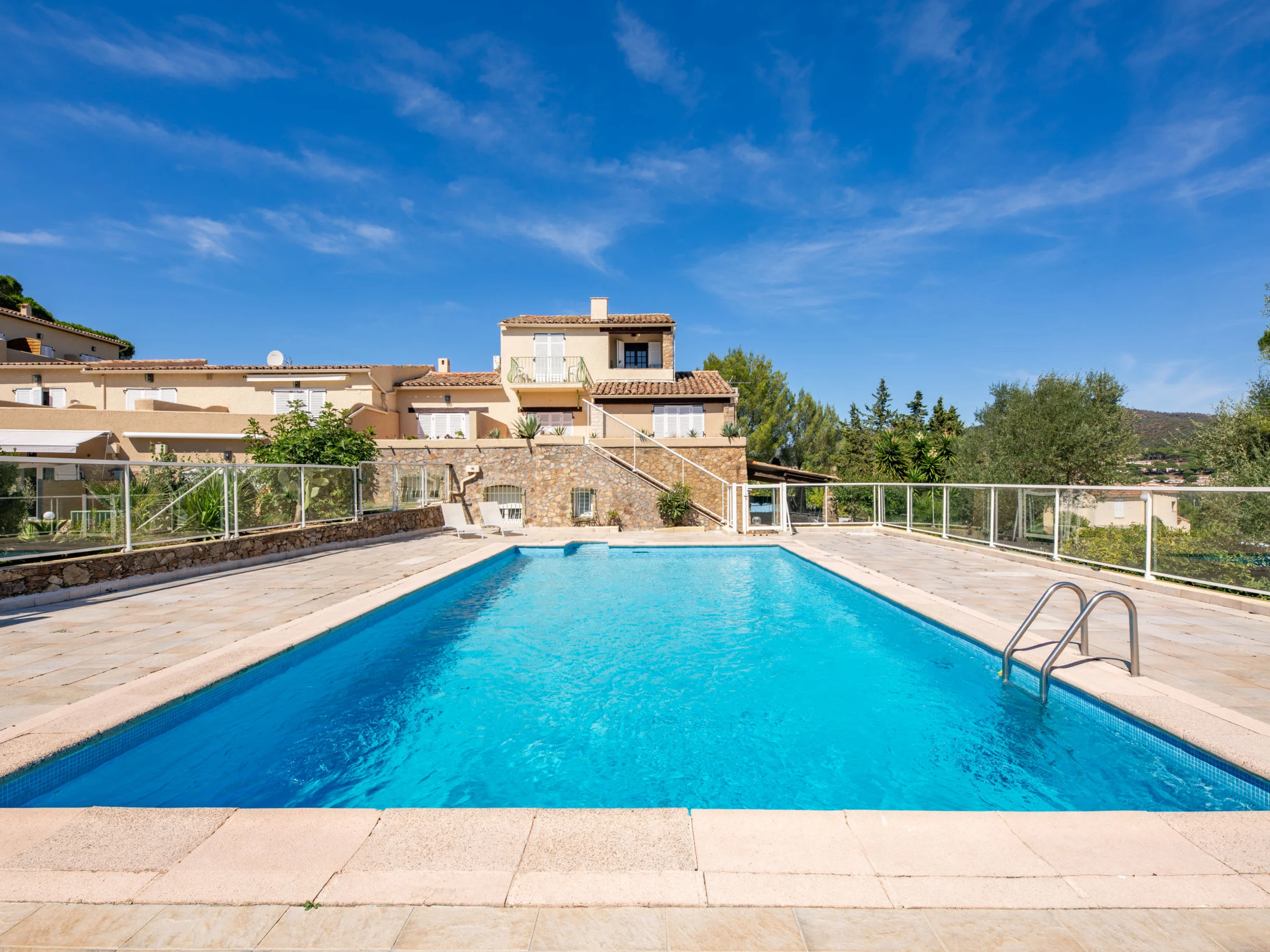 Petite résidence "Résidence Mer et Vacances". En bordure de la localité, à 1.7 km du centre de Ste Maxime, situation tranquille, à 1.4 km de la mer, à 1.4 km de la plage. En commun: piscine rectangulaire cloturée (7 x 14 m, disponibilité saisonnière: [hidden] - [hidden] avec marches intérieures. Magasin d'alimentation 1 km, restaurant 1.5 km, arrêt de bus "Virgiles" 100 m, gare ferroviaire "TGV Saint-Raphael" 35 km, plage de sable "du centre ville" 1.4 km, centre thermal "Thalasso Spa Les Issambres" 8 km. Port plaisance 2 km, terrain de golf (18 trous) 6 km, tennis 2.5 km, piste cyclable 1.5 km. Attractions à proximité: Aqualand waterpark 2 km, Navette / shuttle boat St-Tropez 15min 2 km, Saint-Tropez/Ramatuelle 17 km, Port-Grimaud 9 km. Région de randonnées: Massif des Maures 5 km, Massif de l'Esterel 25 km. Veuillez noter: voiture recommandée, sans ascenseur. La remise des clés a lieu à l’agence de Sainte-Maxime, 2 km.