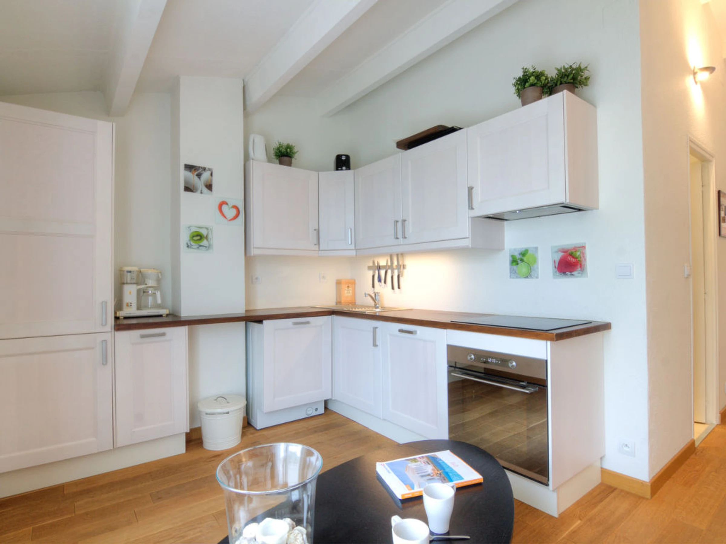Studio 33 m2 sur 2 niveaux. Aménagement confortable et agréable: séjour/salle à manger. Sortie sur le balcon. 1 chambre avec 1 grand-lit (160 cm, longueur 200 cm), air-conditionné. Coin cuisine (four, lave-vaisselle, 4 plaques à induction). Douche/WC. À l'étage inférieur: entrée. Balcon. Vue sur les alentours. A disposition: lave-linge. Internet (Connexion WIFI, en sus). Place de parking No 19. Pas de télévision. Inclus: Place de stationnement, Nettoyage final, ERV assurance annulation gratuite Disponible sur le site avec supplément: Linge de lit (premier jeu) 12.0EUR par personne, Poussette 3.0EUR par jour, Réhausseur bébé (pour enfants) 3.0EUR par jour, Chaise haute 3.0EUR par jour, WIFI (max. 10 appareils – limité à 2 GB par jour) 5.6EUR par jour, Lit bébé (jusqu'à 2 ans) 3.0EUR par jour, Serviettes (premier jeu) 5.0EUR par personne Services supplémentaires obligatoires sur le site: Taxe de séjour enfants (par personne et par jour), Taxe de séjour 0.83EUR par personne et par jour, Taxe de séjour bébés (0-2) (par personne et par jour)
