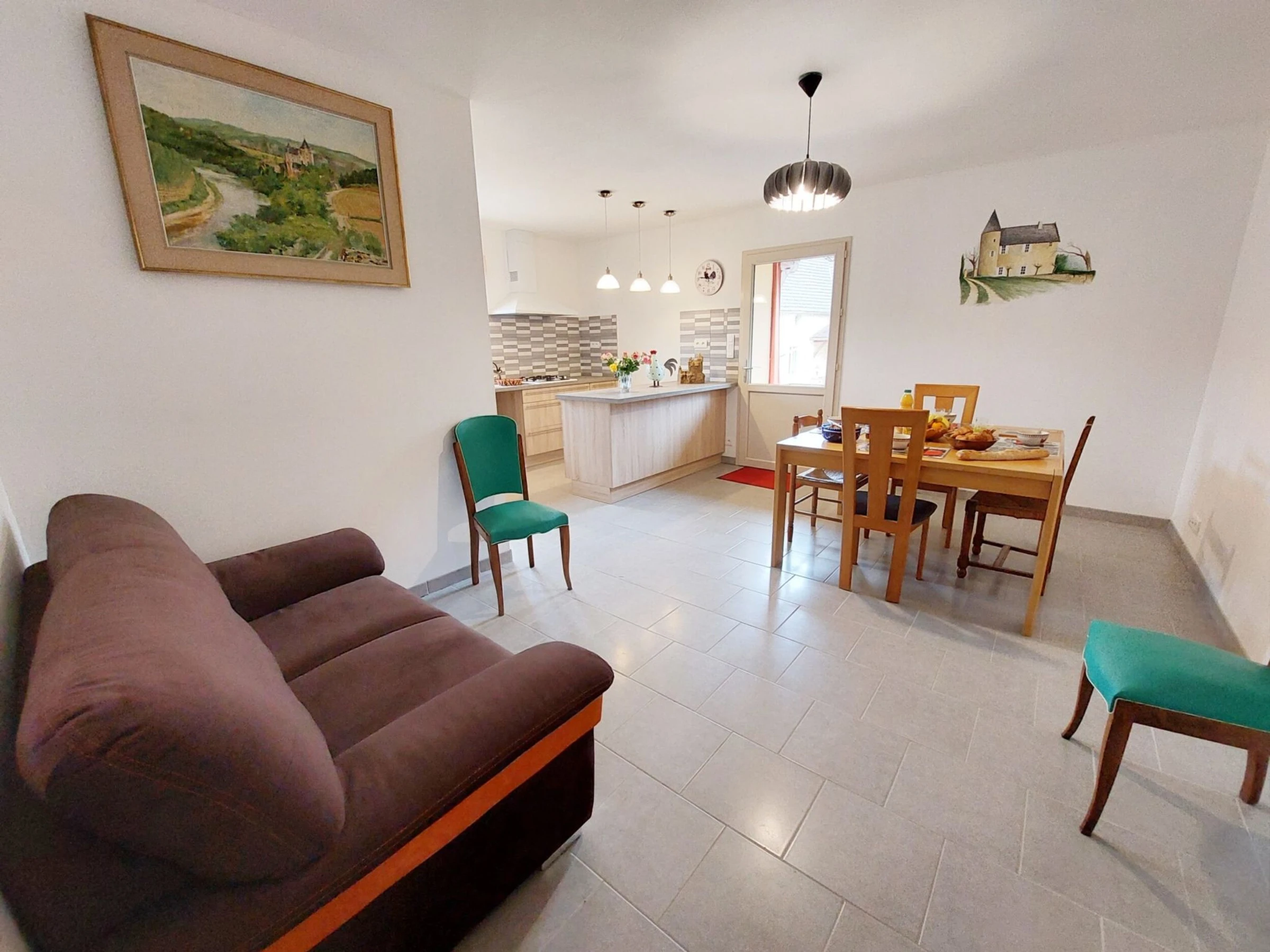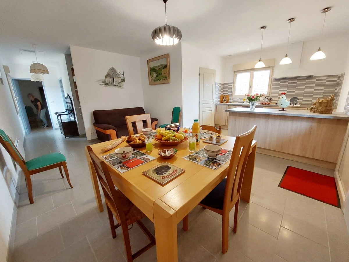 "Au gîte du Petit Touron", maison mitoyenne 3 pièces 75 m2. Logement idéal pour 4 adultes + 2 enfants. Aménagement fonctionnel et plaisant: à l'étage supérieur: (escalier extérieur) séjour/salle à manger avec table pour les repas et TV (écran plat). Sortie sur le jardinet. 1 chambre avec 1 x 2 lits superposés (80 cm, longueur 190 cm), 1 grand-lit (160 cm, longueur 200 cm), douche/WC. 1 chambre avec 1 grand-lit (160 cm, longueur 200 cm), douche/WC. Cuisine ouverte (four, lave-vaisselle, 4 feux, grille-pain, bouilloire électrique, four micro-ondes, congélateur, cafetière électrique) avec bar. Chauffage électrique. Terrasse couverte. Meubles de terrasse, barbecue (portable). A disposition: lave-linge, fer à repasser, chaise haute pour enfant, lit bébé, sèche-cheveux. Internet (Connexion WIFI, gratuit). Veuillez noter: maison non-fumeur. Détecteur de fumée.