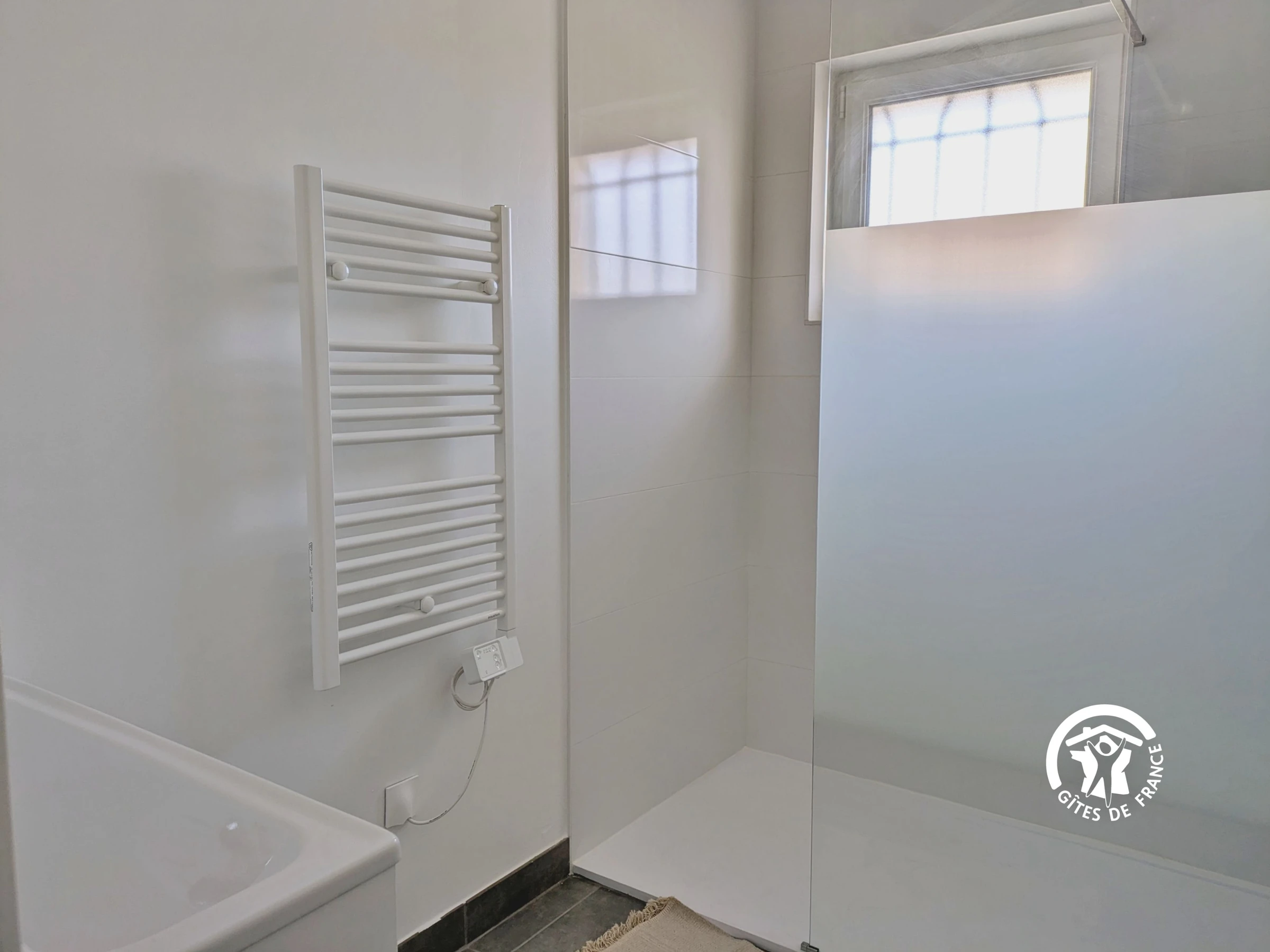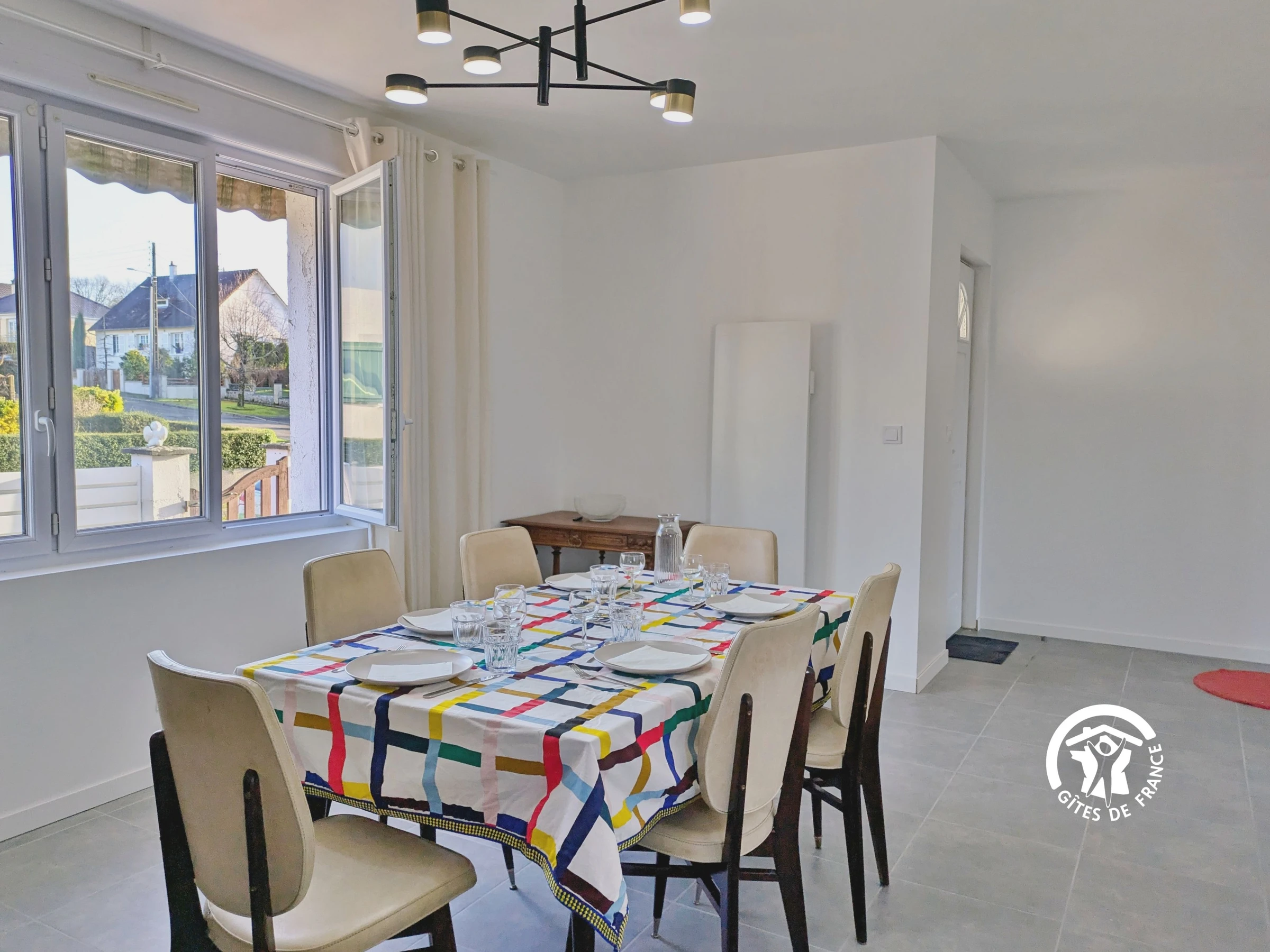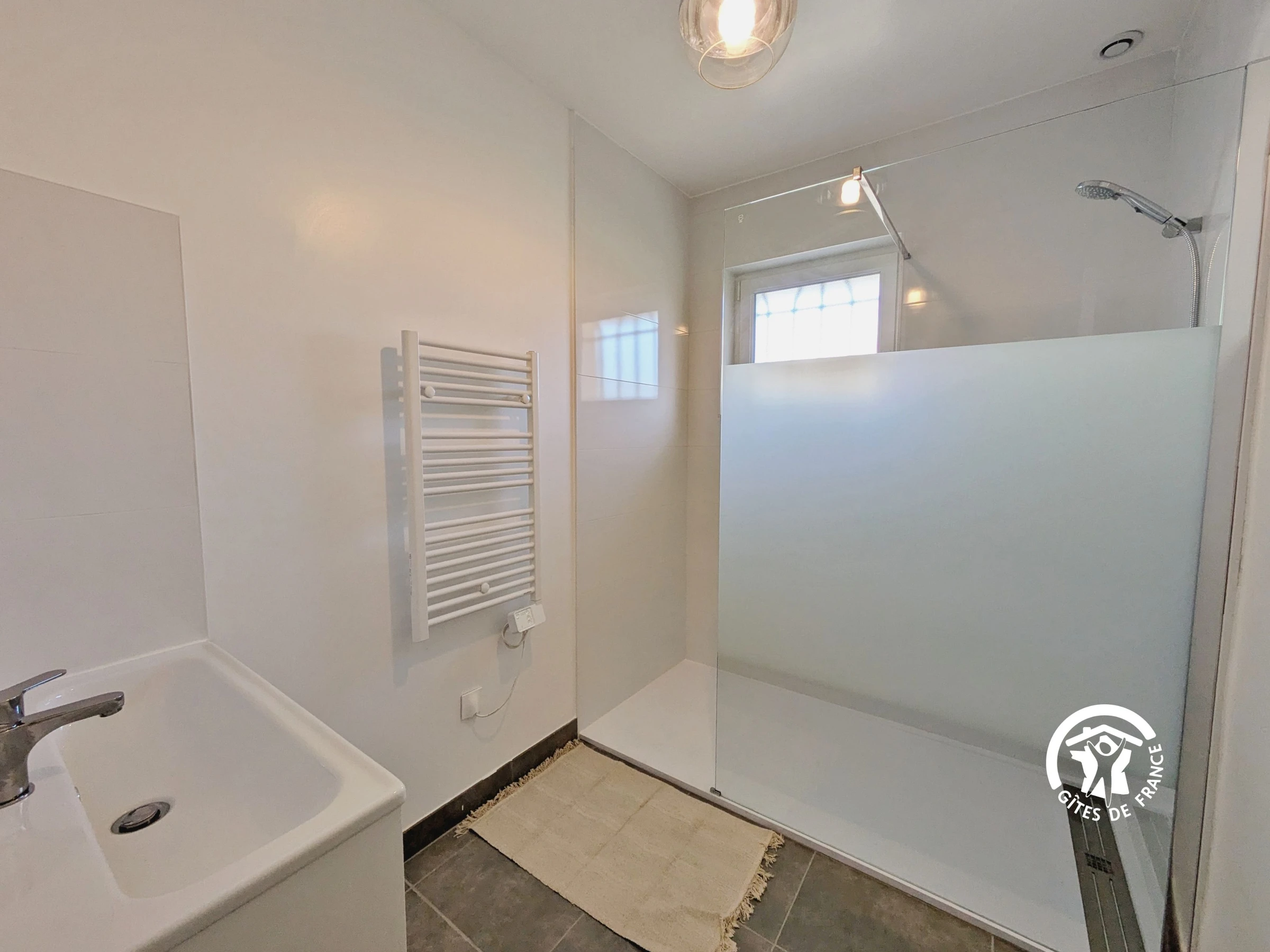 Le gîte offre de grandes pièces de vie -salon, salle à manger et cuisine équipée- ainsi que 3 chambres, une salle d'eau avec une large douche à l'italienne et un wc indépendant et jardin.