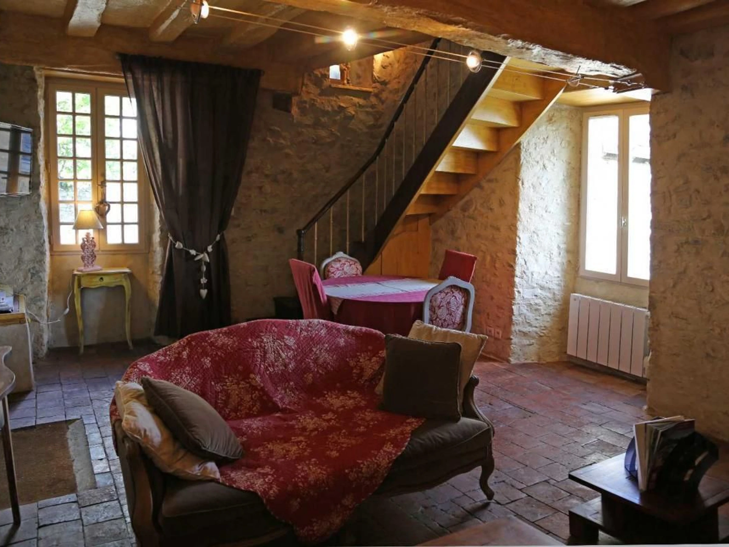 Nichée sur les remparts de la cité médiévale de Sainte-Suzanne, cette maison en pierres apparentes accueillera 4 personnes dans un décor chaleureux et confortable.