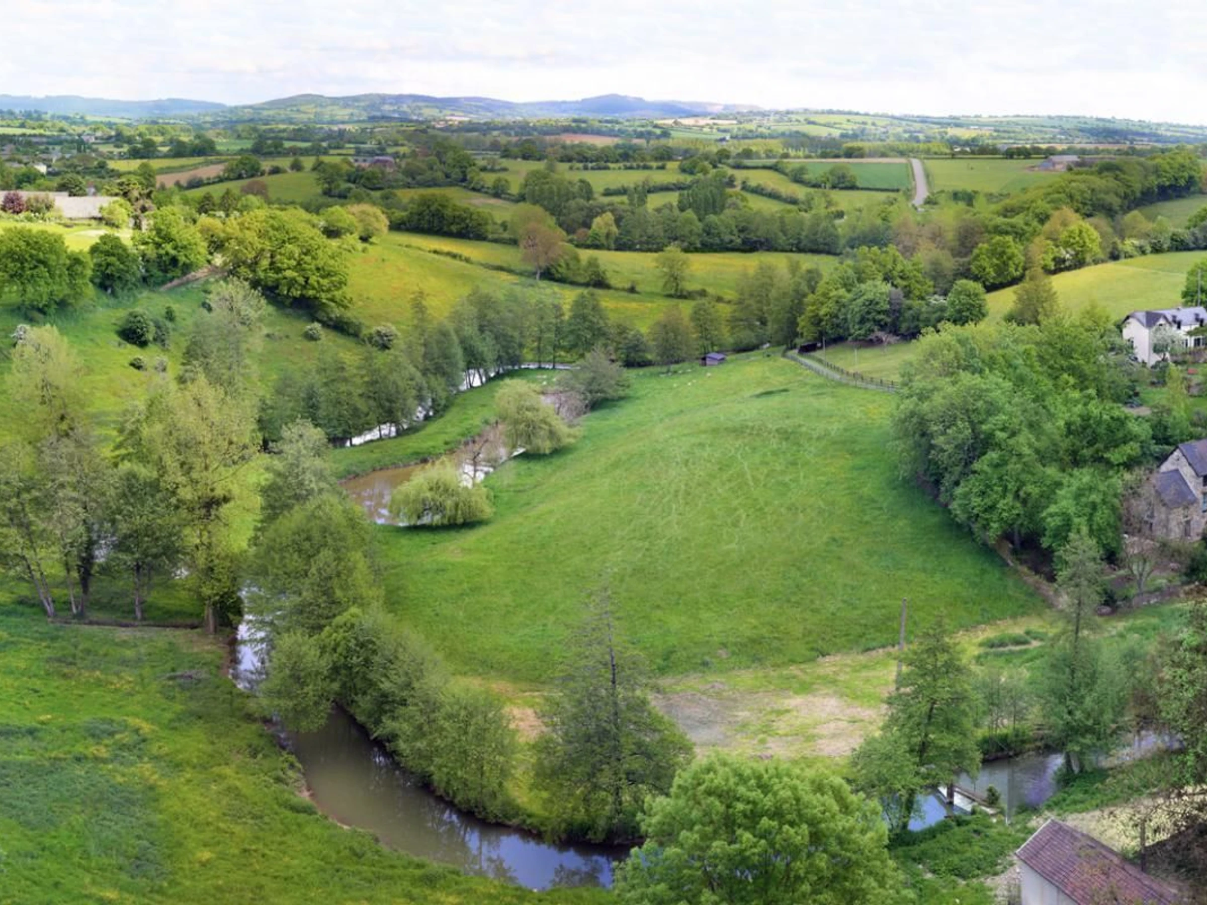 Au 1er, 2 chambres: la première équipée d'un lit 160x200 et d'une terrasse-belvédère avec vue panoramique sur les collines environnantes, la vallée de l'Erve et la forêt, la seconde avec 2 lits jumeaux 90x190, et enfin une salle d'eau en pierres apparentes avec douche et WC.