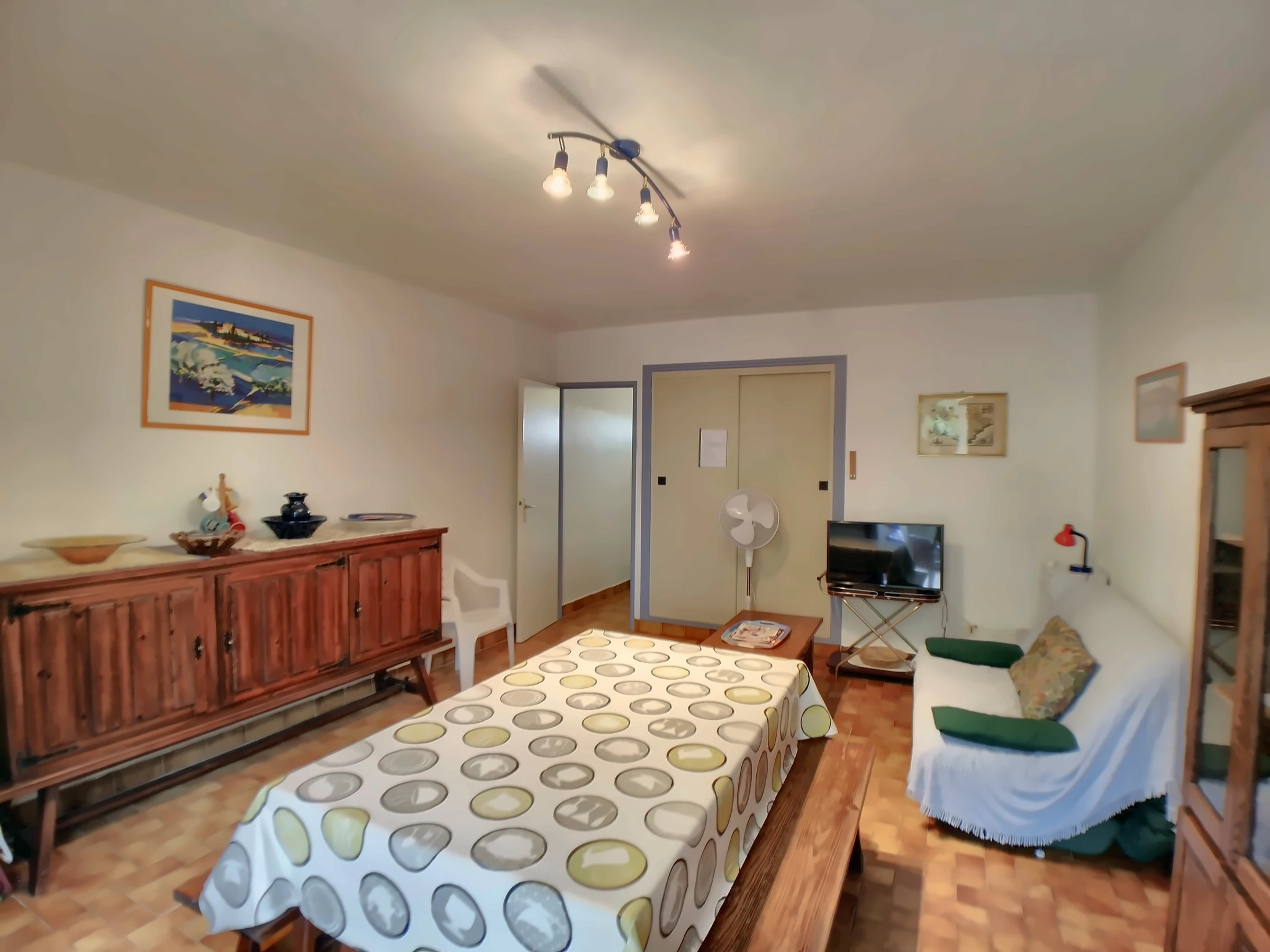 Situé à 800 m de la mer et des commerces cet appartement de plein pied de la résidence le Vaccarès III dispose d'une entrée, une chambre avec un lit 2 places, une salle d'eau avec lave linge, wc, d'une pièce principale avec canapé bz pour 2 personnes, une cuisine séparée équipée avec frigo-congélateur, lave vaisselle, micro-onde, four, plaque de cuisson, cafetière... et d'une grande cour avec barbecue électrique. Ce logement dispose d'un emplacement de stationnement.