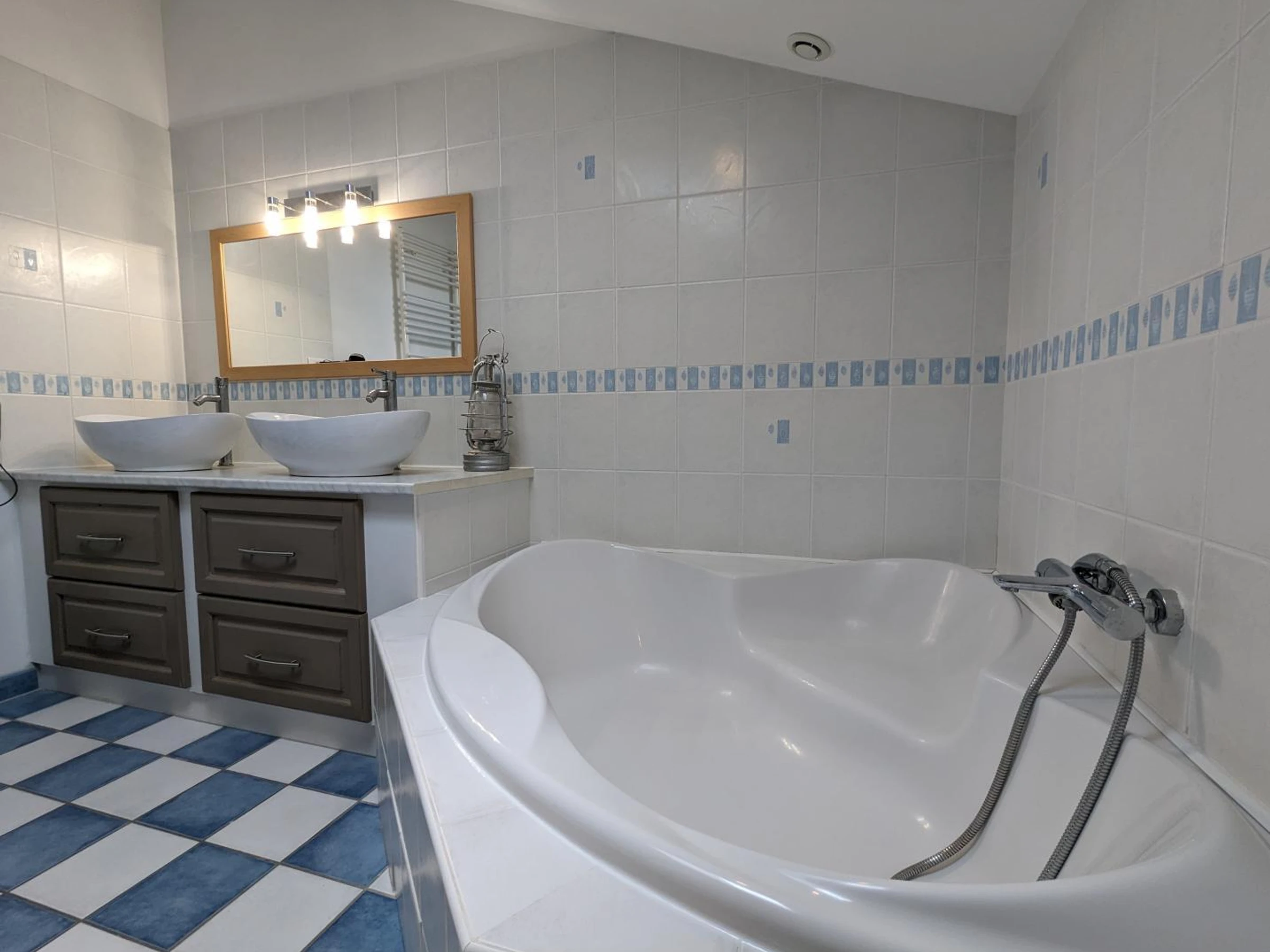 Étage : 4 chambres, salle de bain avec baignoire, grande douche et wc.