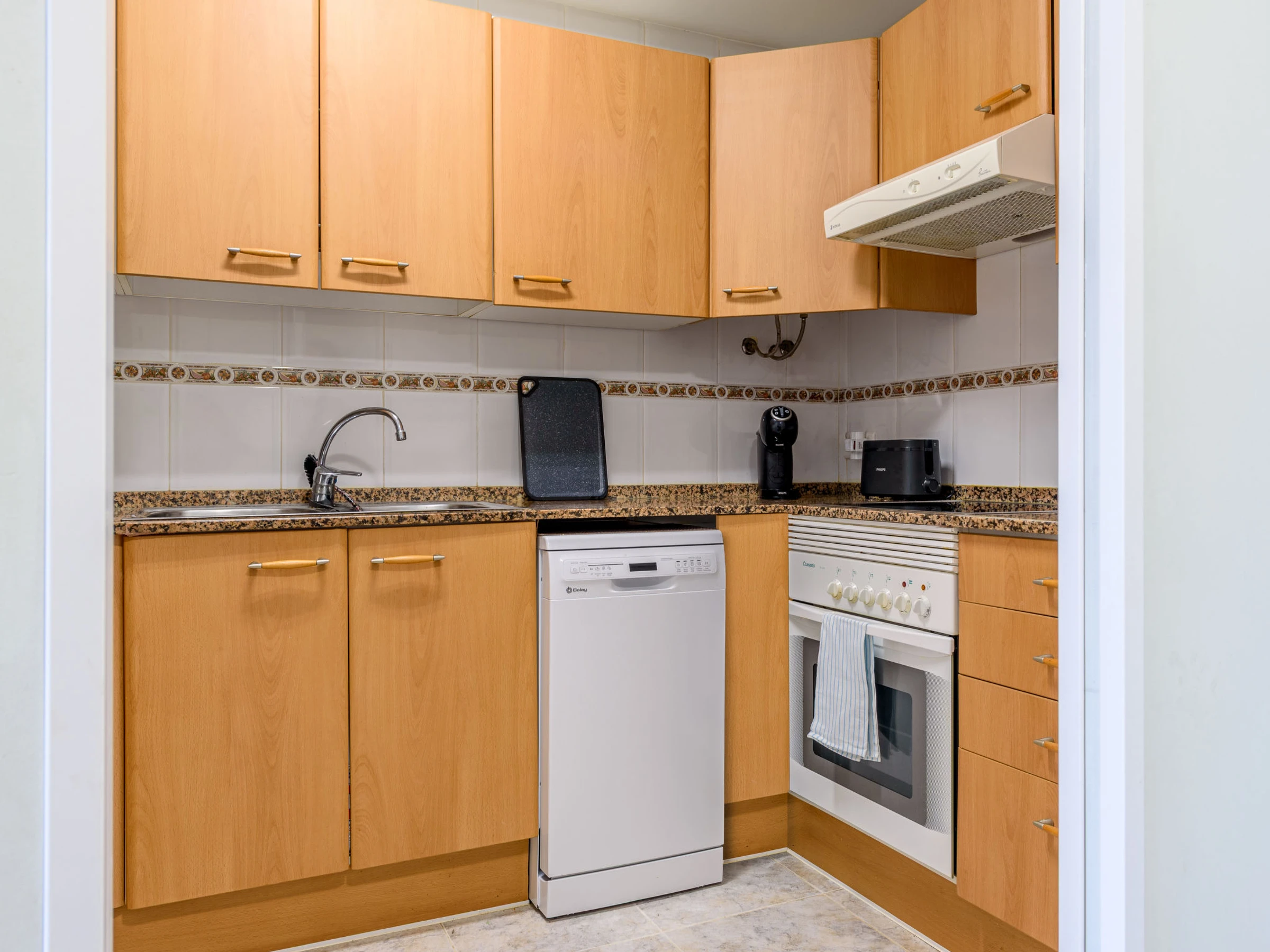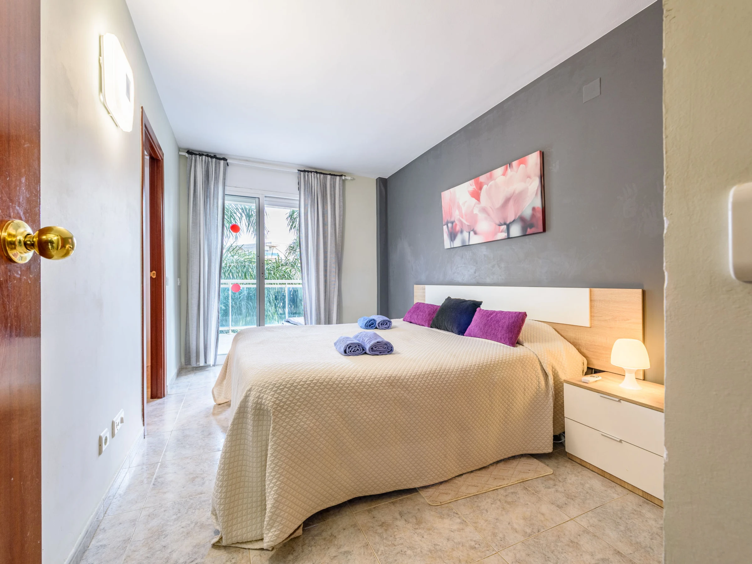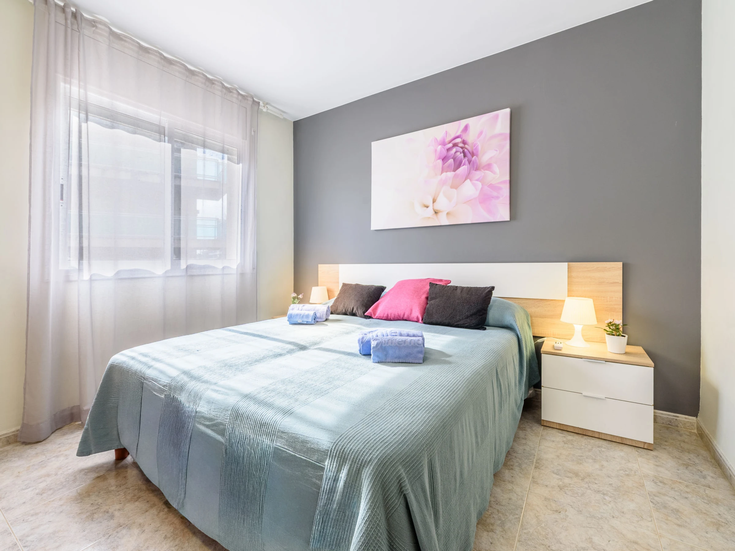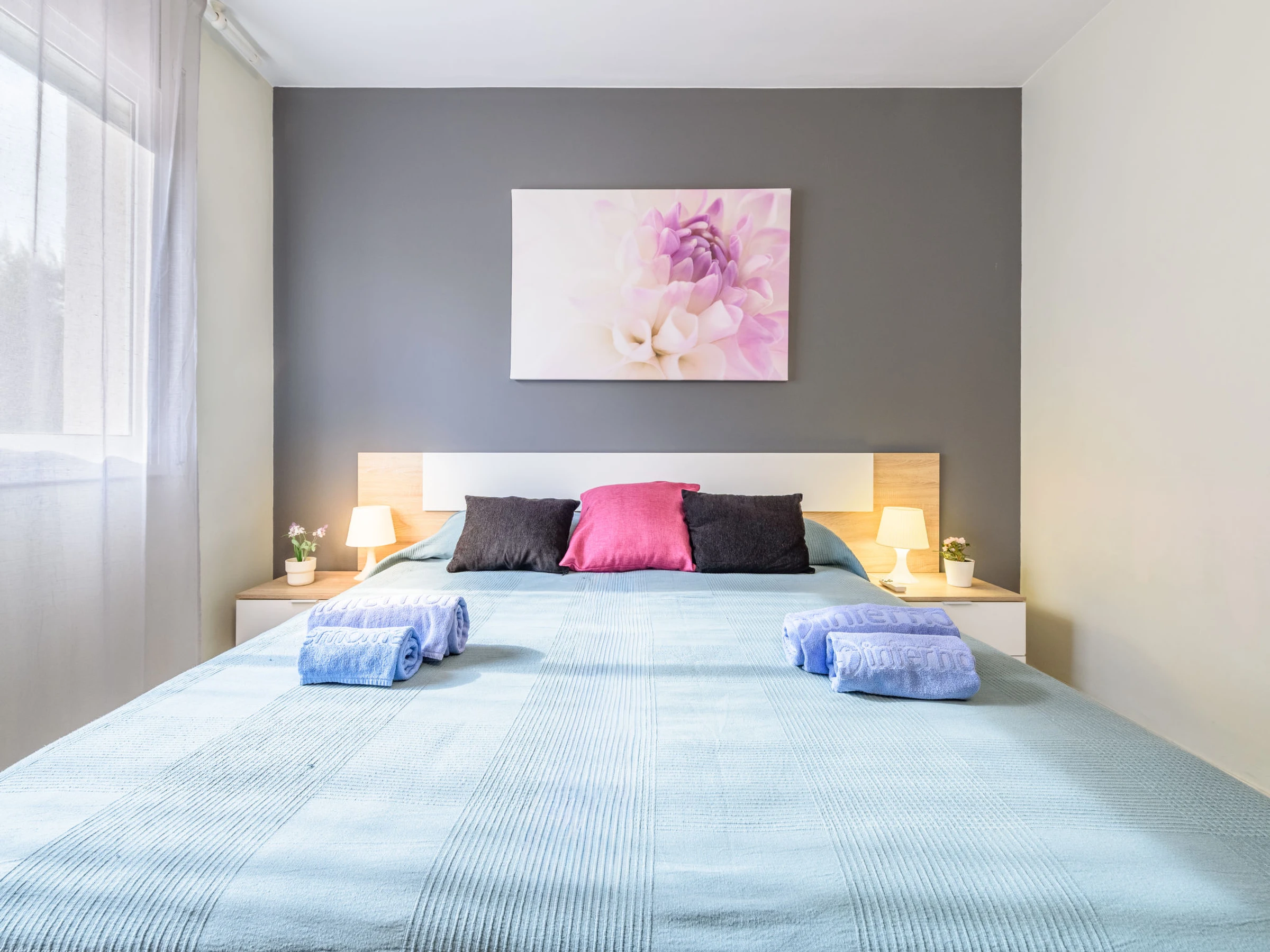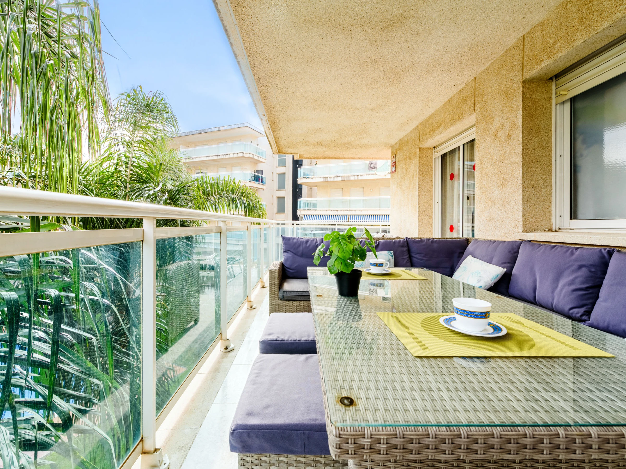 "Villa Park", apt 3 pièces 60 m2 au 3ème étage. Aménagement fonctionnel et plaisant: séjour/salle à manger avec TV et Télévision numérique (écran plat). Sortie sur la terrasse. 1 chambre avec 1 grand-lit (150 cm, longueur 190 cm). Sortie sur la terrasse. 1 chambre avec 2 lits (90 cm, longueur 190 cm). Cuisine (four, lave-vaisselle, 4 plaques vitrocéramiques, micro-ondes, cafetière électrique, Capsules pour machine à café (Dolce Gusto) (NON INCLUSES)) avec chauffe eau (50 litres). Bain/WC, douche/WC. Air-conditionné, chauffage à air chaud. Grande terrasse 24 m2. Mobilier de balcon, chaises longues (2). Vue sur la piscine. A disposition: lave-linge, fer à repasser, sèche-cheveux. Internet (Connexion WIFI, gratuit). Veuillez noter: logement non-fumeur. Maximum 1 animal/ chien de petite taille autorisé. [hidden] // Reg. Nr.: ESFCTU00004302400064847000000000000000[hidden]-721
