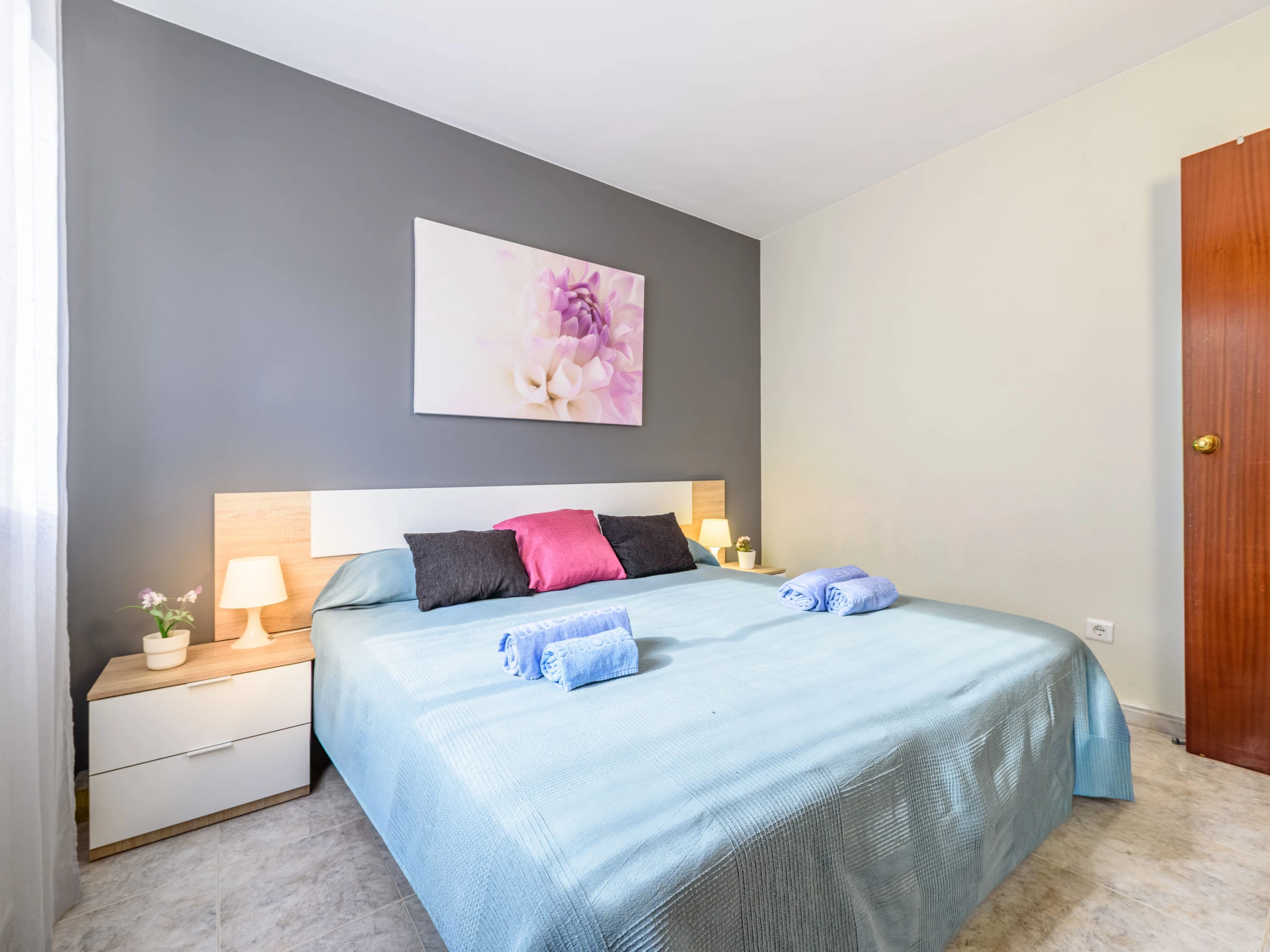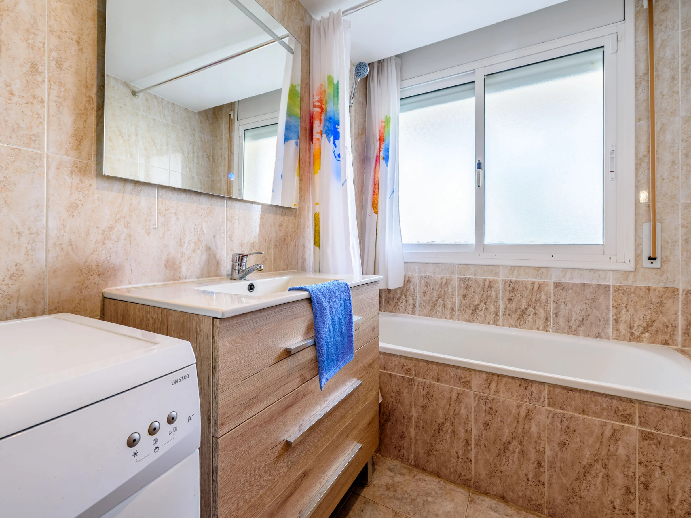 Salou: Petite résidence accueillante, confortable "Village Park", de 4 étages. Situation centrale, ensoleillée, à 900 m de la mer, à 900 m de la plage. En commun: piscine (20 x 10 m, profondeur 80 - 200 cm, disponibilité saisonnière: [hidden] - [hidden] et [hidden] - [hidden] horaires d'ouverture de la piscine: 10:00-20:00 et 09:00-23:00). Infrastructures de la Maison: ascenseur. Magasins 250 m, supermarché 300 m, restaurant, bar 150 m, arrêt de bus "PLaza Europa" 300 m, plage de sable 900 m. Terrain de golf (18 trous) 3 km. Attractions à proximité: Parque temático Portaventura 2 km, Parque aquático Aquapolis 5 km, Spa Aquum 5 km, Karting 2 km, Paintball 8 km. Veuillez noter: animation en saison. Bien convenant à 4 adultes. Le propriétaire n'accepte pas les groupes de jeunes.