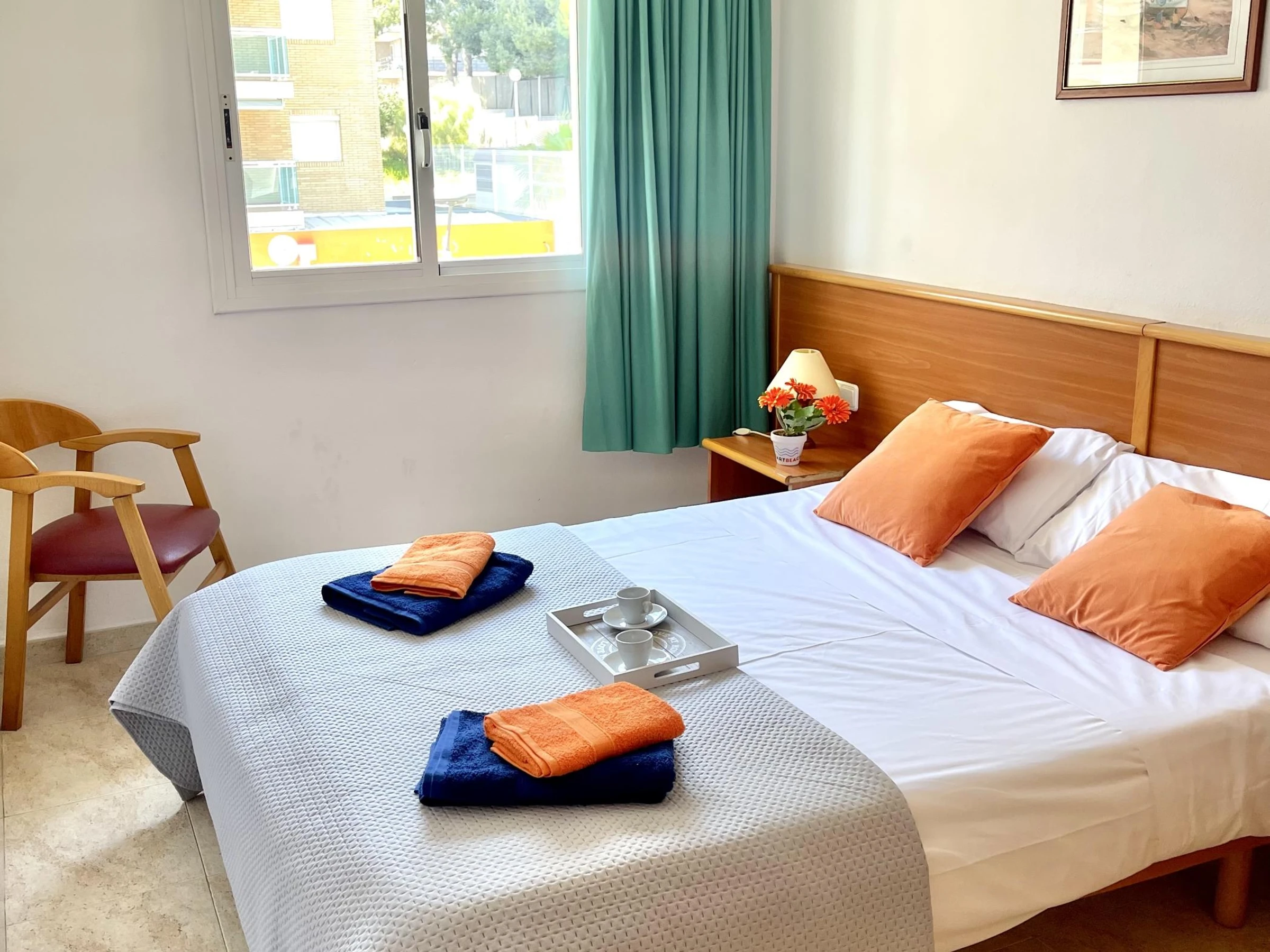 Appartement confortable, climatisé, avec piscine, parking et à 7 minutes à pied de la plage de Cala Fon. L'appartement se compose de deux chambres à coucher, d'une salle de bains avec baignoire, d'un salon avec canapé-lit double, de la climatisation, d'une télévision et d'une grande terrasse donnant sur la rue. Supermarché en face de l'immeuble.