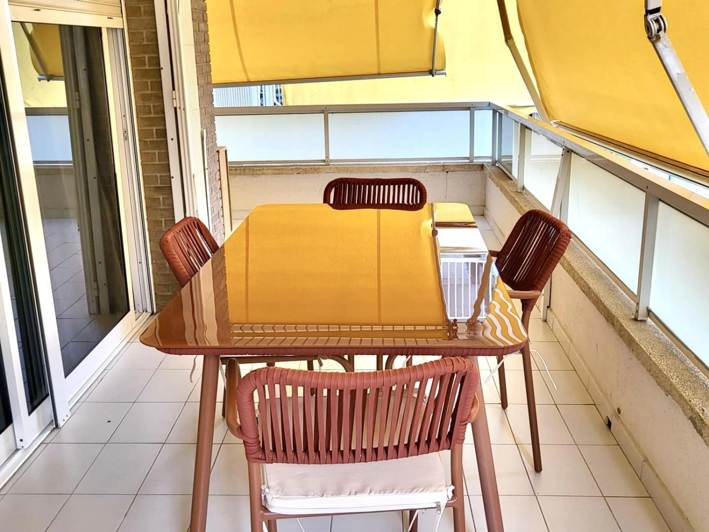 Appartement confortable et climatisé, d'une capacité de 4 personnes composé de :- 1 une chambre double avec un lit double de 135cm, avec une grande armoire intégrée- Séjour avec canapé-lit double de 1,50cm- Grande terrasse- Air conditionné- Wi-Fi payant en option (5€ par jour)