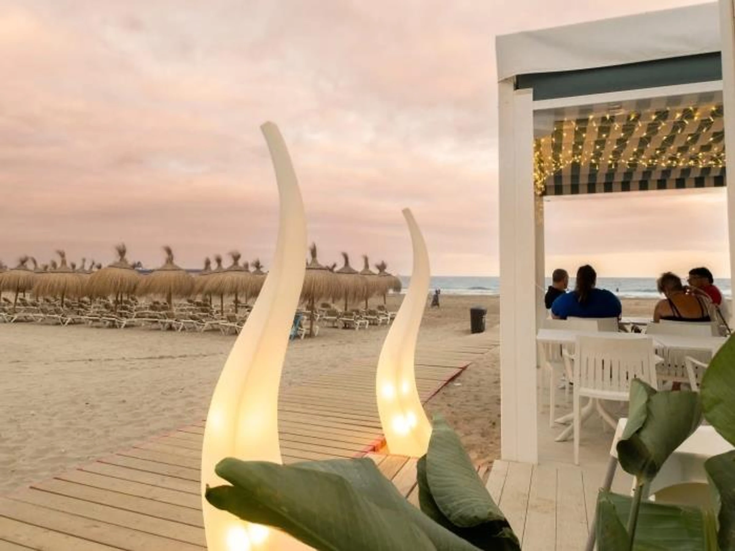Extérieur:terrasse, 20 m de terrasse à côté de la plage avec auvents, table, chaises et chaises longues.