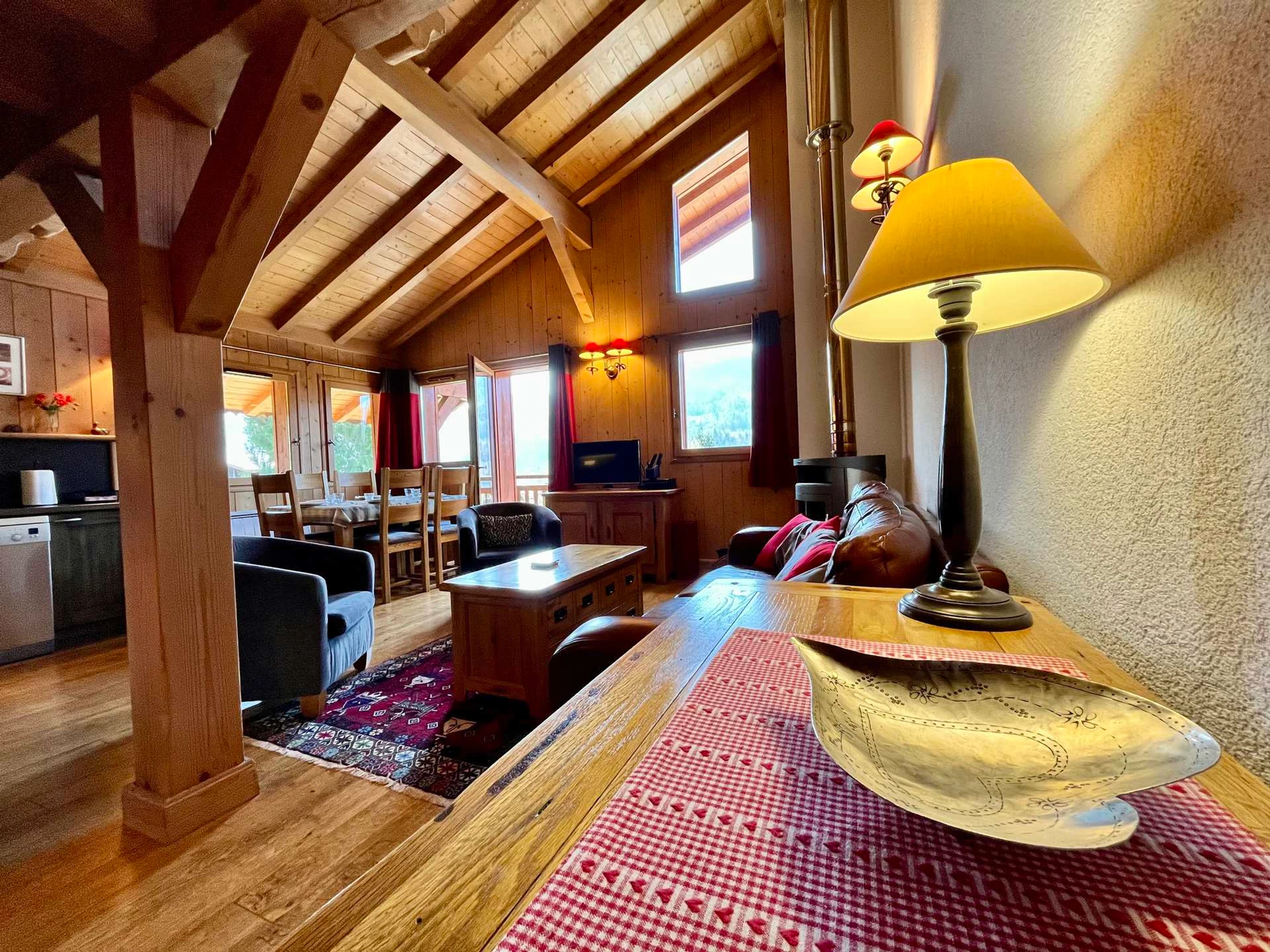 Avec une exposition Sud Est, cet appartement de 88 m² de standing dans un chalet récent et situé au calme avec une vue panoramique sur le coteau Sud de Samoëns et à 15 minutes à pieds du village
