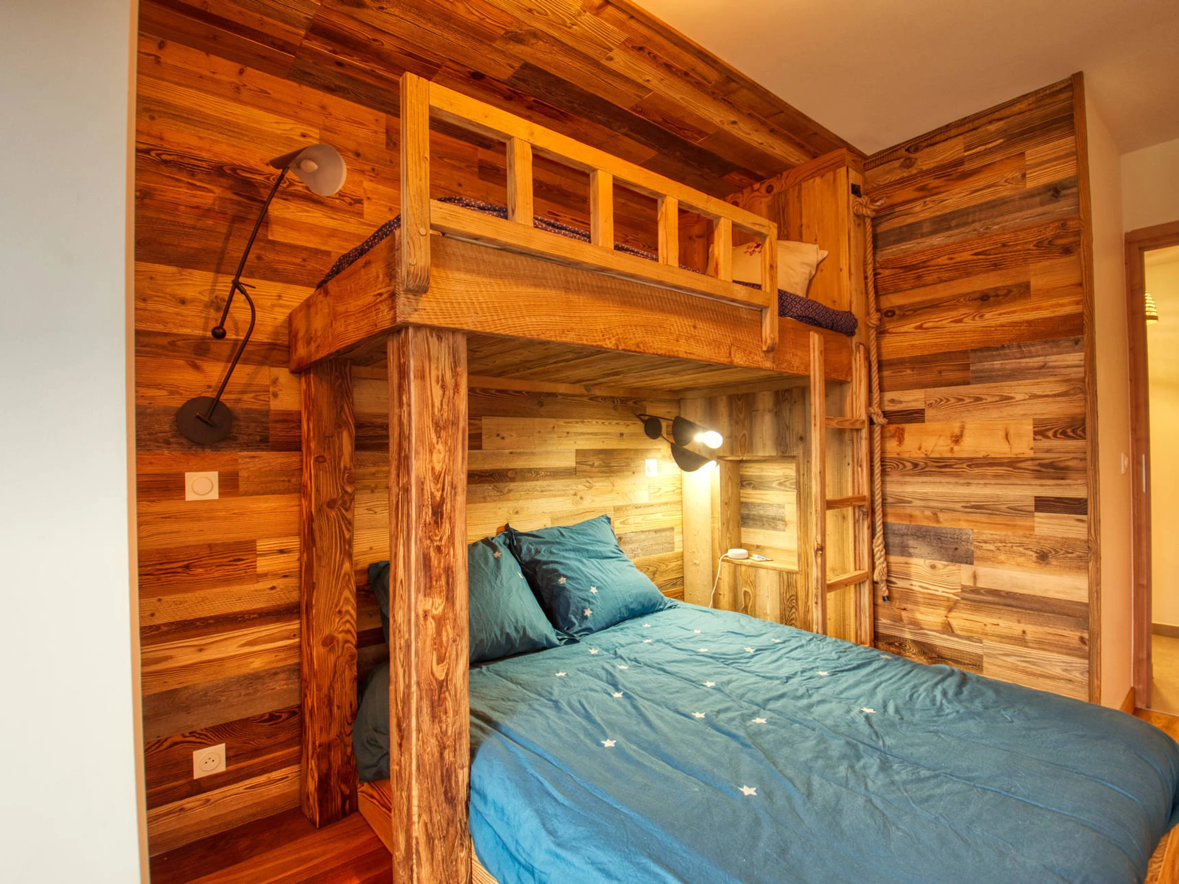 chambre 3 : 3 couchages ( un lit 2p de 140 x 200 et un lit 1 place en "mezzanine"(le couchage en hauteur ne convient pas à des enfants de moins de 6ans)
