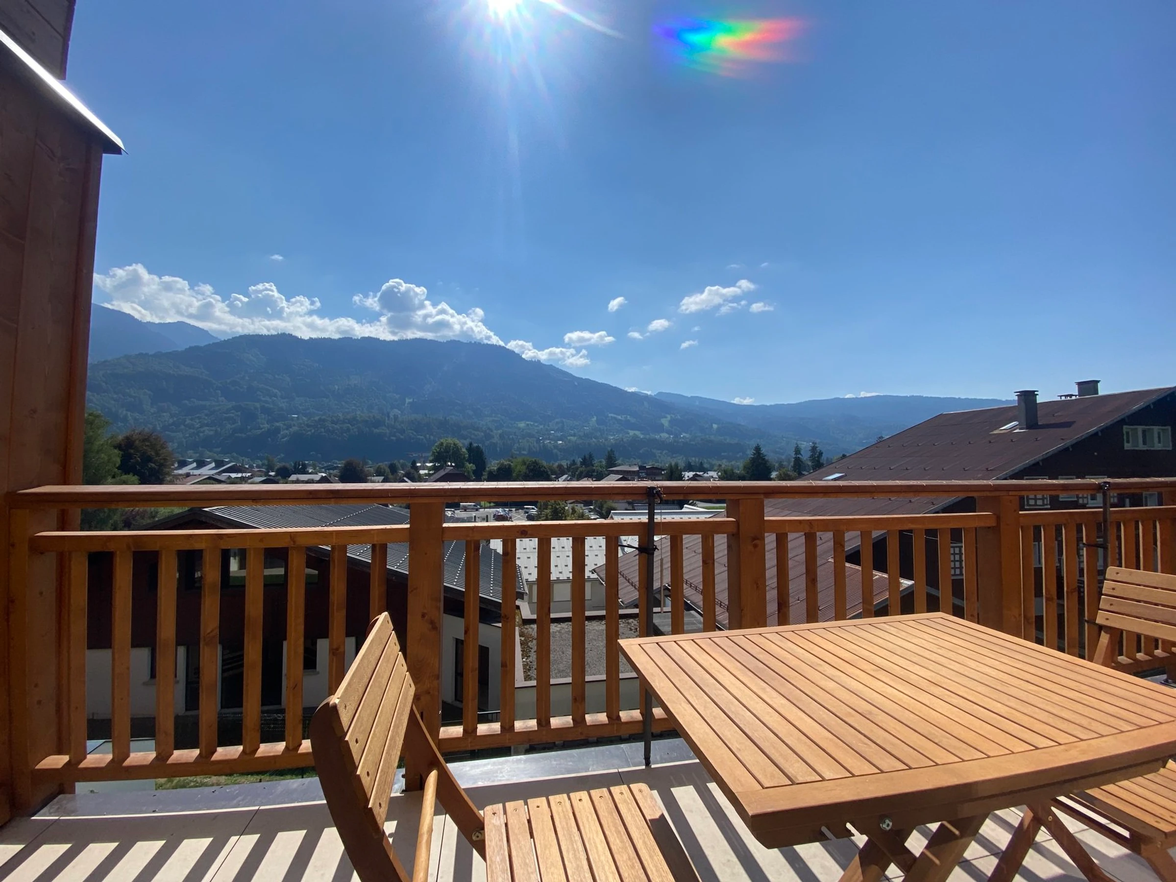 Le balcon profite d'une exposition sud avec une belle vue sur les montagnes environnantes. Appartement situé au niveau -1 de la résidence, celui-ci se décompose comme tel :