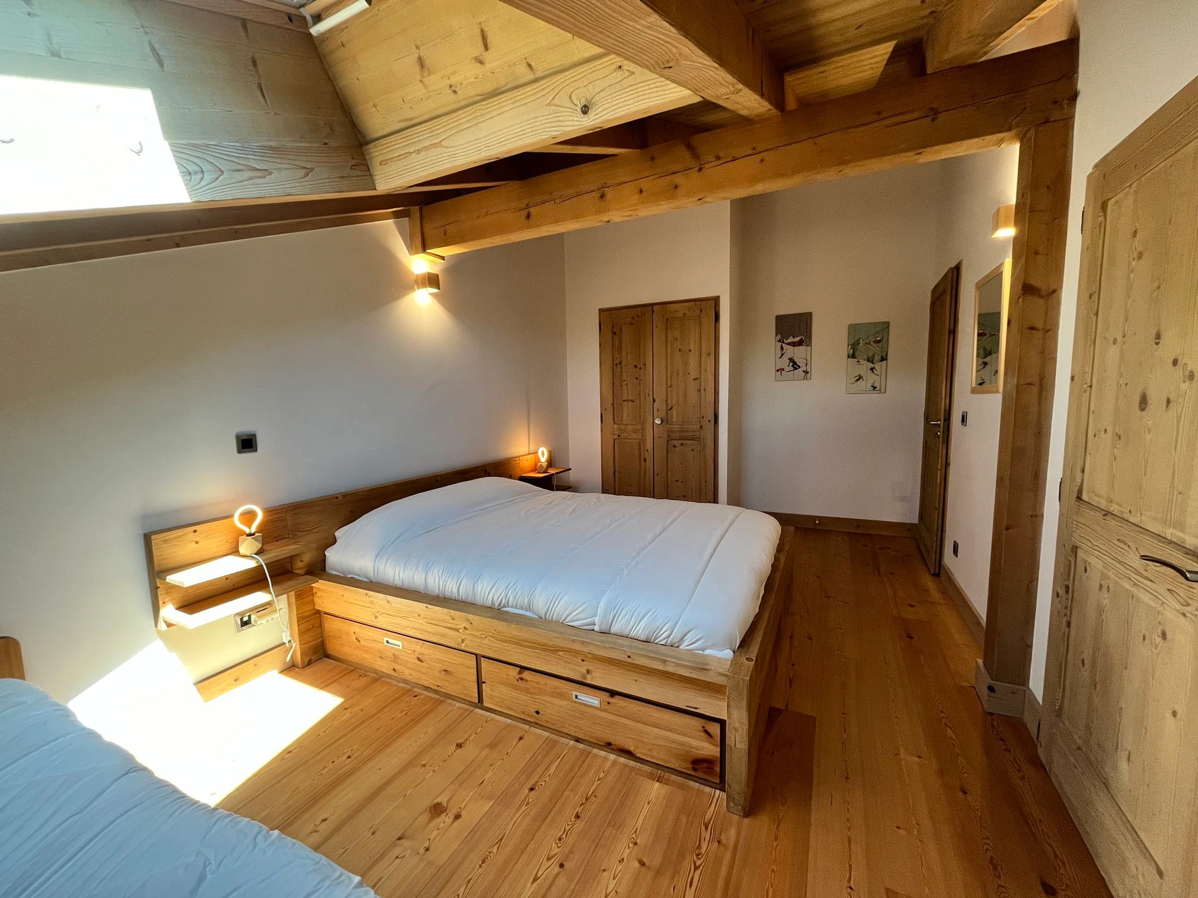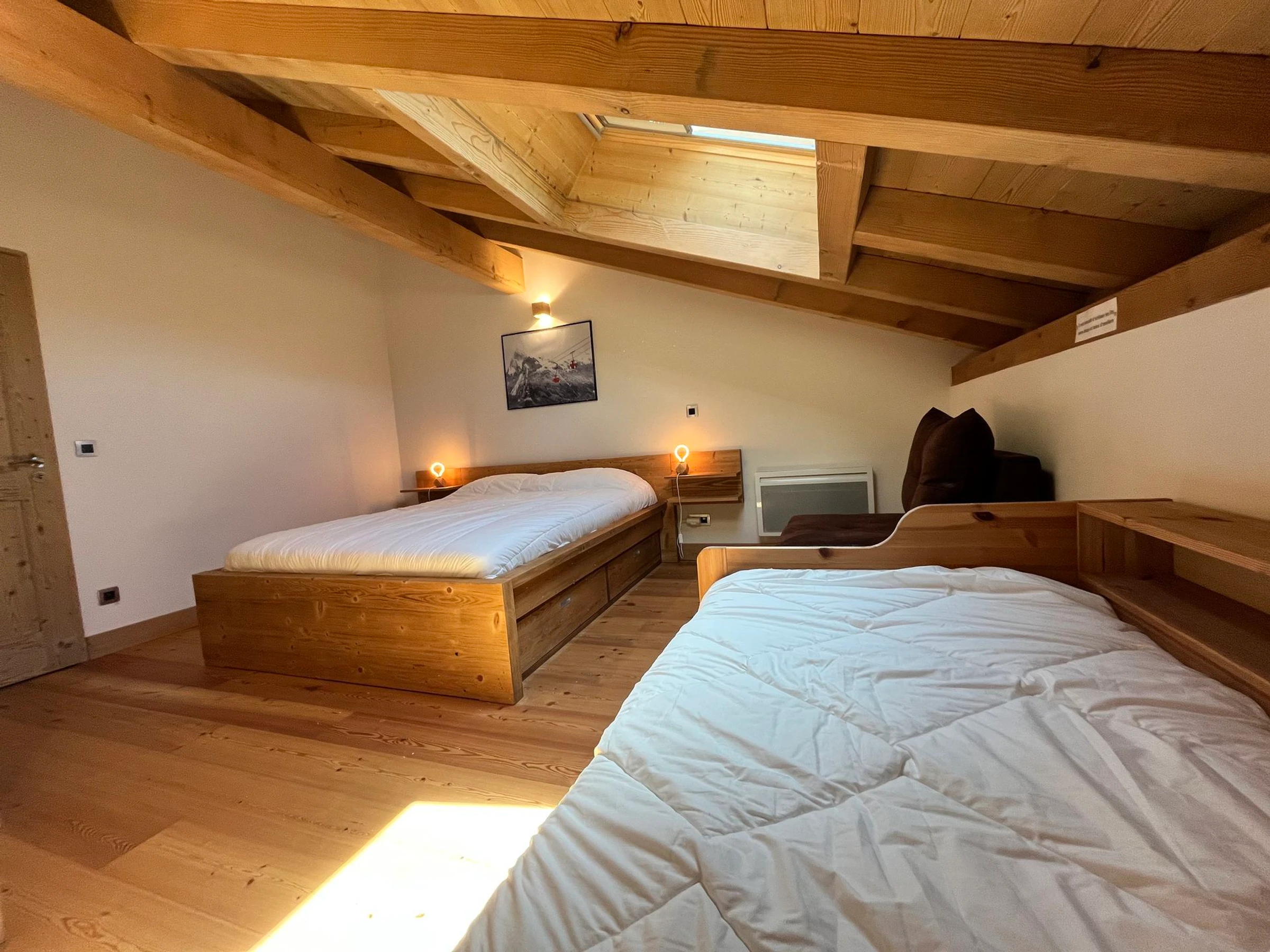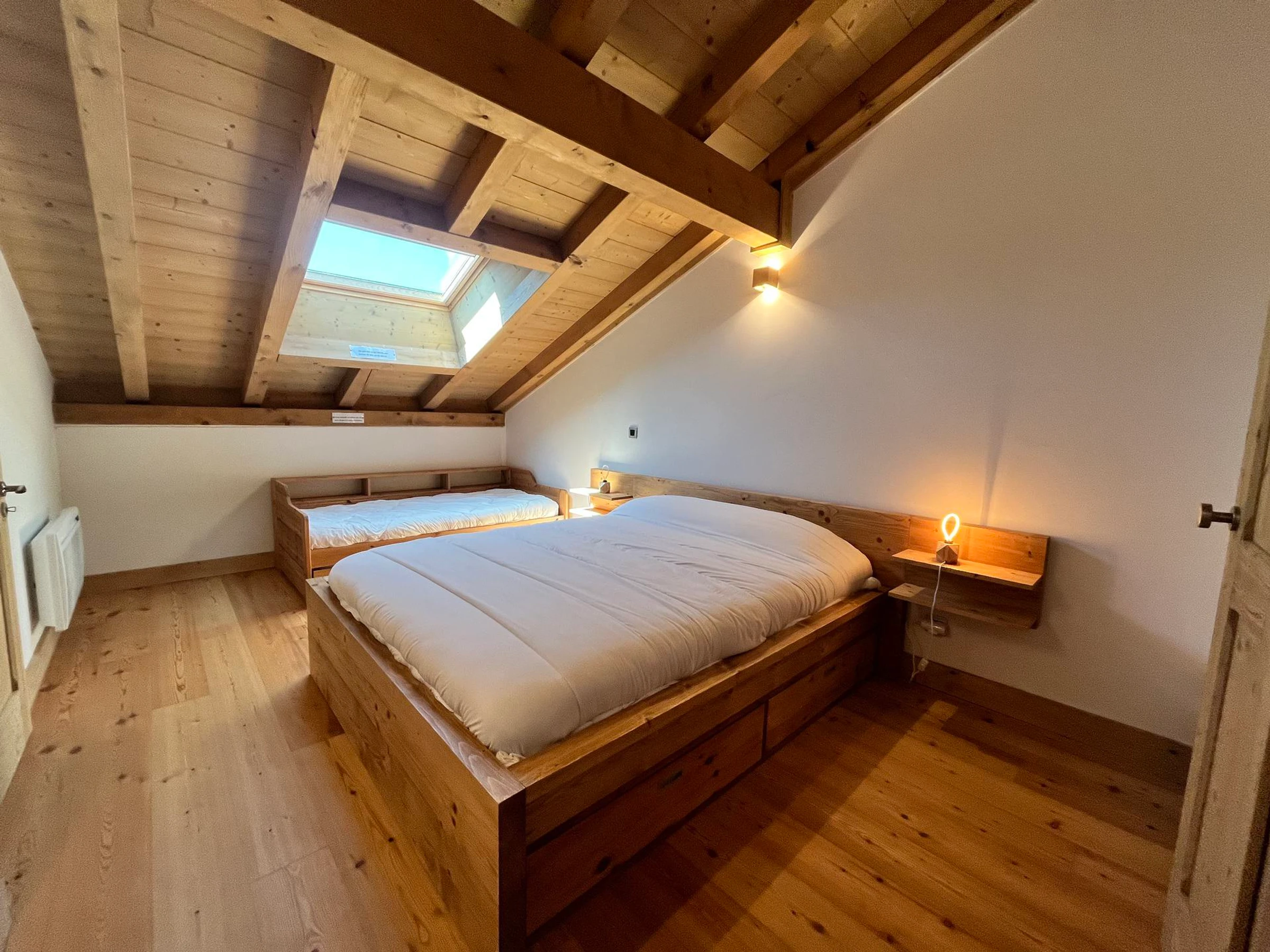 2 chambres avec un lit double (160) et un lit 1 place (90).
