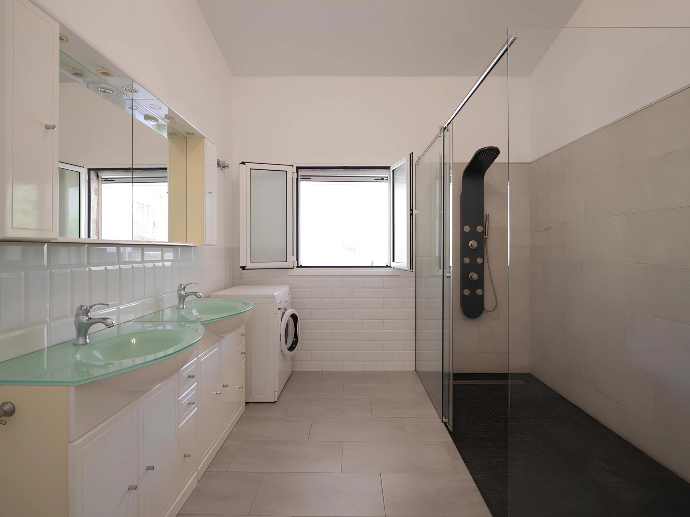Elle dispose de jardin, mobilier de jardin, 30 m² de terrasse, lave-linge, fer à repasser, accès internet (wifi), sèche-cheveux, piscine privée, garage même bâtiment, 3 ventilateurs, moustiquaires dans la chambre, 1 Télévision.