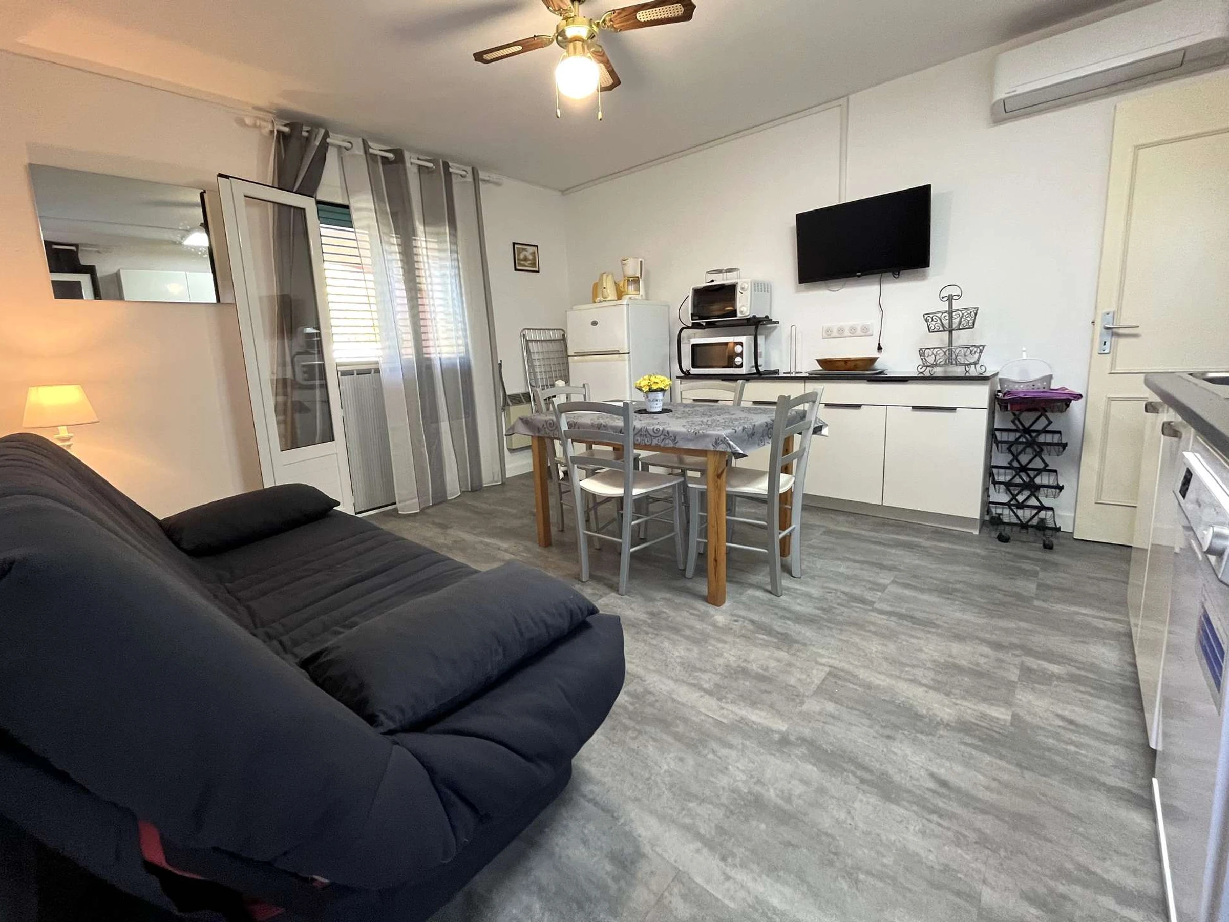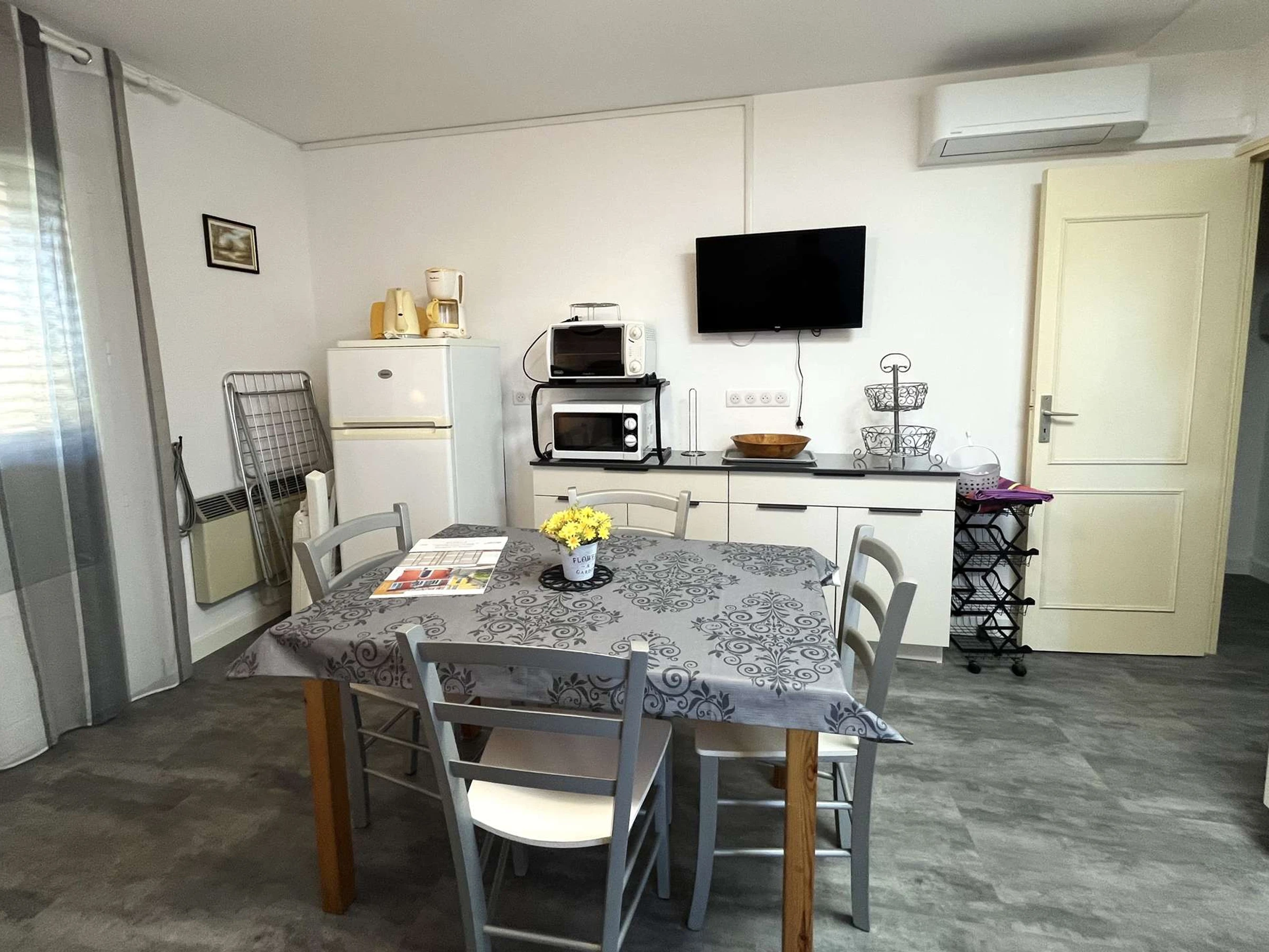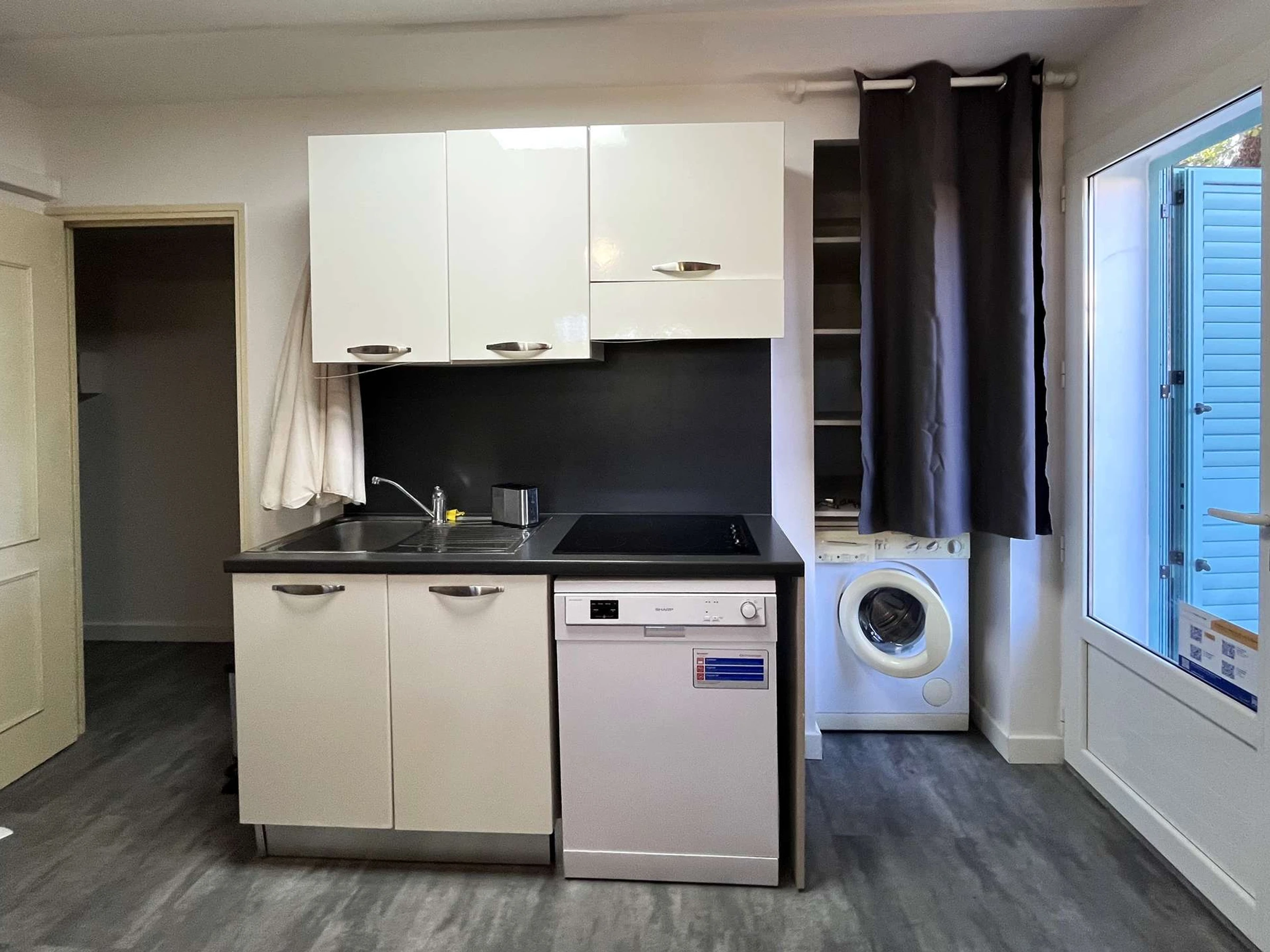 Nous vous proposons un séjour avec coin cuisine équipé ( lave-linge, lave-vaisselle, frigo, micro-ondes) TV et canapé clic-clac, une chambre familiale avec 2 lits superposés ( 4 couchages), une salle d'eau avec douche et WC, une terrasse à l'abri des regards avec barbecue pour des moments à partager!
