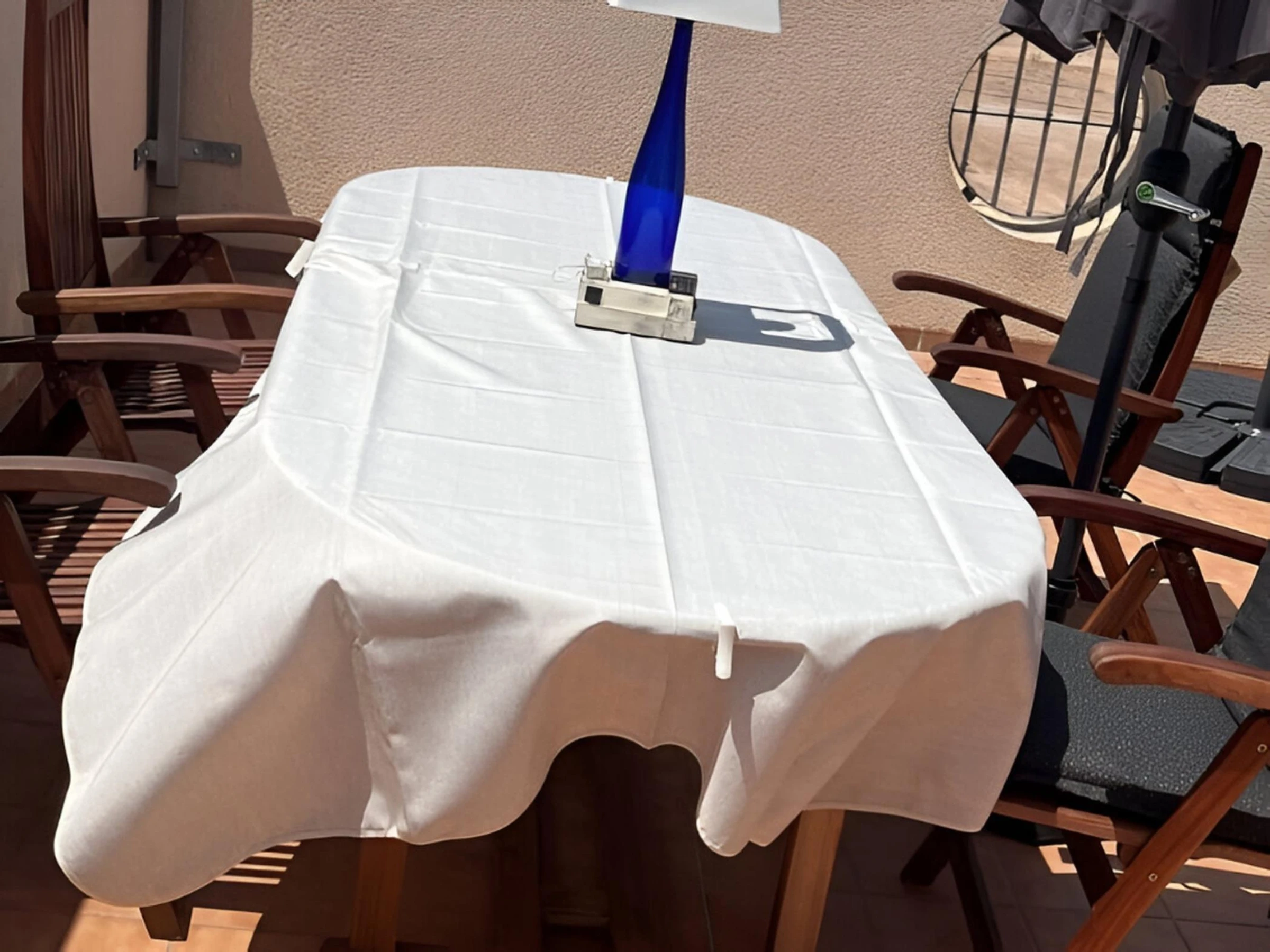 Cuisine : grille-pain, bouilloire, micro-ondes, machine à café à capsules, fer à repasser, batterie de cuisine et vaisselle complète (casseroles, casseroles, assiettes, verres, verres à vin, couverts), boîtes alimentaires en plastique et sel marin Mar Menor. Eau et capsules de café fournies à l’arrivée.