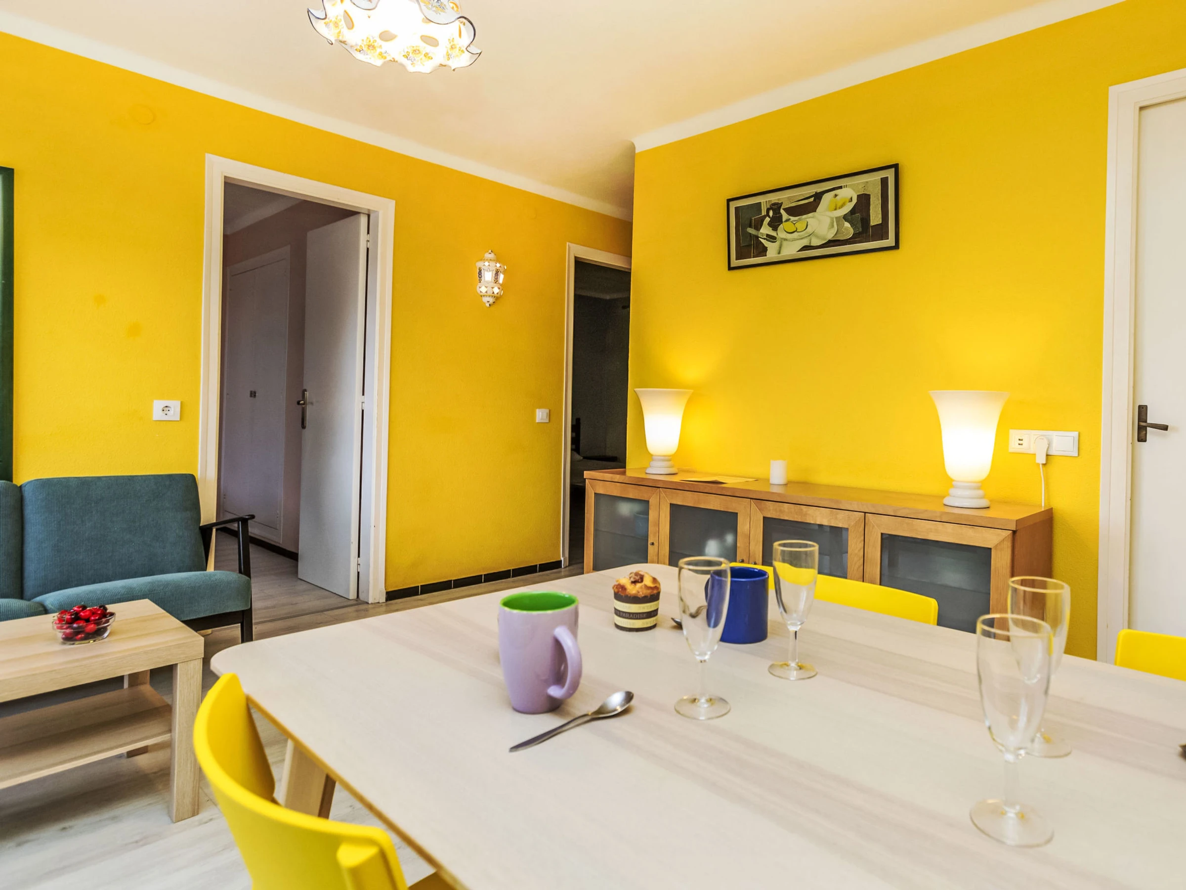 "Rosita", apt 3 pièces 55 m2 au 4ème étage. Aménagement fonctionnel: séjour/salle à manger avec TV (écran plat). Sortie sur la terrasse. 1 chambre avec 1 grand-lit (140 cm, longueur 190 cm). Sortie sur la terrasse. 1 chambre avec 2 lits (90 cm, longueur 180 cm). Cuisine (lave-vaisselle, 3 plaques à induction, grille-pain, bouilloire électrique, micro-ondes, cafetière électrique). Baignoire sabot/WC, WC séparé. Pas de chauffage. Terrasse. Meubles de terrasse. A disposition: lave-linge, chaise haute pour enfant, lit bébé jusqu'à 2 ans, sèche-cheveux. Internet (Connexion WIFI, gratuit). Place de parking No 11 no cubierto. Veuillez noter: logement non-fumeur. [hidden] // Reg. Nr.: ESFCTU00001701500032338700000000000000000[hidden]2