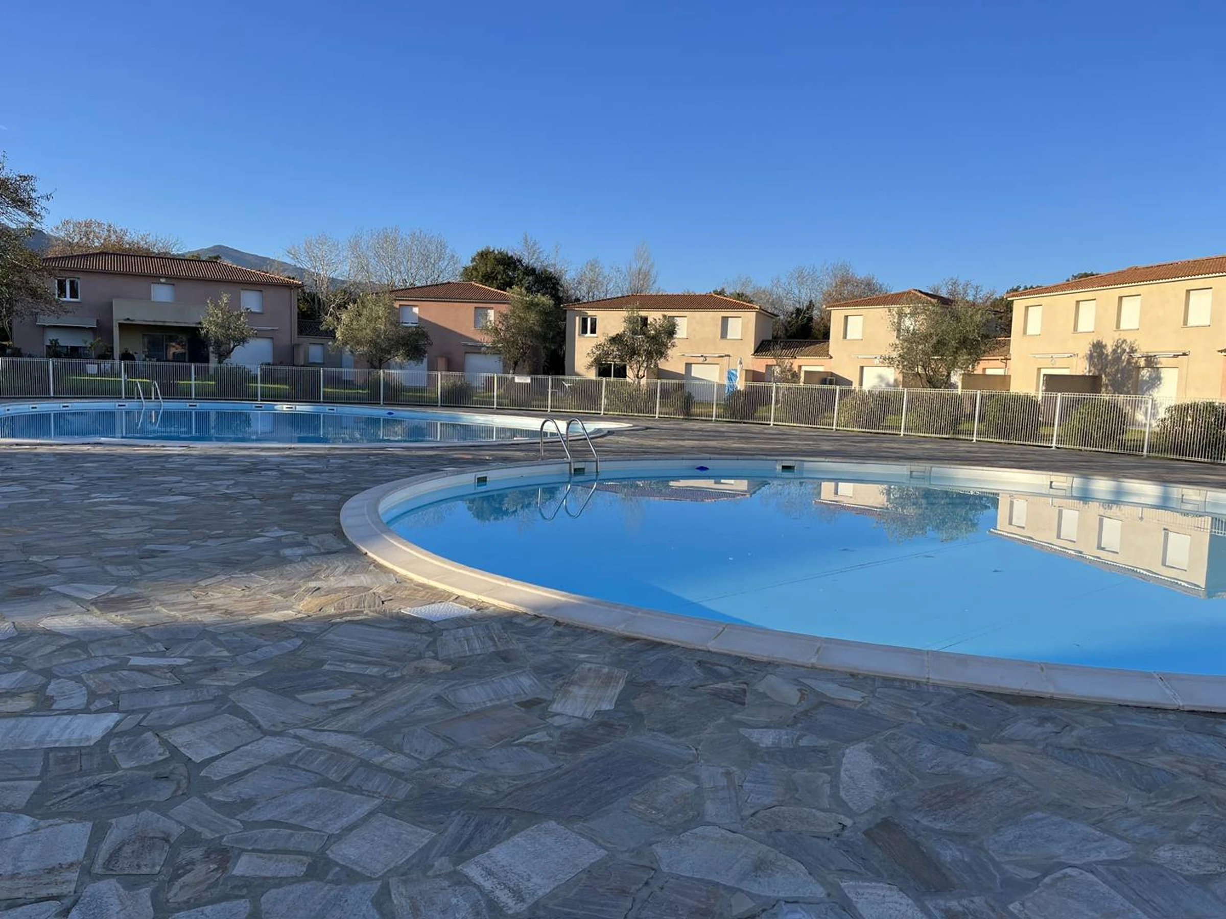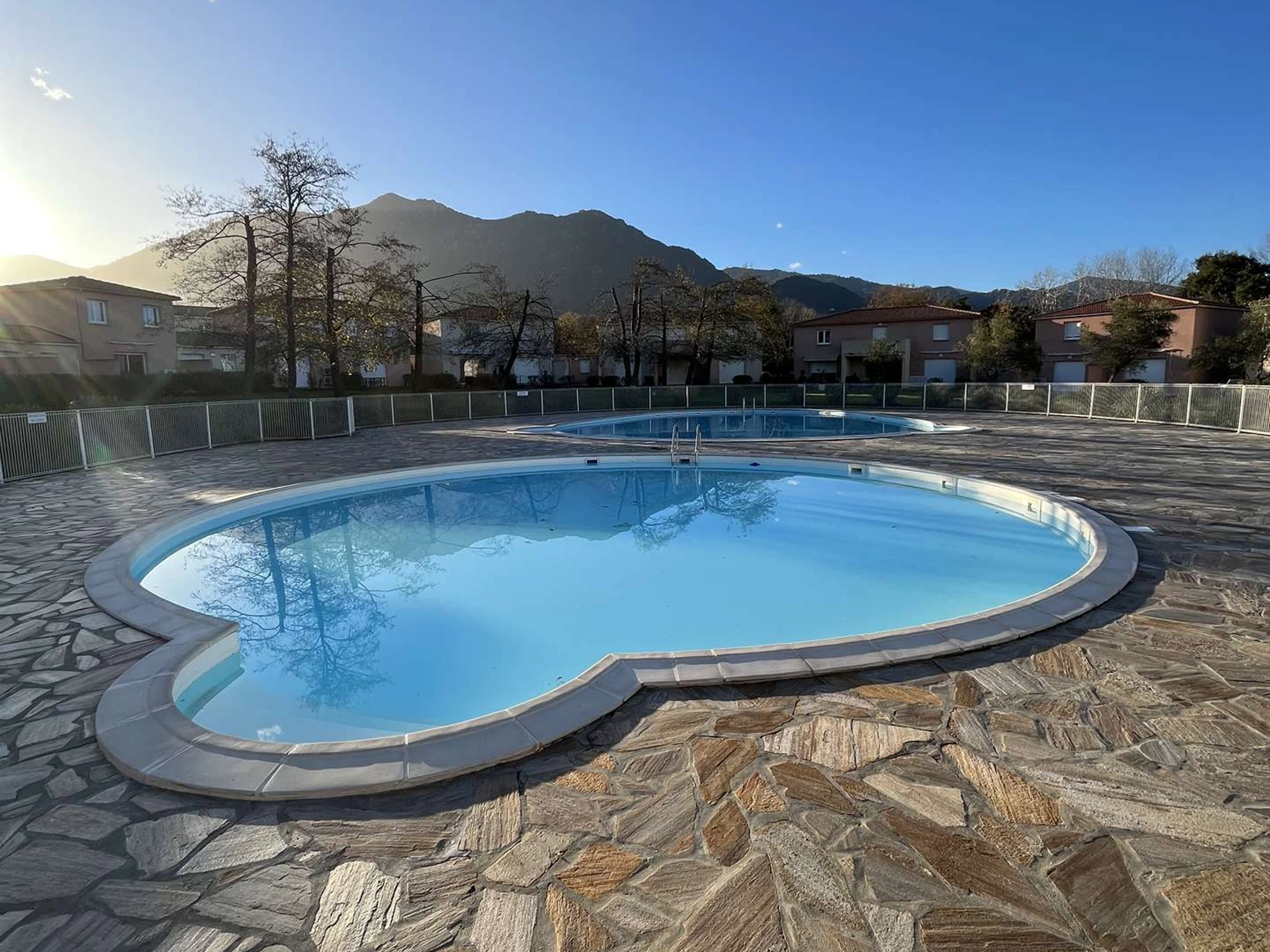 Jolie Mini villa climatisée avec vue piscine et jardin, dans une résidence de vacances à SANTA MARIA POGGIO.