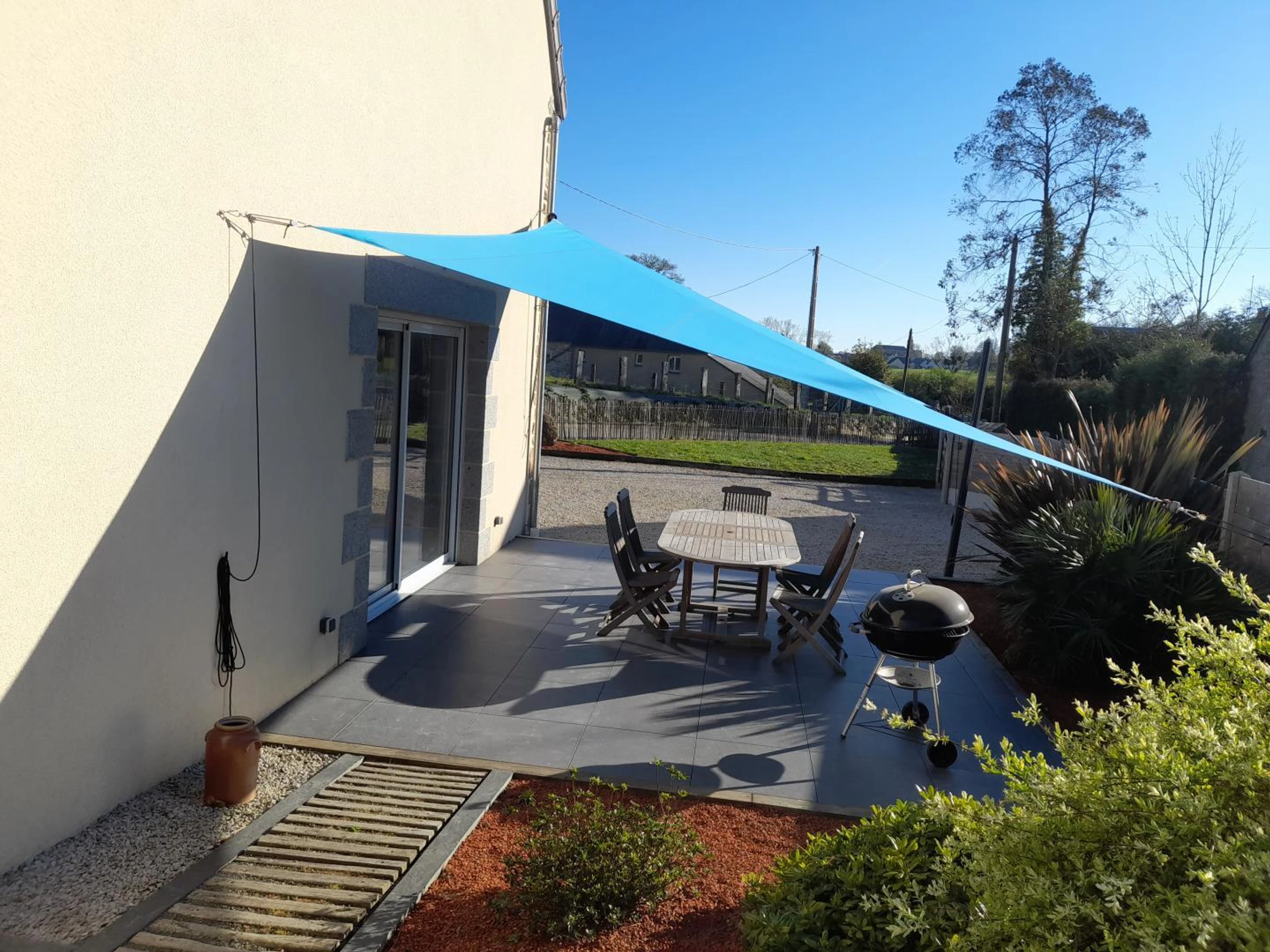 Maison indépendante. Séjour avec poêle à granulés (1er sac offert) (TV, WIFI). Cuisine ouverte sur séjour (four, lave-vaisselle, micro-ondes, réfrigérateur). Débarras avec wc. A l'étage, salle d'eau avec wc,lave-linge. Chambre 1 (1 lit 160x200 et 2 lits 90x190 gigognes), chambre 2 (2 lits 80x200 jumelés). Équipement bébé sur demande. Draps fournis . Linge de toilette en location. Service ménage en supplément . Chauffage électrique en supplément. Terrain clos privé. Terrasse. Salon de jardin. Transats. Barbecue. 2 vélos à disposition. Parking. Entre Avranches et le port de Granville, cette maison nichée au fond d'une impasse paisible sera parfaite pour vos vacances. Confortable et résolument moderne avec notamment son bel escalier bois et métal, ce gîte est parfaitement situé. Vous pourrez partir en randonnée depuis le gîte ou emprunter l'agréable chemin qui serpente jusqu'au hameau pour rejoindre les commerces du village de Sartilly. Entre la terrasse et l'espace repas, la magnifique cuisine et son îlot central promet de beaux moments de partage en famille! Vincent et Nathalie résident dans la propriété voisine et auront plaisir à vous faire découvrir leur mini-ferme sur place (poules d'ornement, moutons, chèvres, paon) pour le bonheur des enfants.