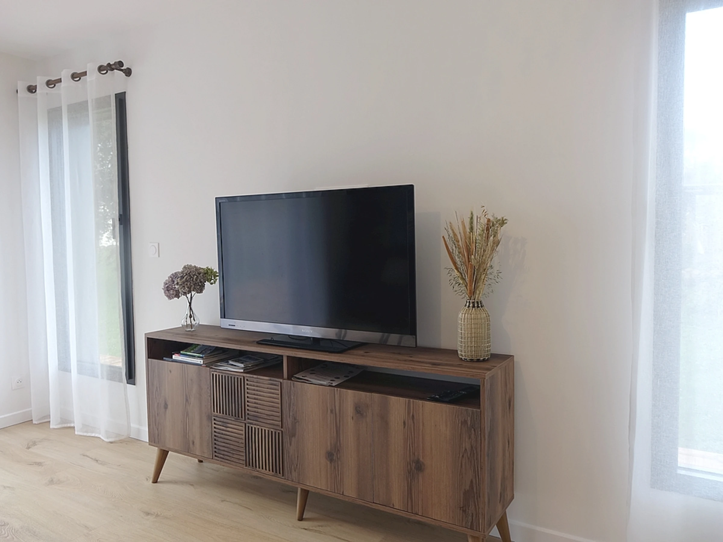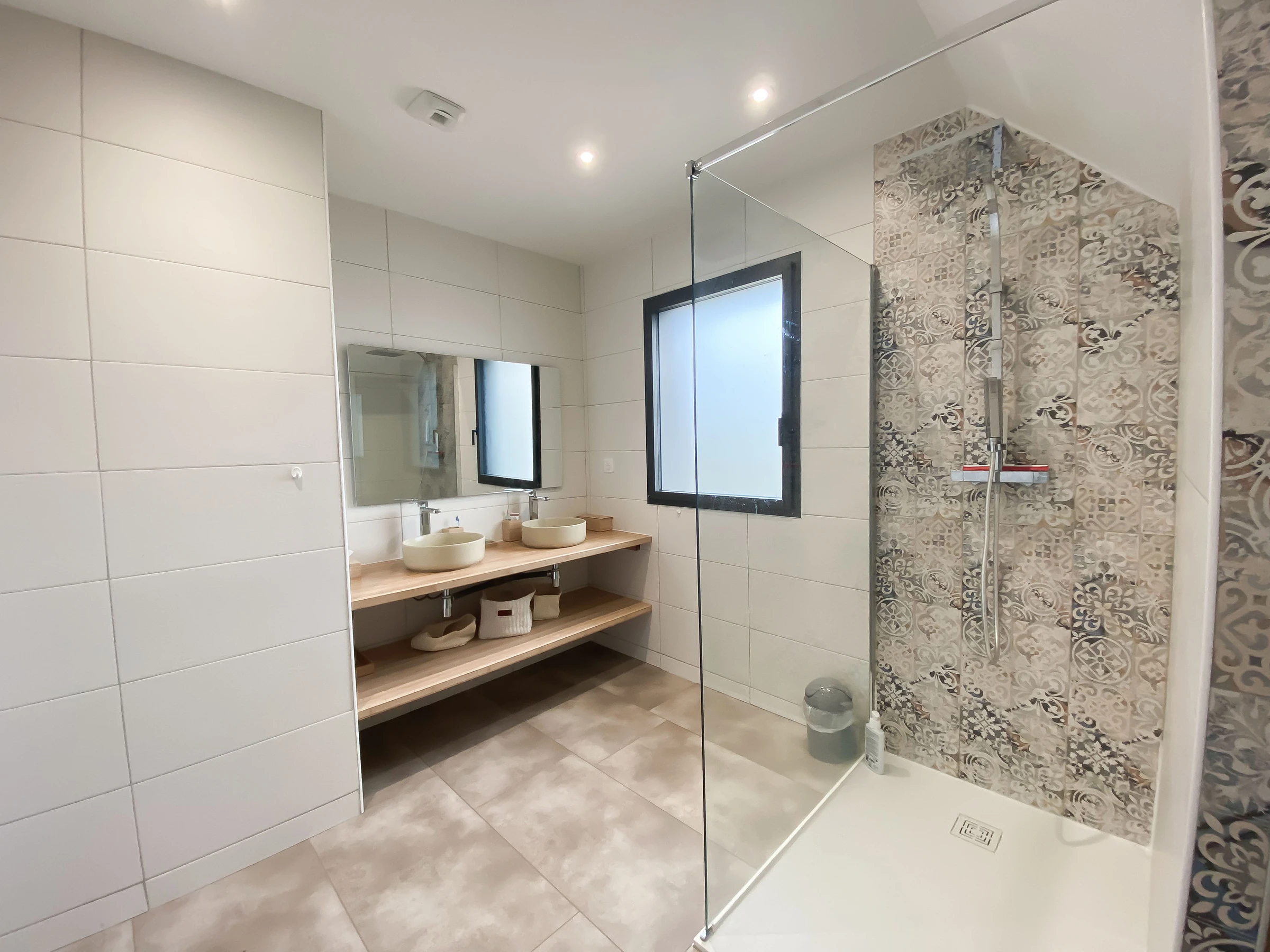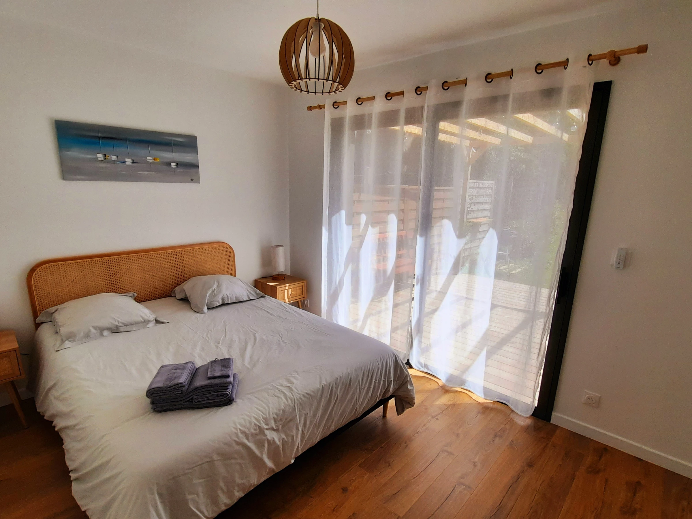 À l'étage vous trouverez trois chambres avec rangements, une première avec lit double (160), deux chambres avec deux lits simples (90) chacune, une salle d'eau avec équipement bébé et un WC indépendant. À l'extérieur vous pourrez profiter du grand jardin fleuri, des terrasses et du patio. Places de stationnement sécurisées par caméra et portail. Linge inclus (Draps et Serviettes).