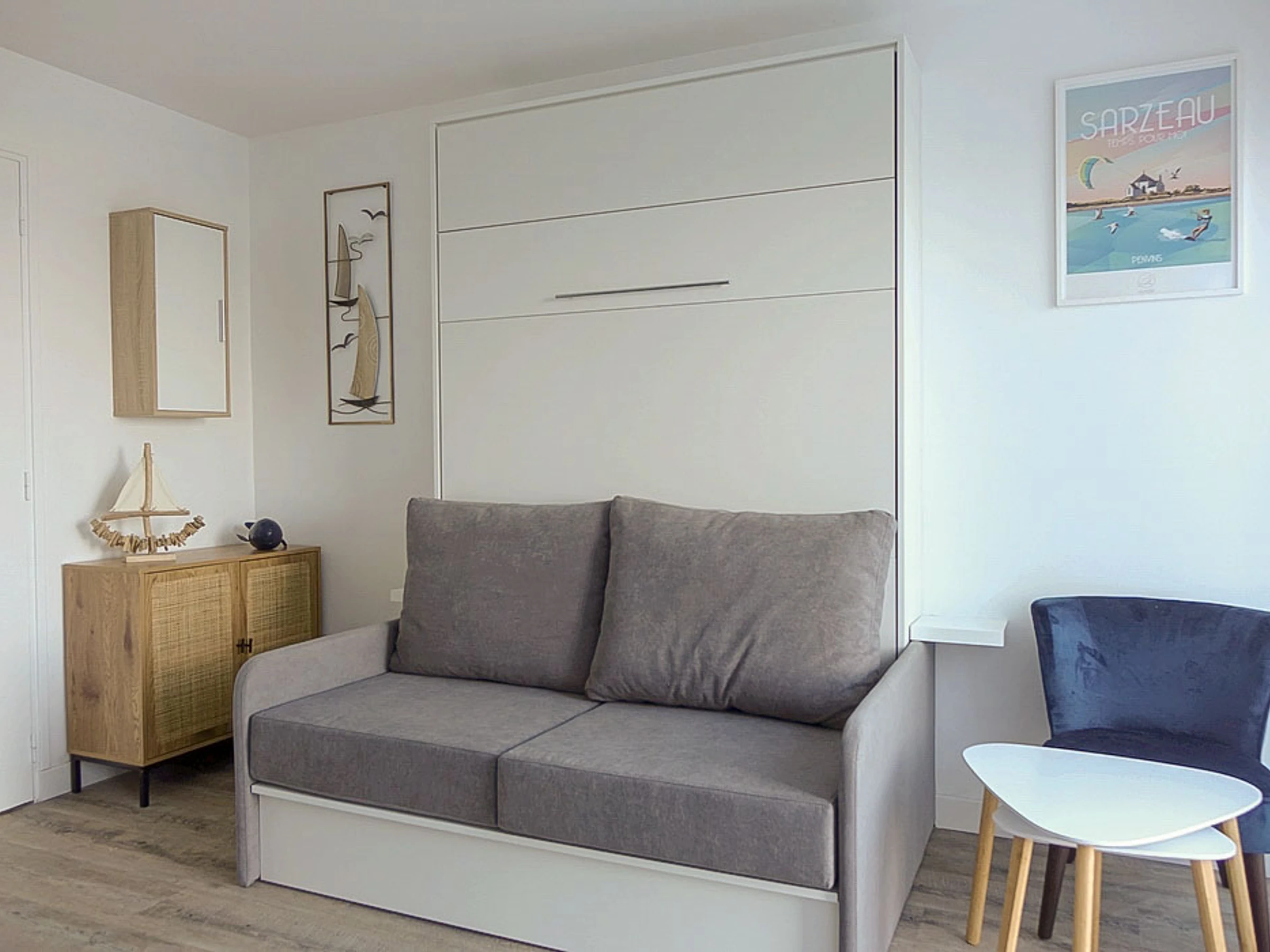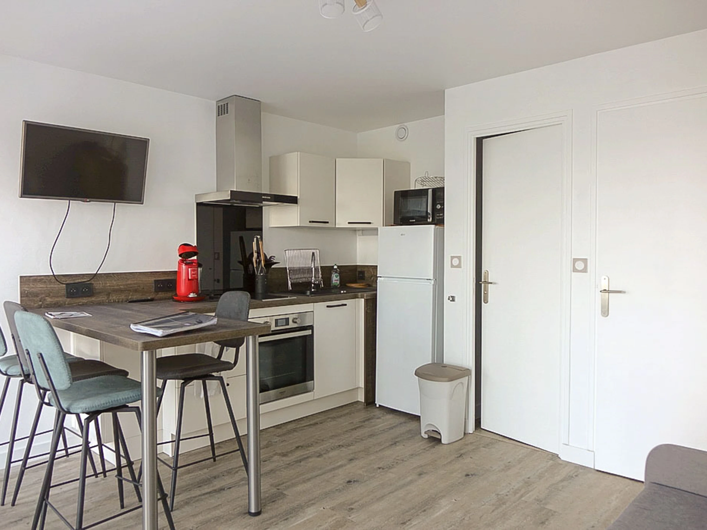 Salon-séjour avec cuisine ouverte, aménagée et équipée. (Lit escamotable 140*190)