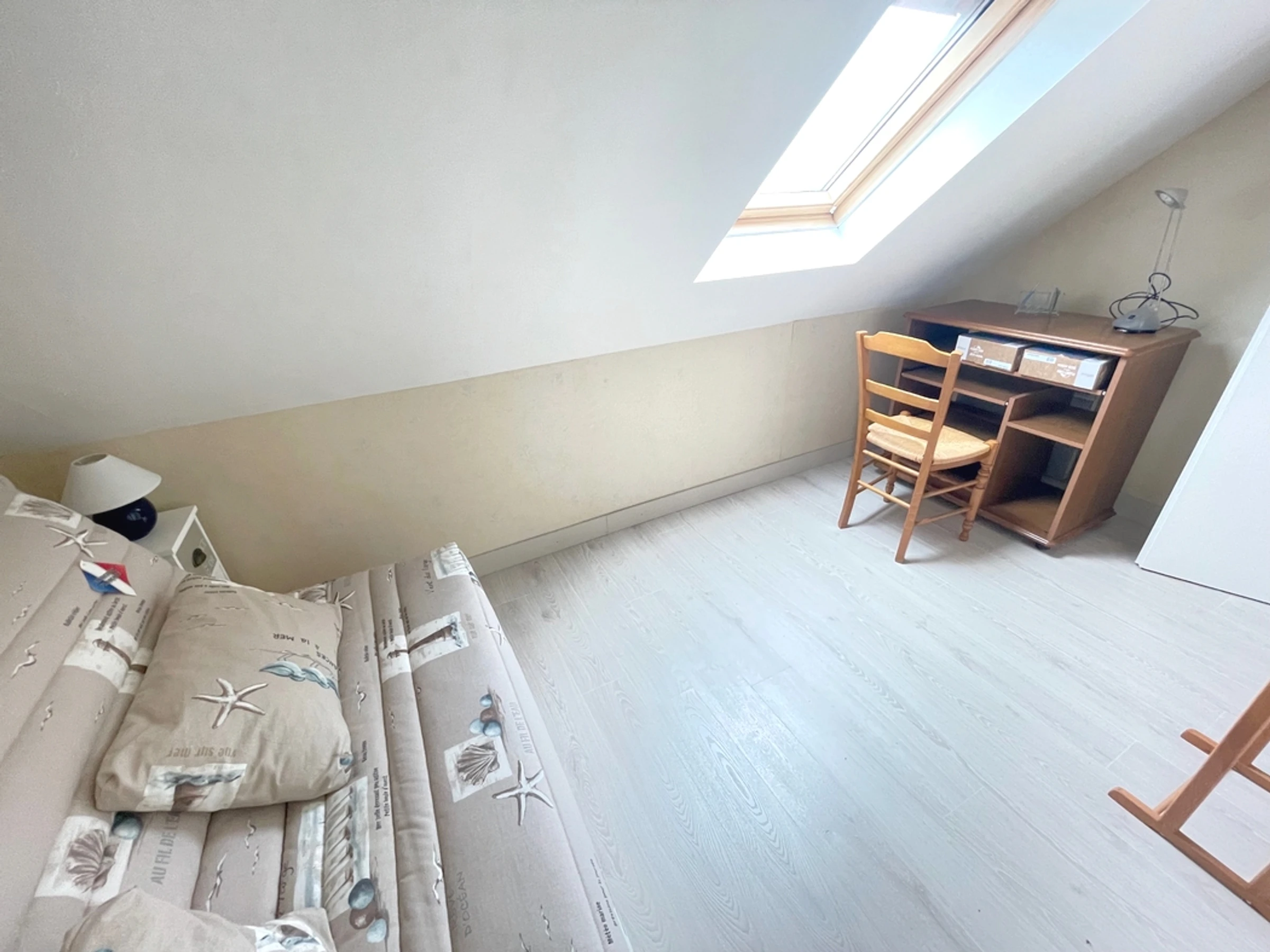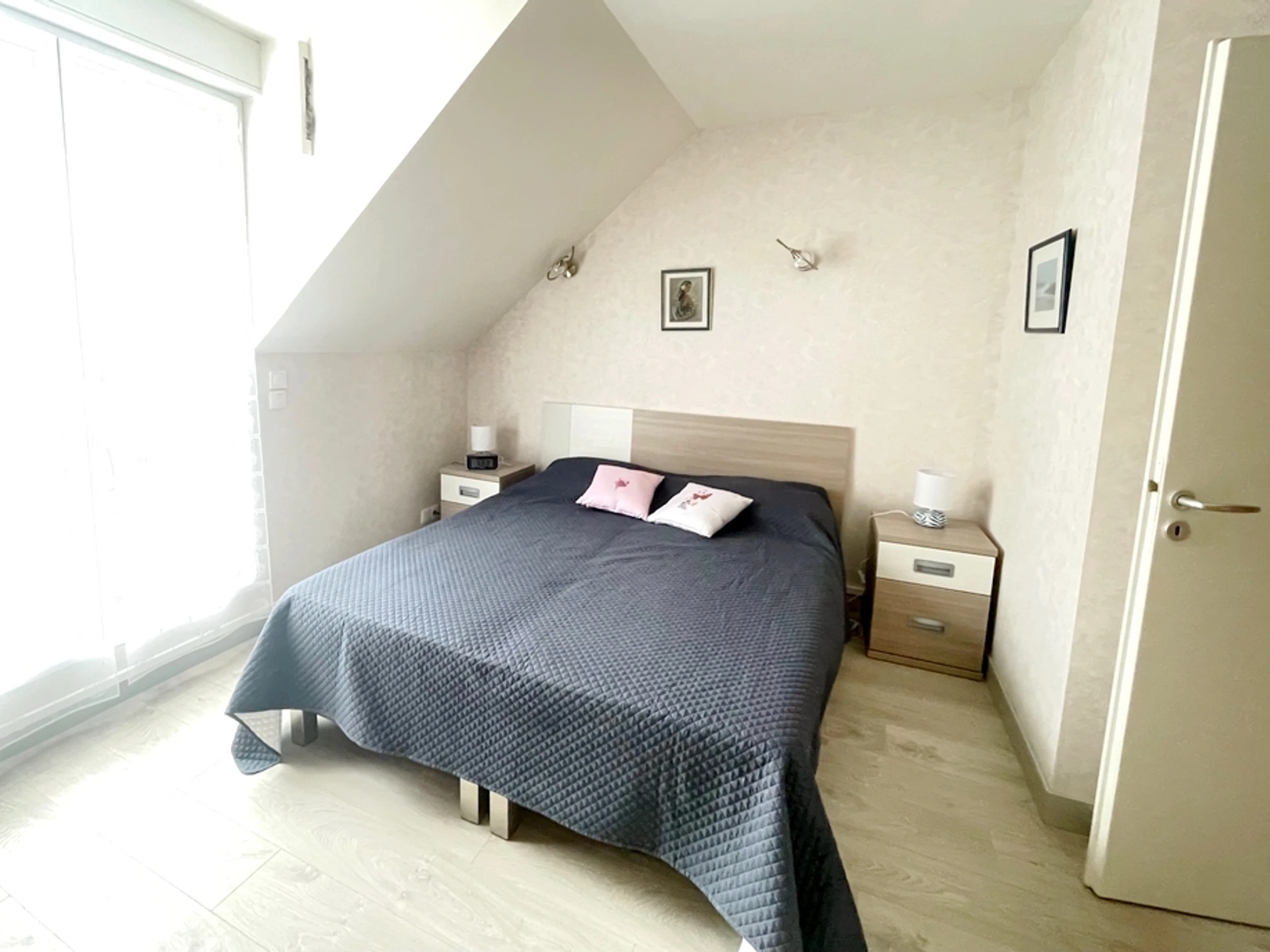 Proximité immédiate du centre de SARZEAU auquel vous pourrez accéder à pieds aux nombreux commerces, grandes surfaces à proximité, grand marché tous les jeudi. Cet appartement vous propose une pièce de vie ouverte sur un balcon, une cuisine indépendante donnant sur balcon, une chambre avec un lit double (2x 80*190), un WC et une salle d'eau. En étage deux chambres, une première avec lit double (2x80*190), une seconde avec un BZ 2 personnes (140/190), une salle d'eau avec WC. Garage double en sous-sol.