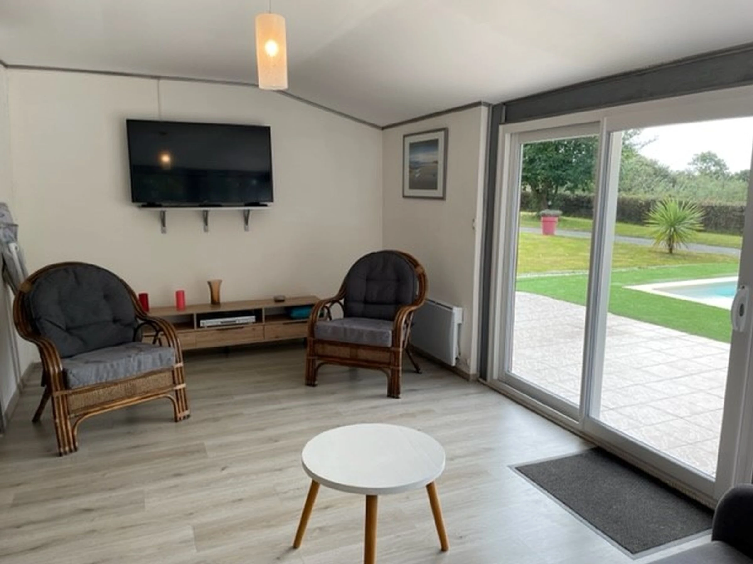 Proche des sentiers qui mènent à la plage et au château de Suscinio, maison comprenant au rez-de-chaussée : entrée, séjour avec TV et cheminée à insert, salon avec TV, coin cuisine équipé et aménagé (micro-ondes, four, lave-vaisselle, plaque induction avec 3 feux, cafetière électrique à filtres), arrière-cuisine (réfrigérateur avec compartiment congélateur à tiroirs, lave-linge) et toilettes. 1ère chambre (1 lit 140) avec placard (penderie et étagères), 2ème chambre (1 lit 140) avec placard (penderie et étagères), salle de douche.