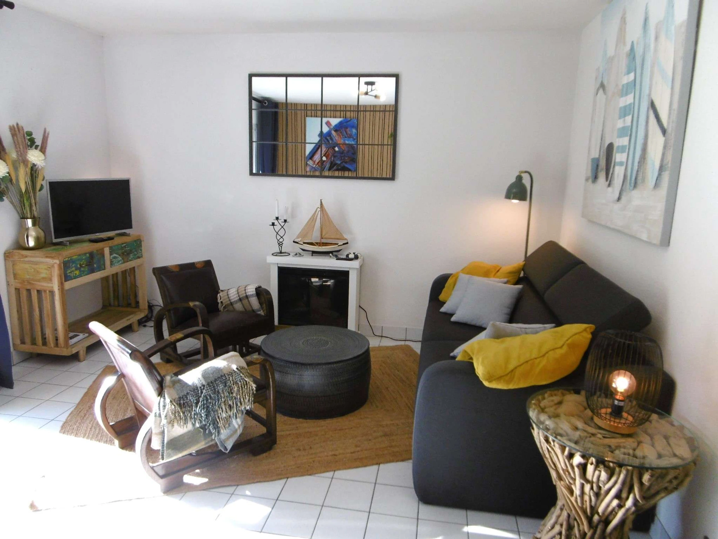 - Un séjour avec un canapé-lit type Rapido en 160