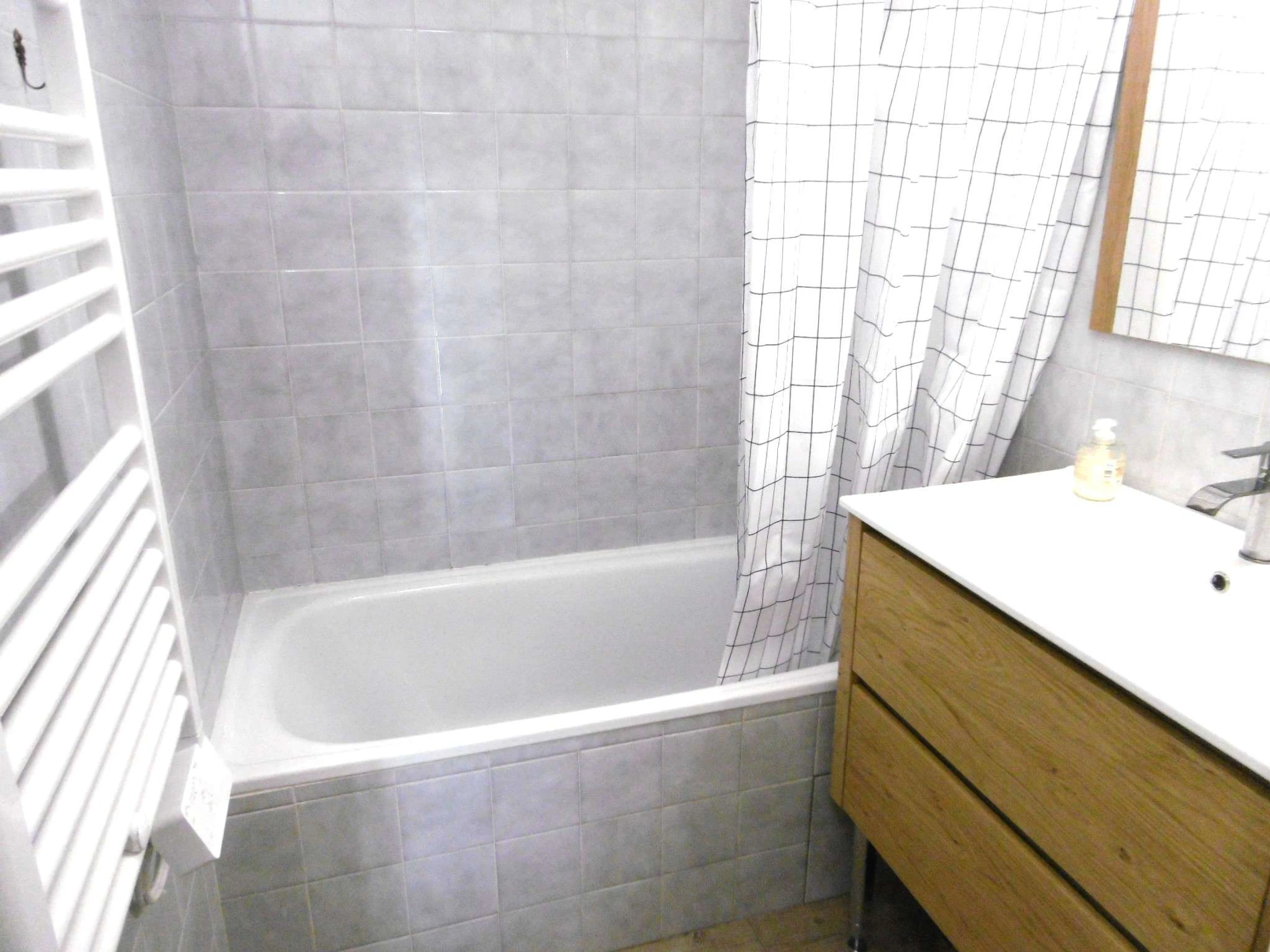 - Une salle de bain avec baignoire