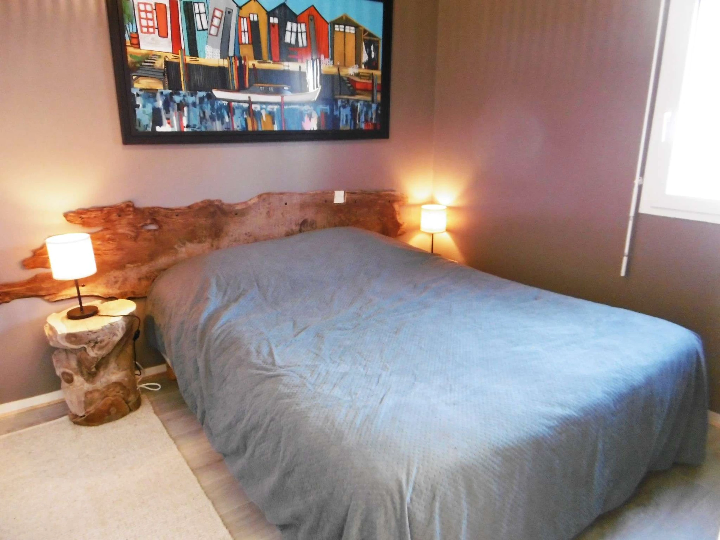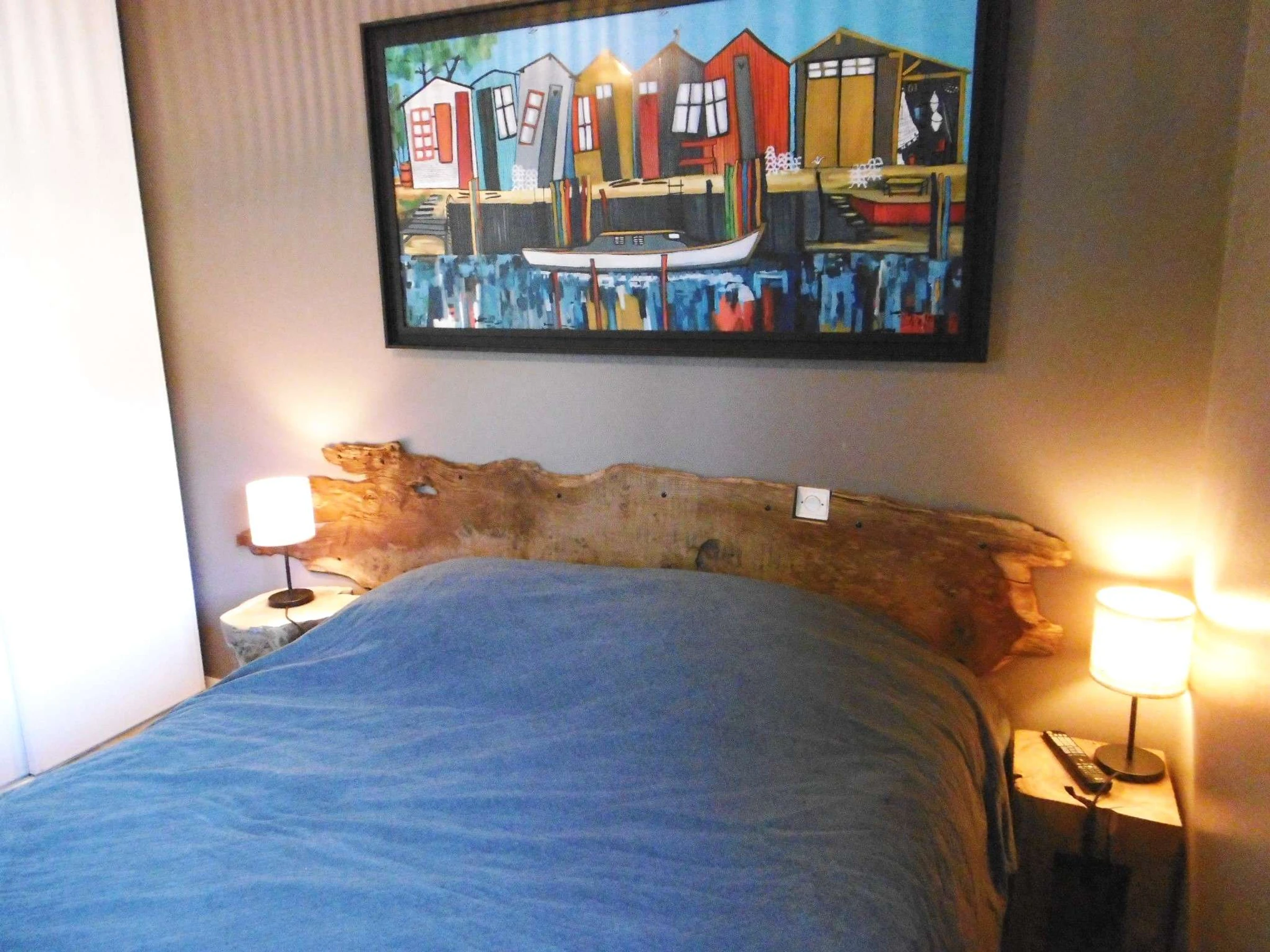 - Une chambre avec un lit double en 160 avec couette et des rangements