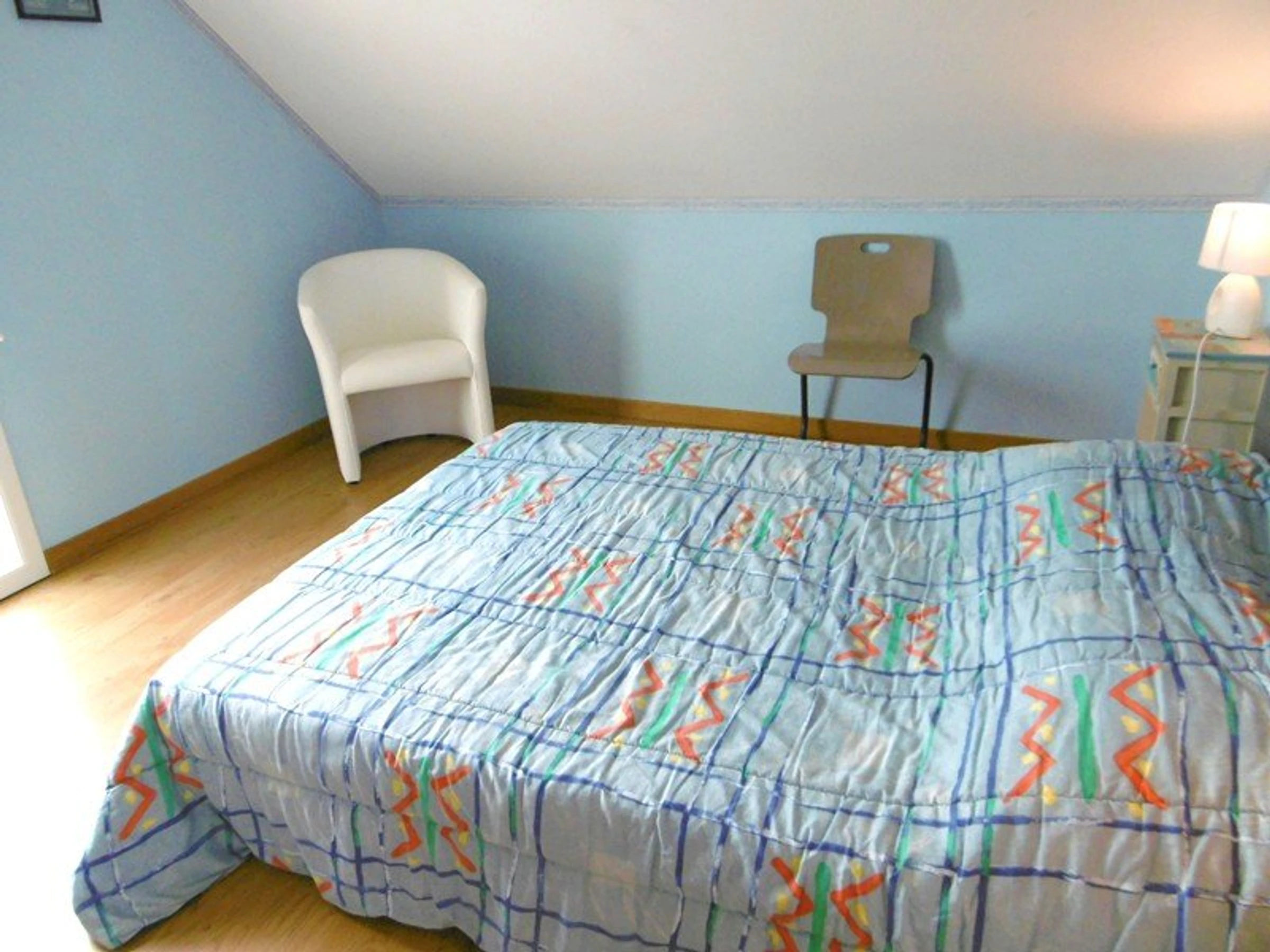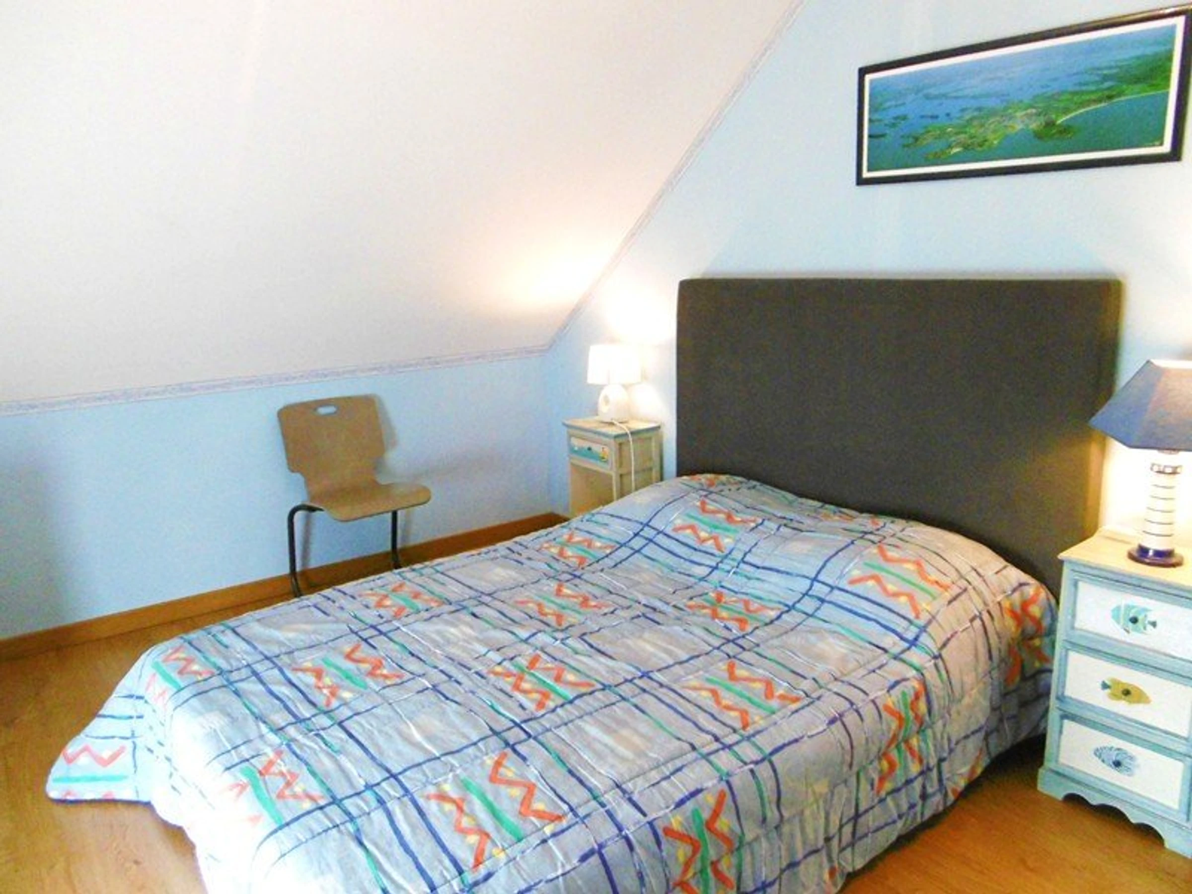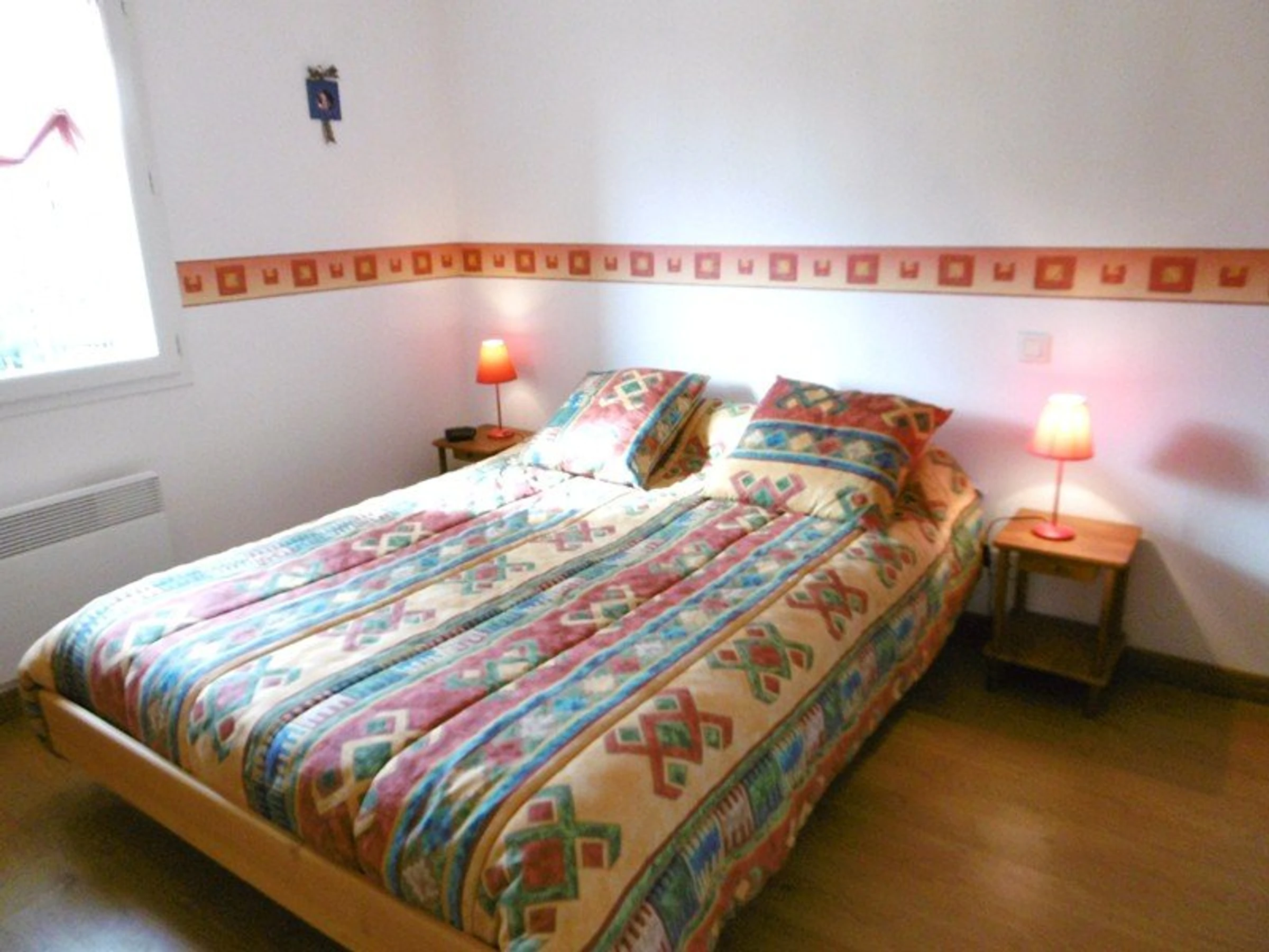 - Chambre 2 : 1 lit 140 cm avec une penderie