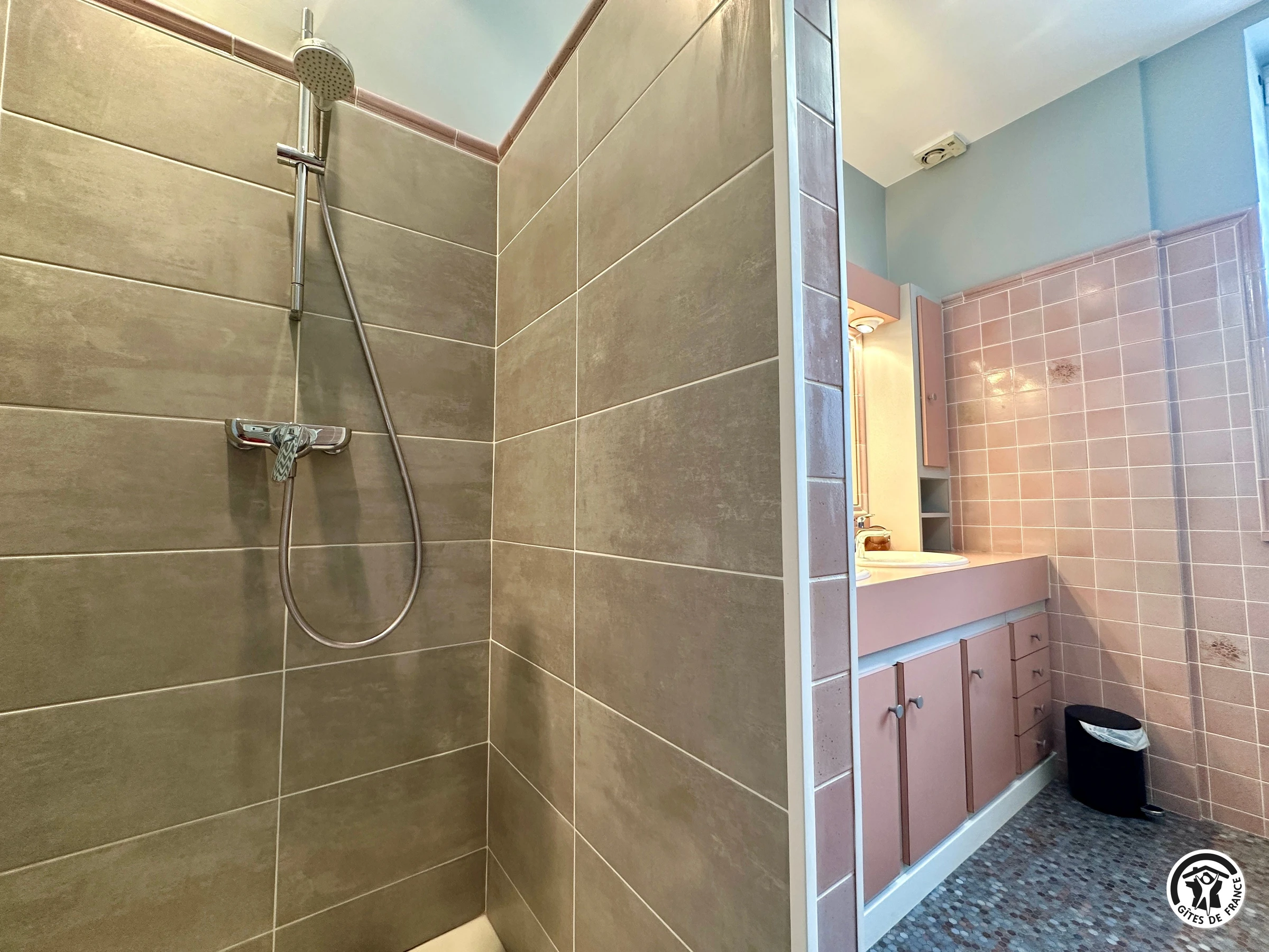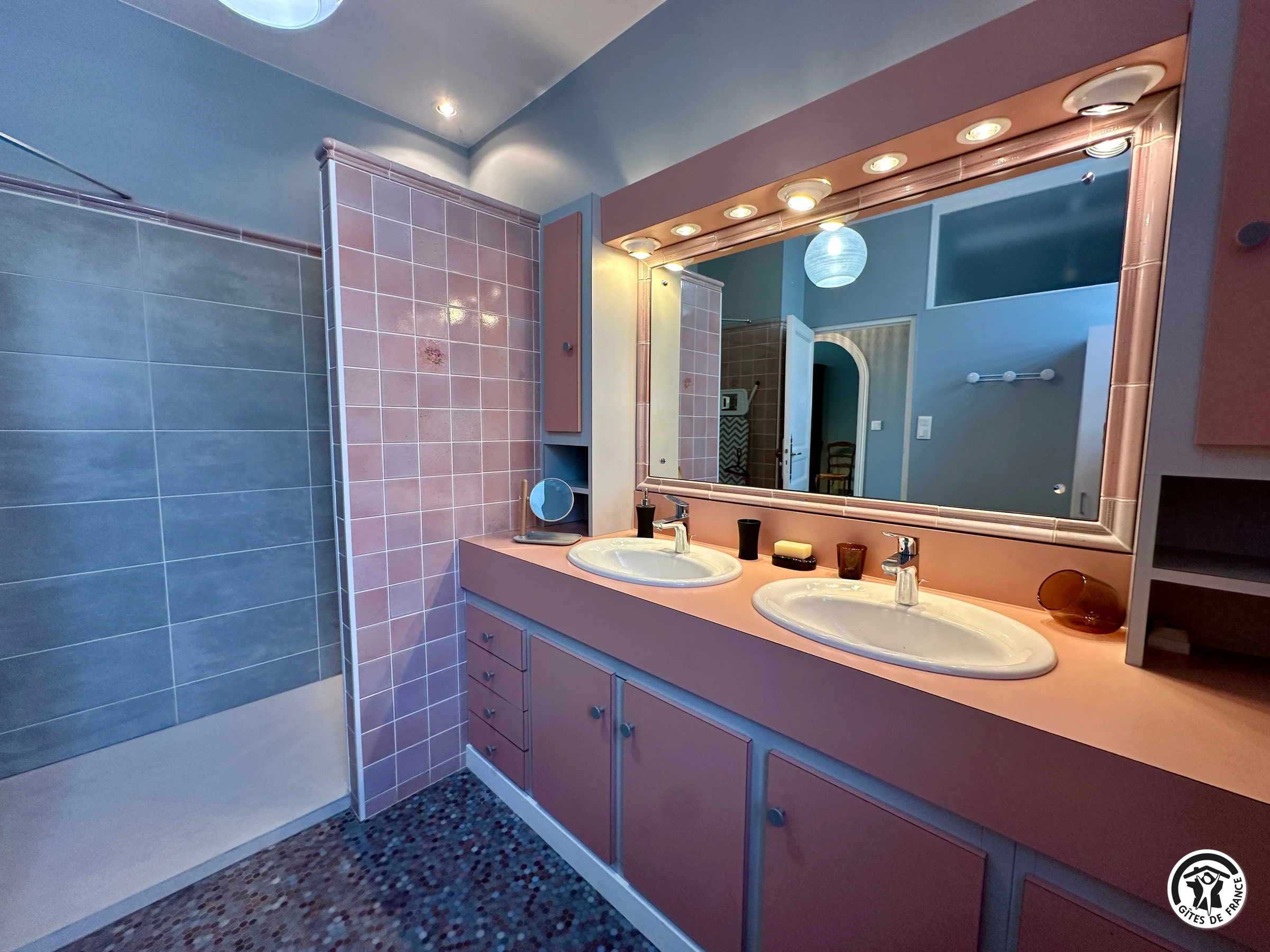 Le coin nuit est composé d’une chambre avec un lit double (140 cm), une salle d’eau avec une grande douche à l’italienne et double vasque et d’un WC indépendant.