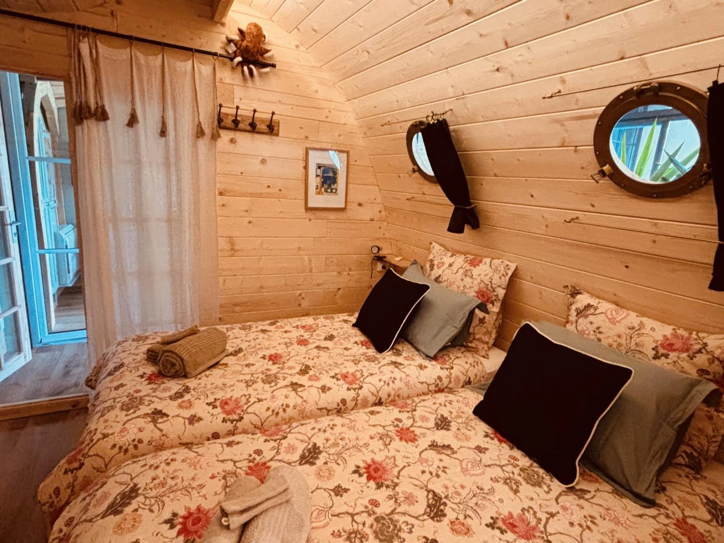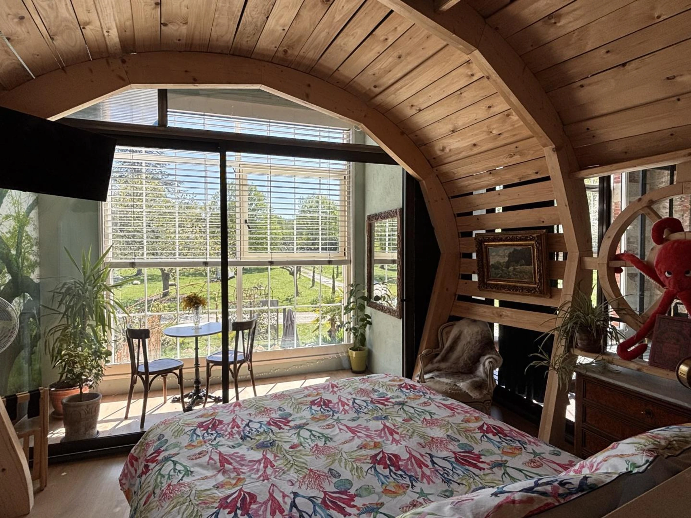 Étage : la chambre Nautilus, avec 1lit 160x200, vous plonge dans l'univers de Jules Verne, allongés dans le lit, vous êtes enveloppés par une vue majestueuse sur le jardin, telle une plongée immersive en pleine nature, accompagnée de sa salle d'eau avec WC, une 2è chambre dispose de 2lits 90x200 et d'un cabinet de toilettes (WC privatifs+ lavabo).