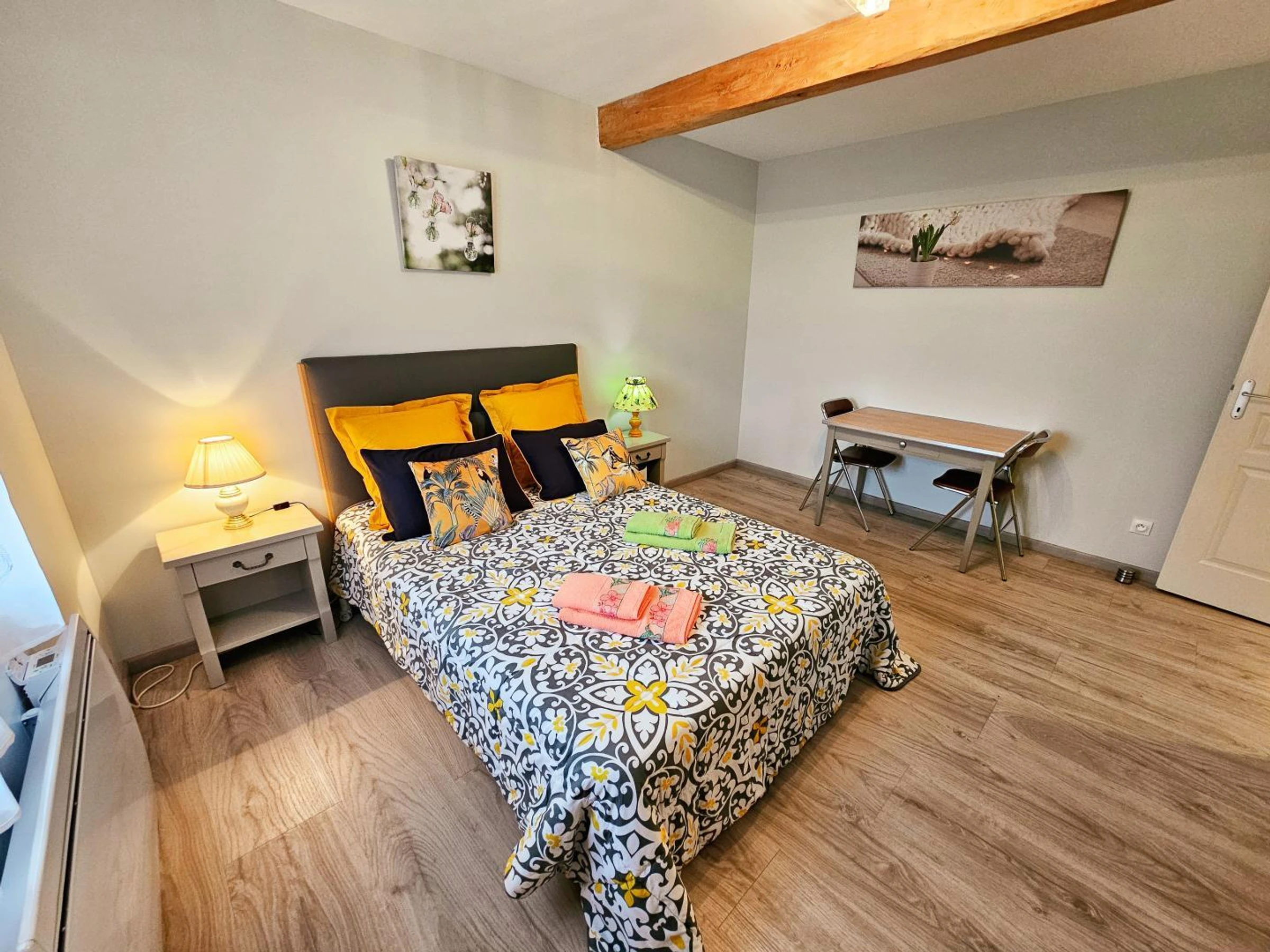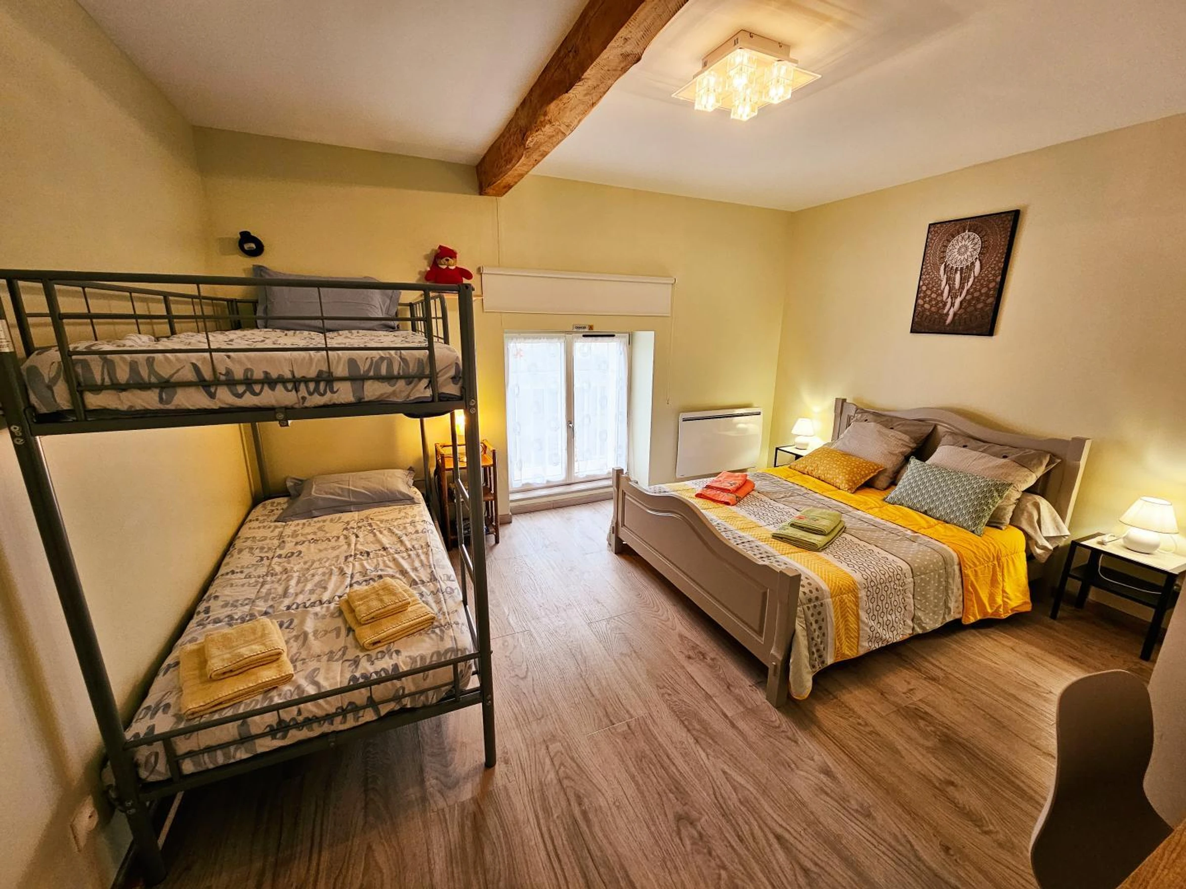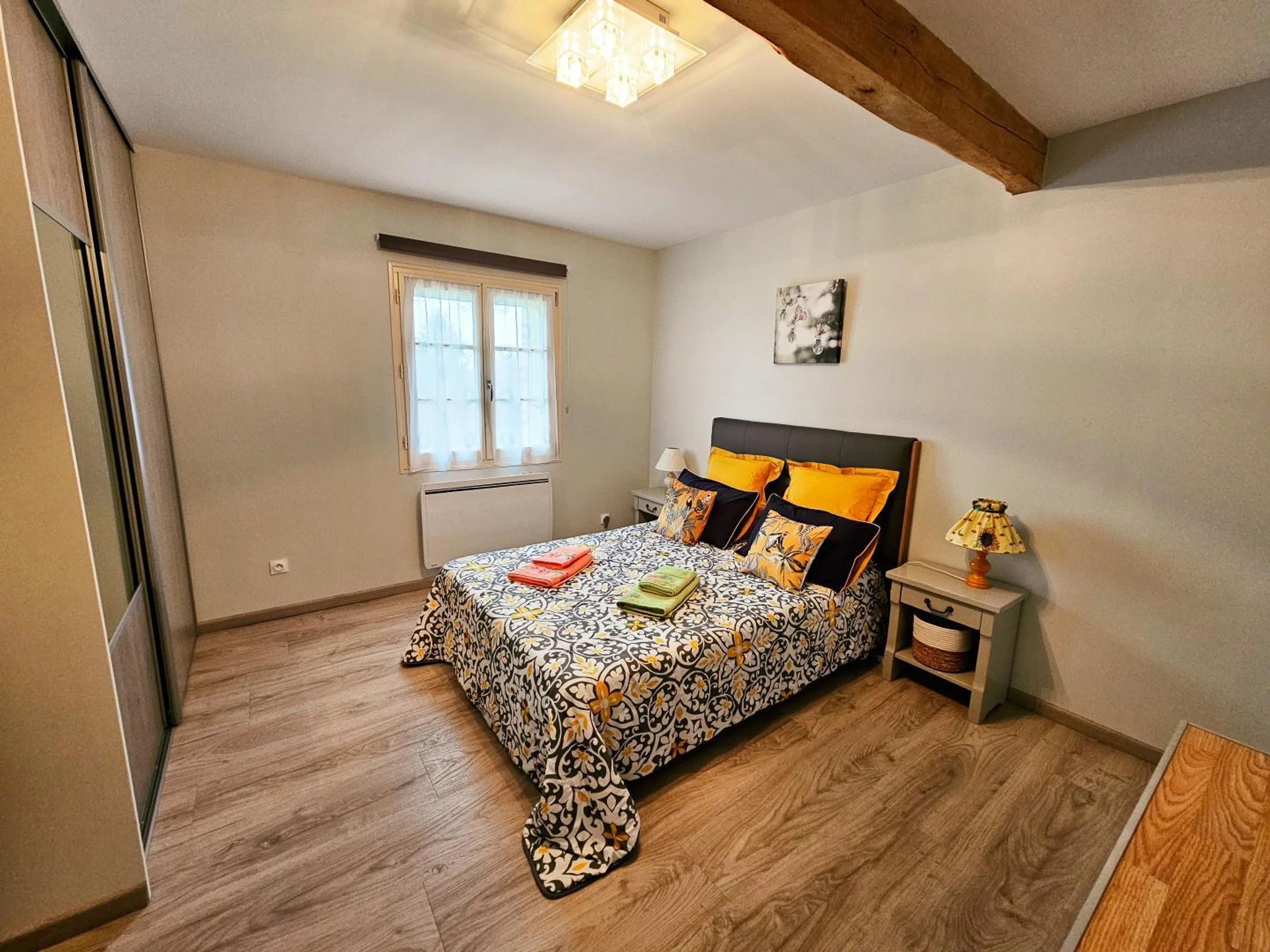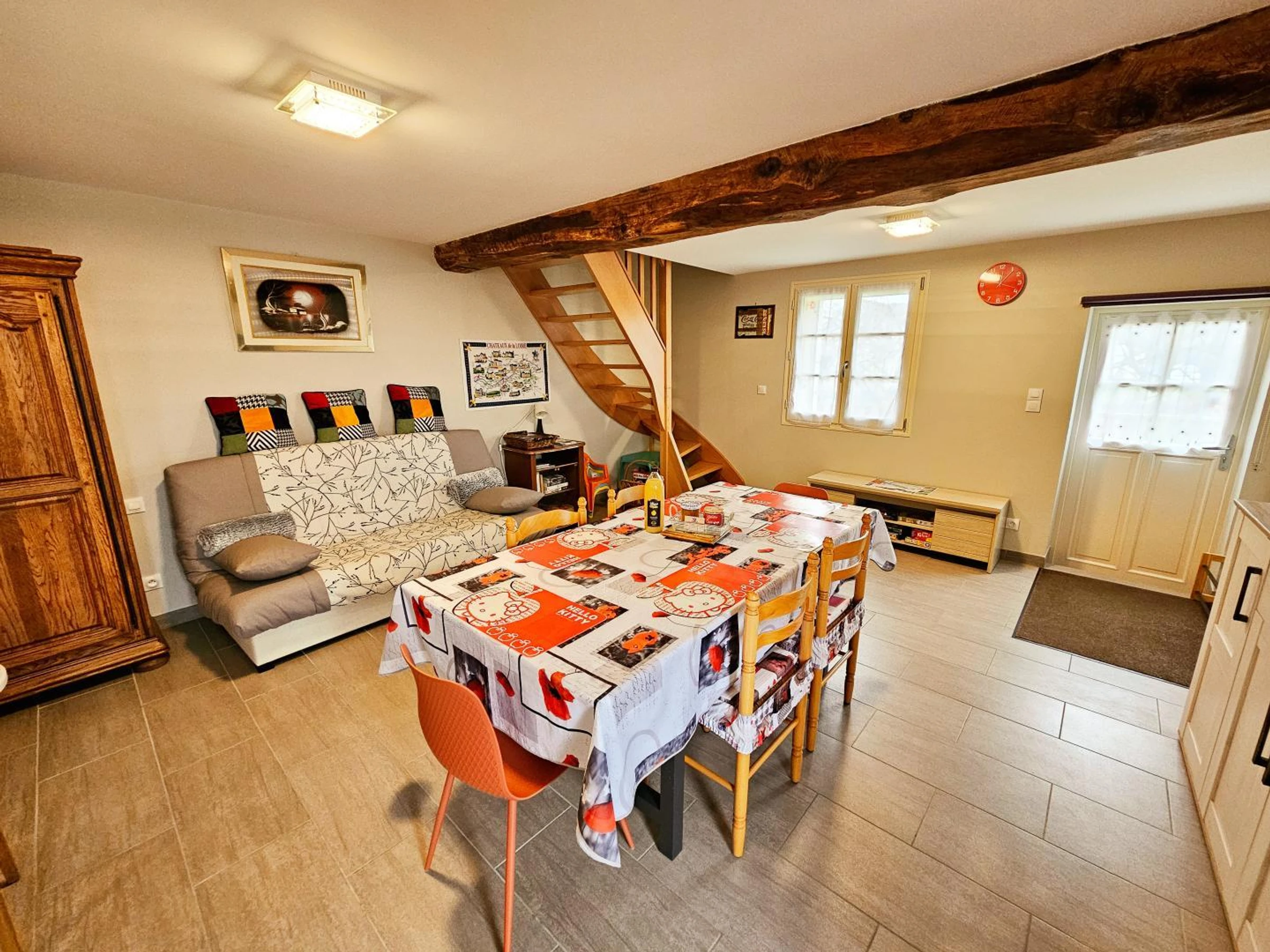 Gîte tout inclus (sauf taxe de séjour). [hidden] : séjour salon cuisine équipée (canapé convertible, TV, cafetière à dosette Senseo), salle d'eau avec wc. Étage : 1 ch (1 lit 140x190), 1 ch (1 lit 140x190, 2 lit 90x190), salle d'eau, wc séparé. Wifi. Chauffage électrique (inclus aux tarifs). Jardin 200 m² privatif non clos. Hébergement non-fumeur.
